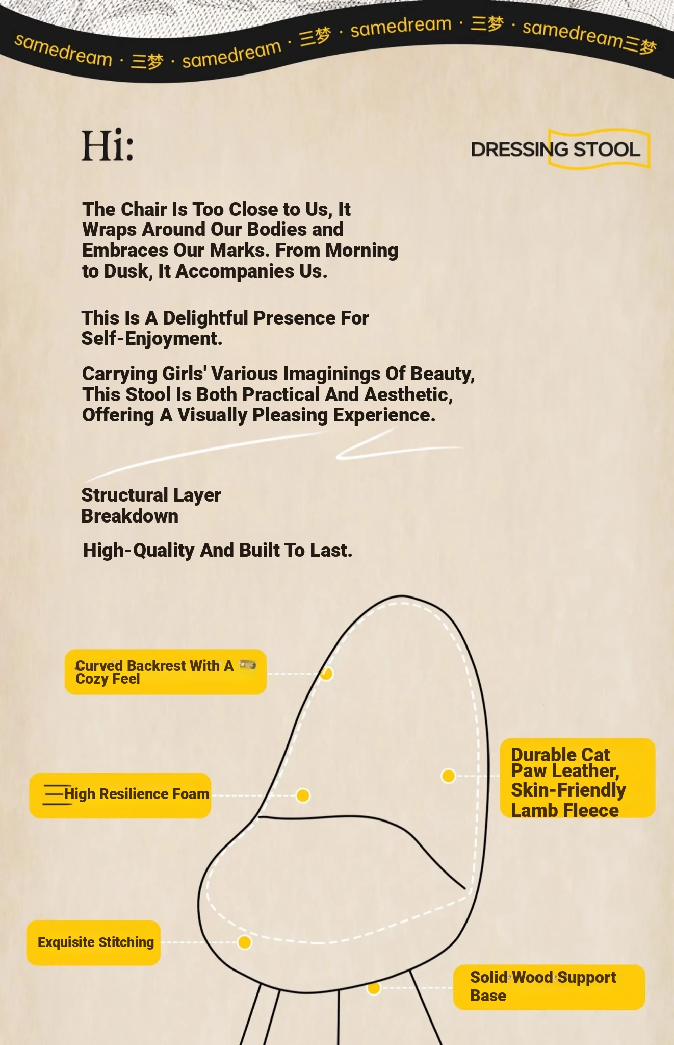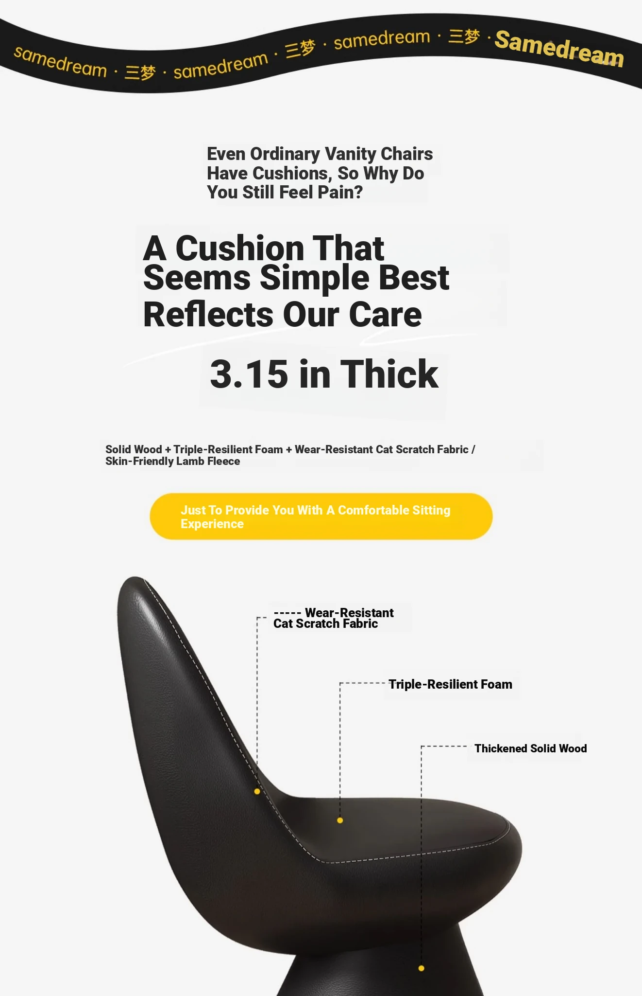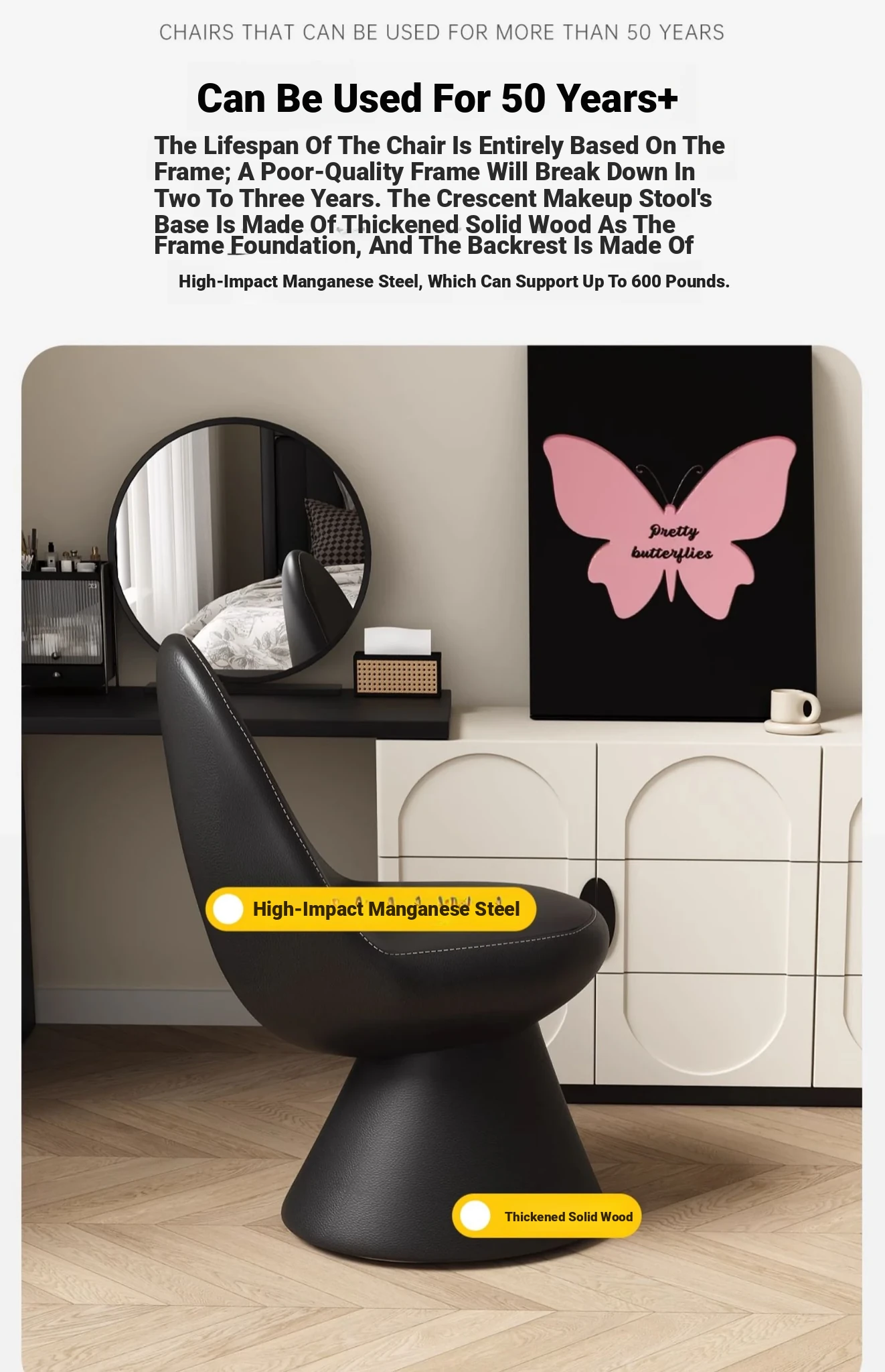 Elegant Rotating Makeup Stool with Backrest - Premium Quality Solid Wood Vanity Chair for Bedroom - 2025 New Design