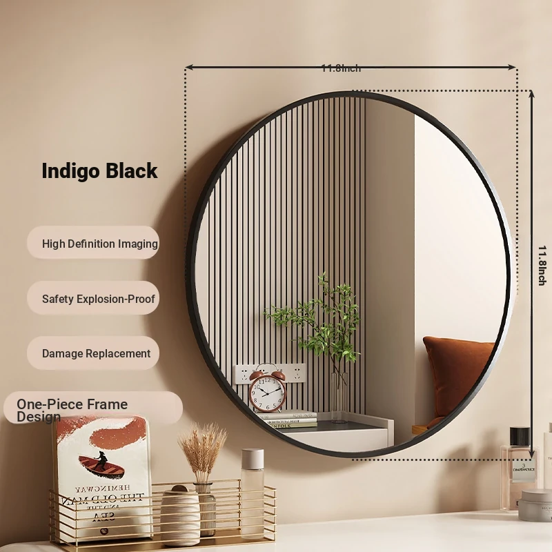 [Indigo Black] 11.81in round mirror [HD imaging]]