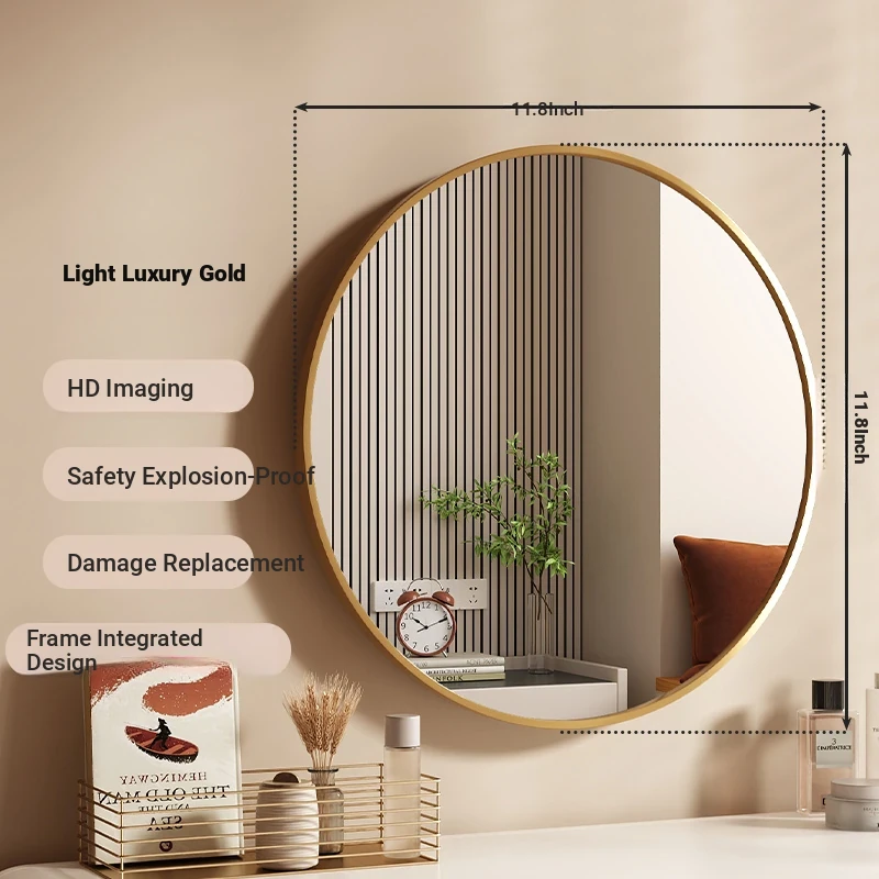 [Accessible Luxury gold] 11.81in round mirror [HD imaging]]