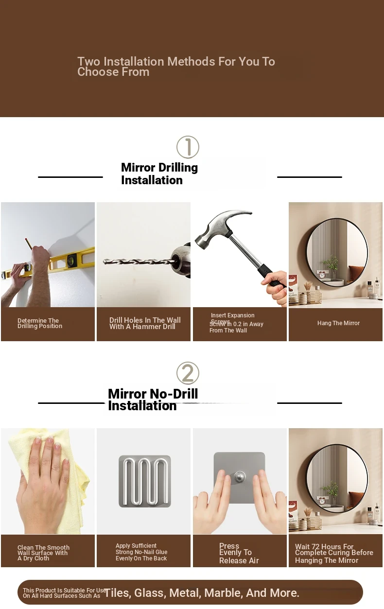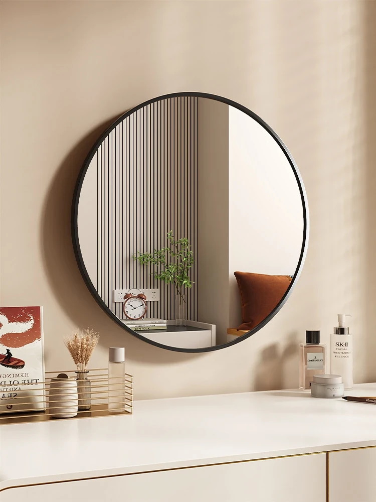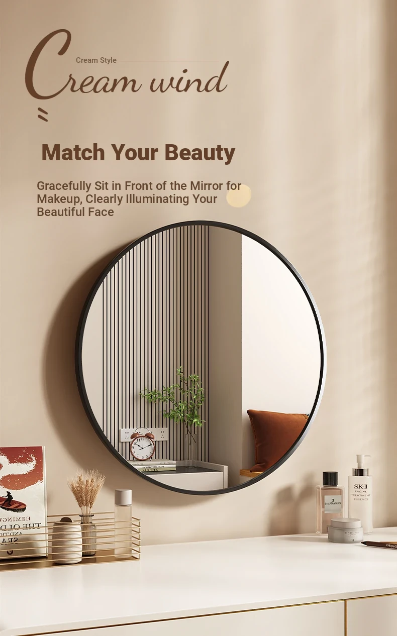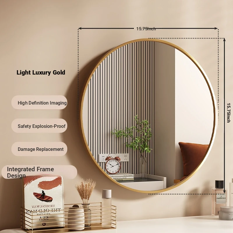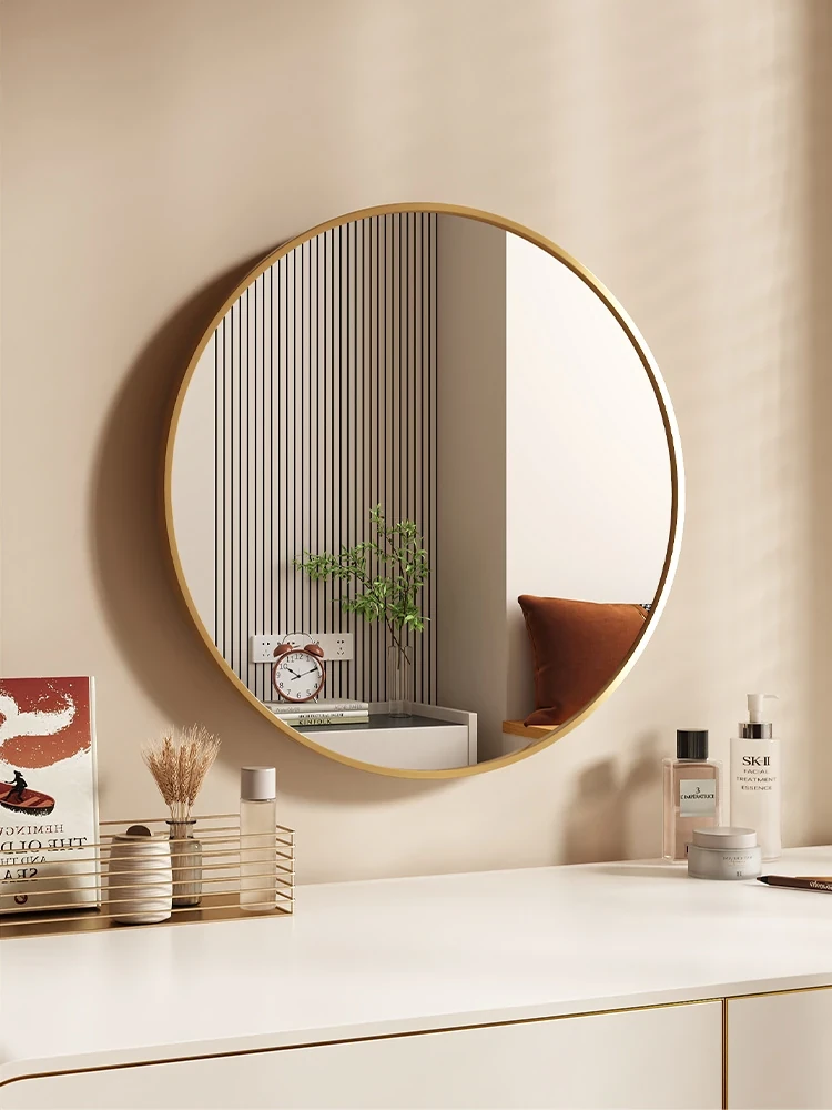 Elegant Round Wall-Mounted Makeup Mirror for Women - No-Drill Design for Bedroom Vanity, Perfect for Home Use