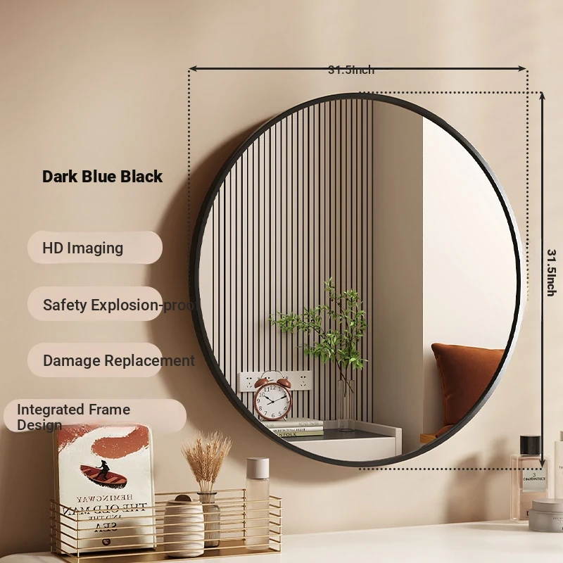 [Indigo Black] 31.50in round mirror [HD imaging]]