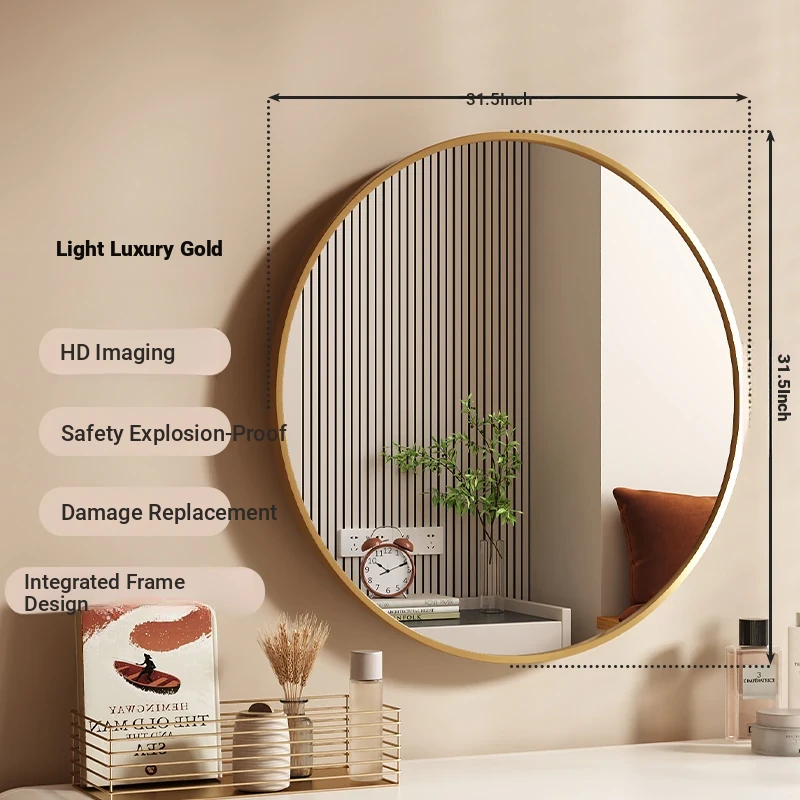 [Accessible Luxury gold] 31.50in round mirror [HD imaging]]