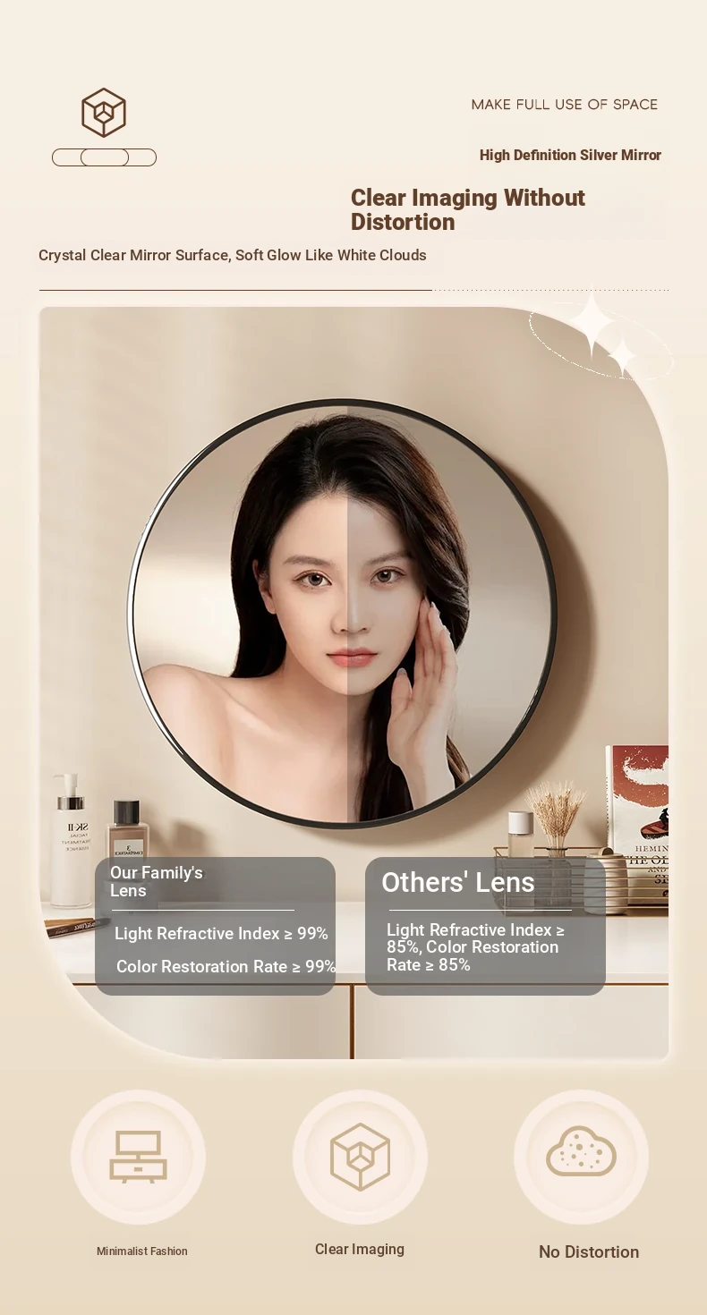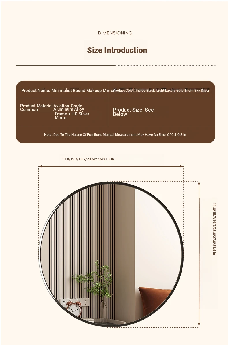 [Star Silver] 19.69in round mirror [HD imaging]]