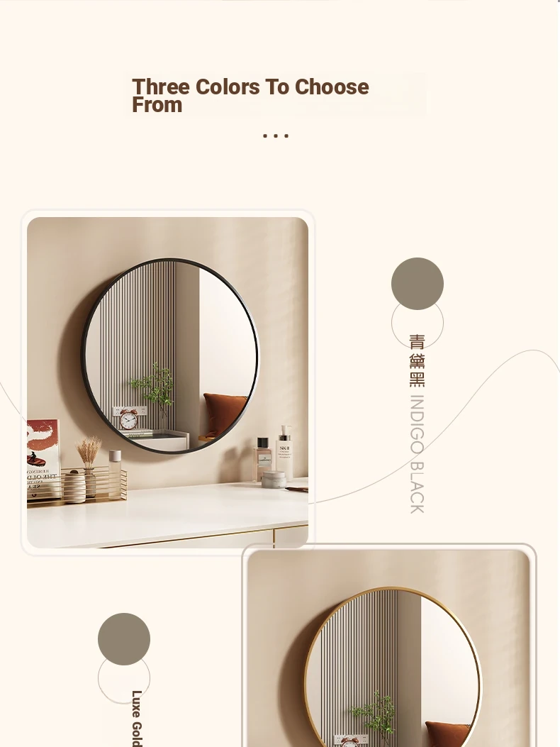 [Indigo Black] 23.62in round mirror [HD imaging]]