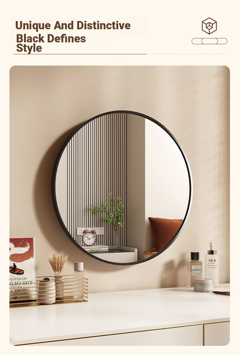 [Indigo Black] 27.56in round mirror [HD imaging]]