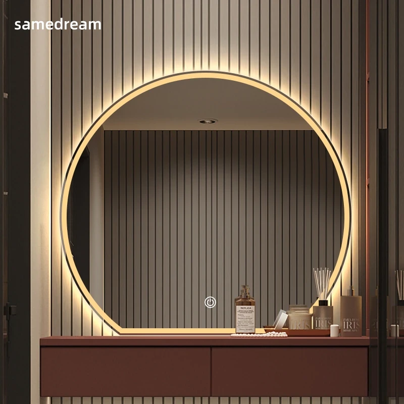 Elegant Smart LED Wall-Mounted Makeup Mirror with Unique Shape - Illuminated Dressing Table Mirror for Bedroom Vanity