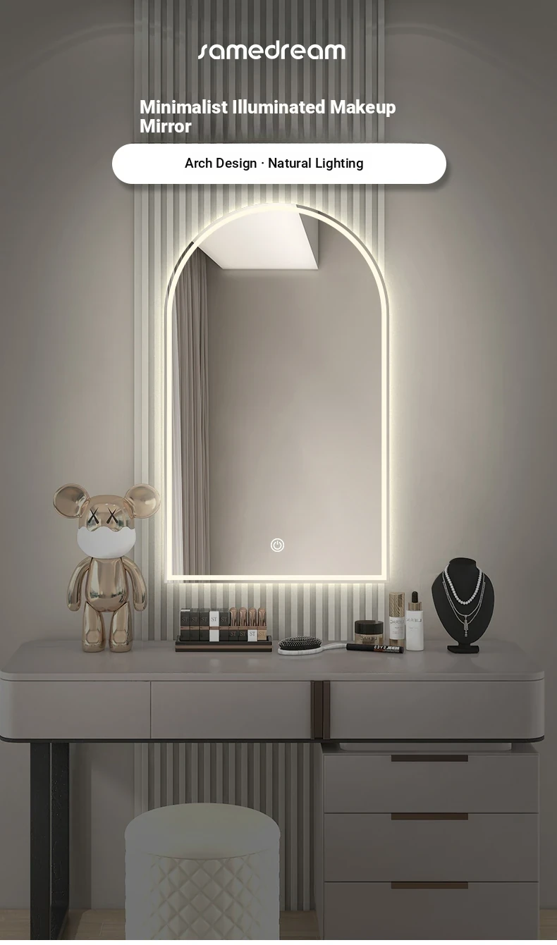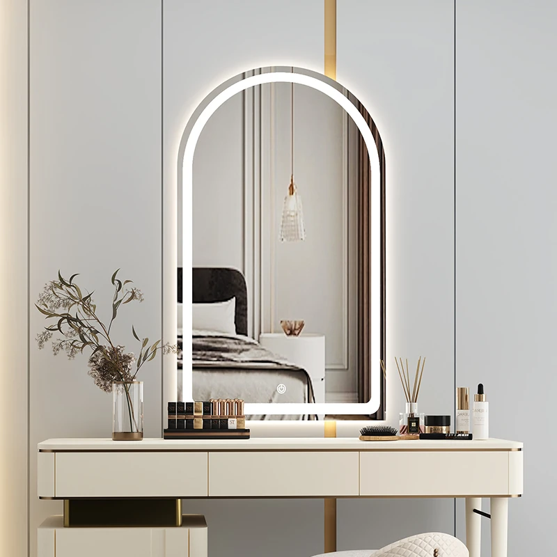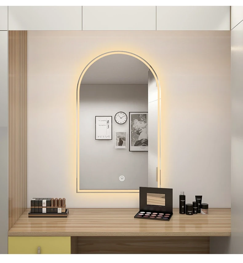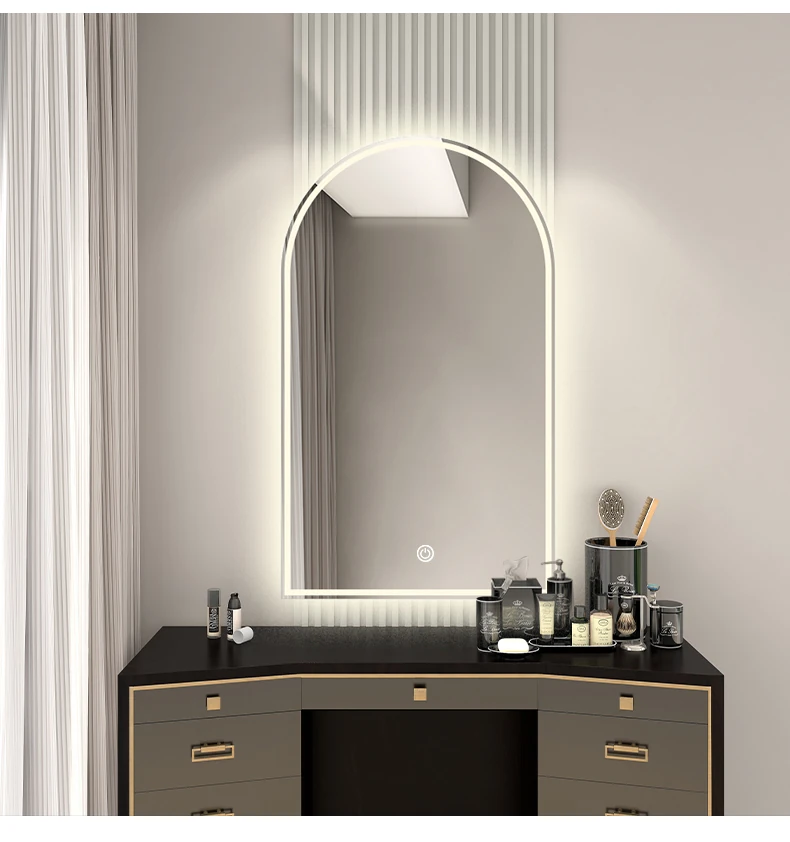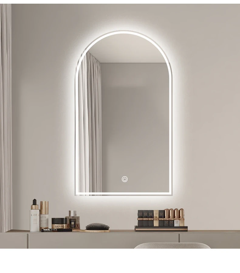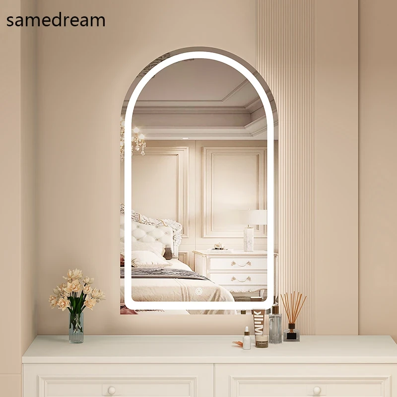 French Style Makeup Mirror - Elegant Smart LED Vanity Mirror for Bedroom, Wall-Mounted with Illuminated Arc Design for a Luxurious Touch