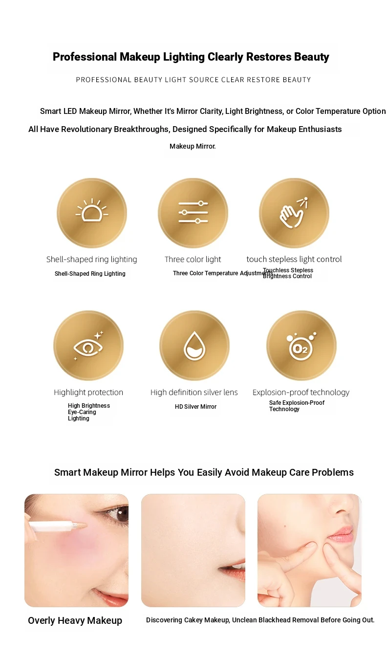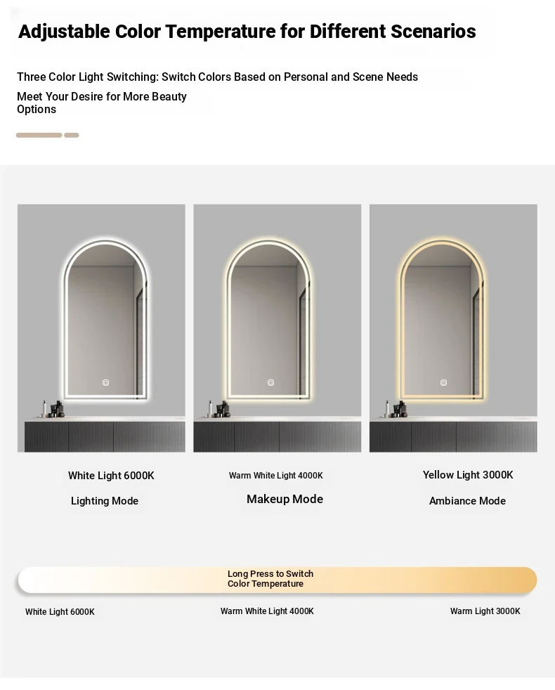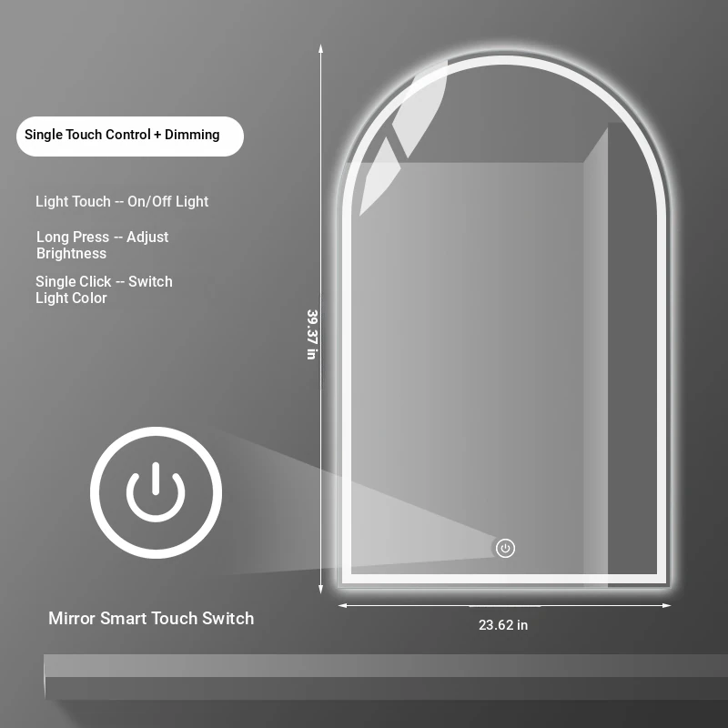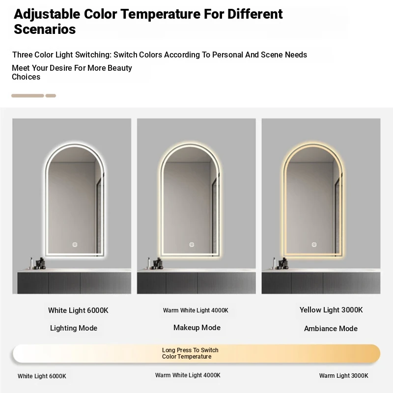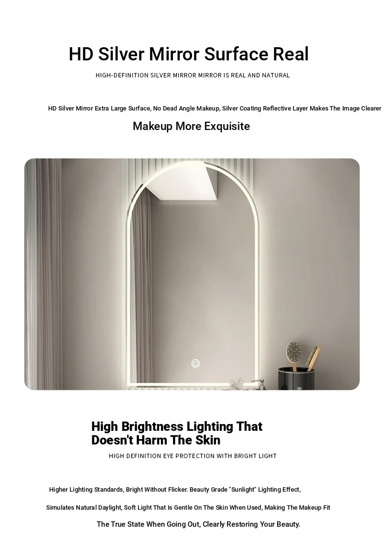 French Style Makeup Mirror - Elegant Smart LED Vanity Mirror for Bedroom, Wall-Mounted with Illuminated Arc Design for a Luxurious Touch