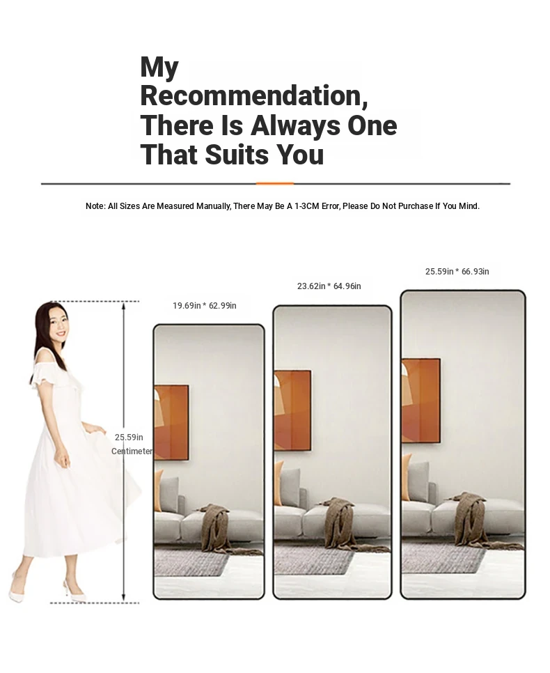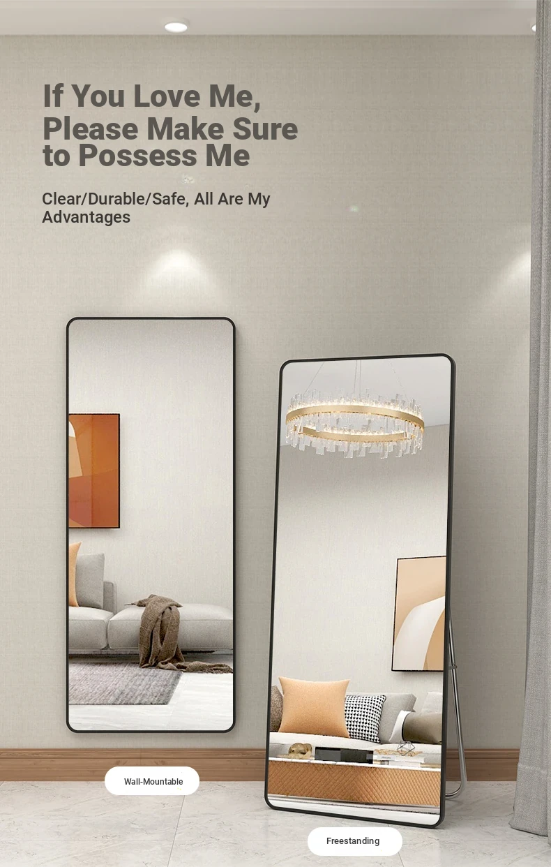 Full-Length Wall-Mounted Dressing Mirror for Women - Stylish Makeup and Outfit Try-On Mirror for Bedroom, Space-Saving Hanging Design, Ideal for Fashion Enthusiasts
