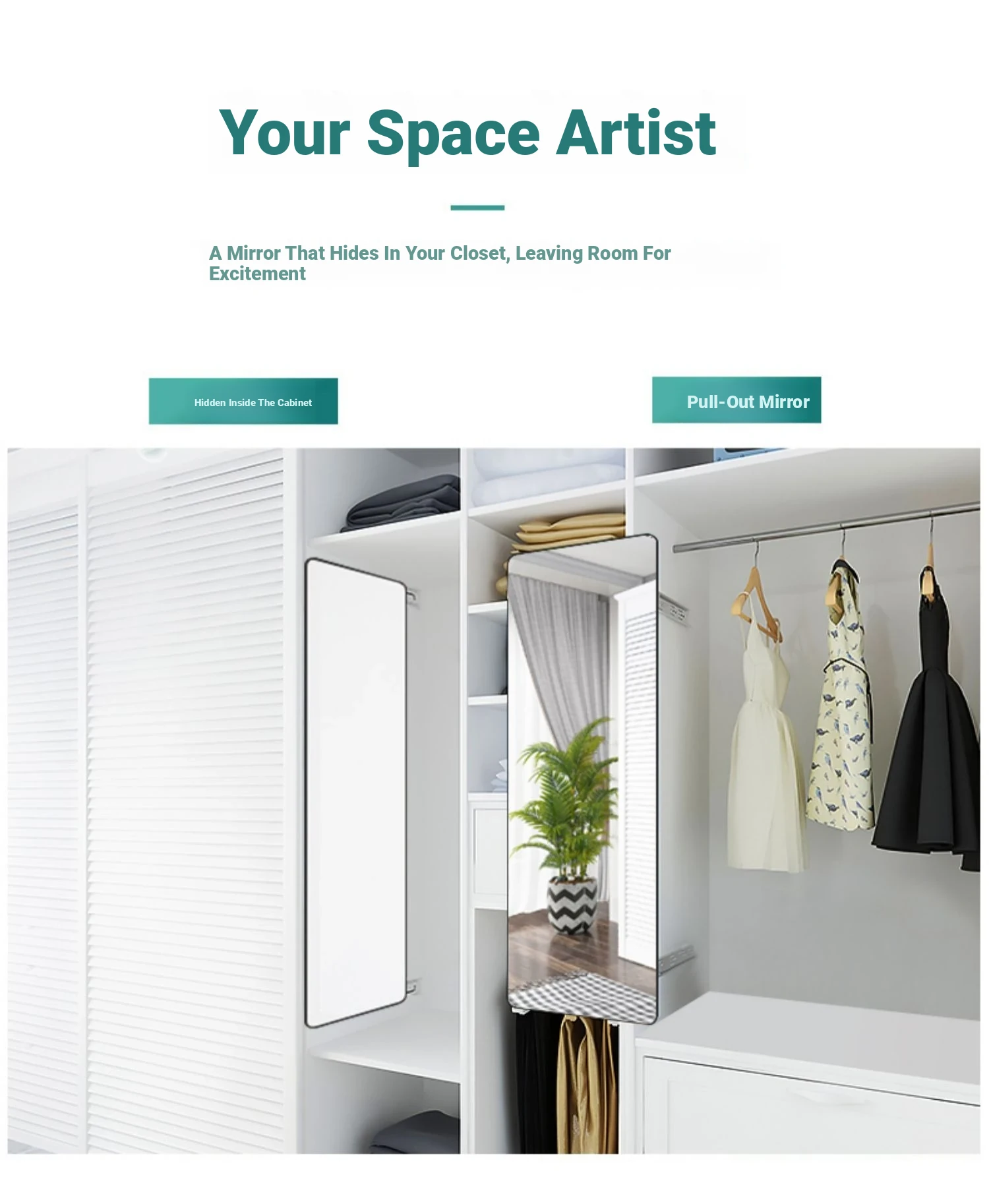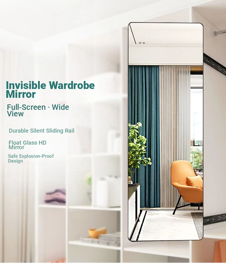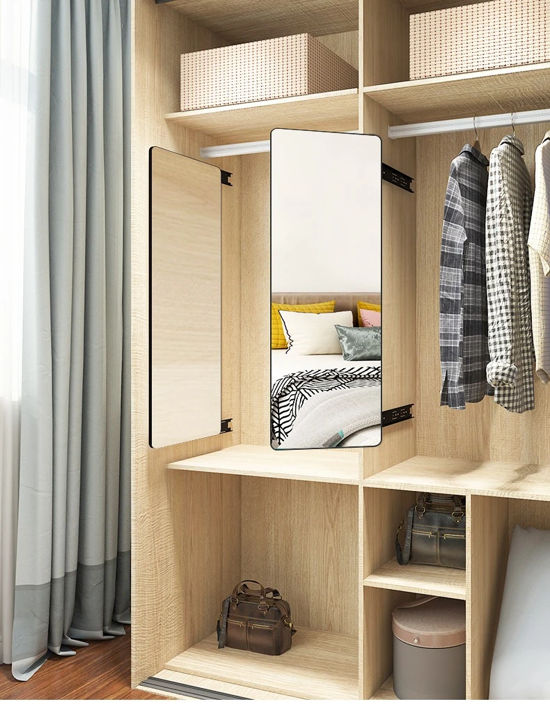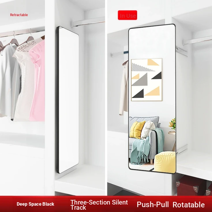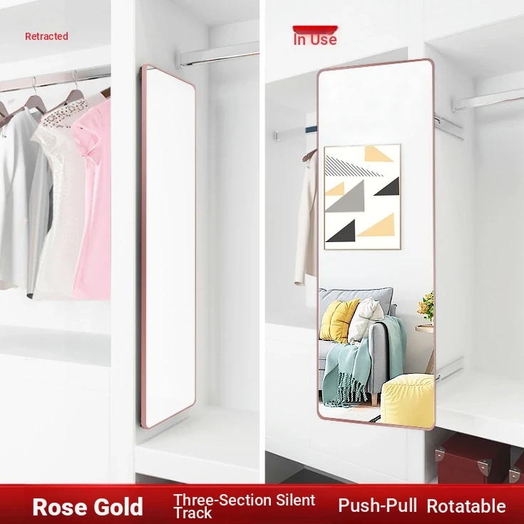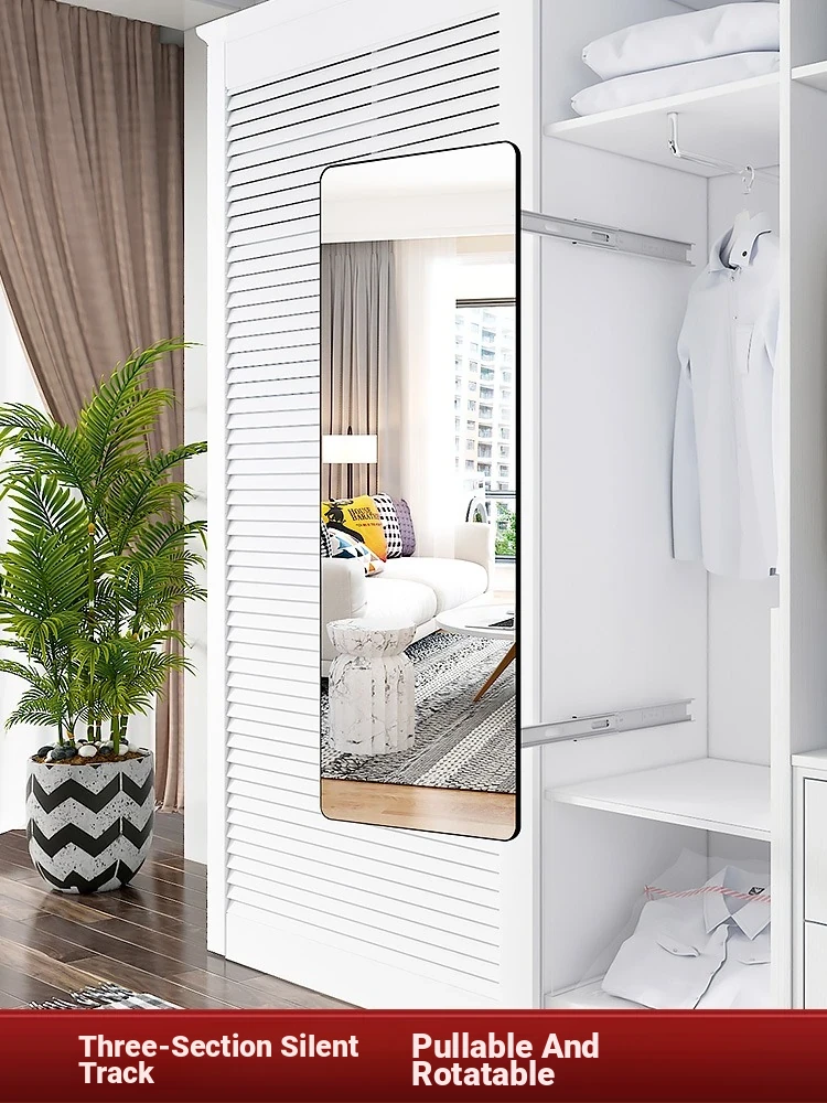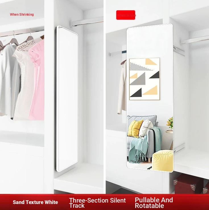 Invisible Pull-Out Full-Length Mirror with Rotating Design - Ideal for Wardrobes and Bedrooms, Perfect for Trying on Clothes at Home
