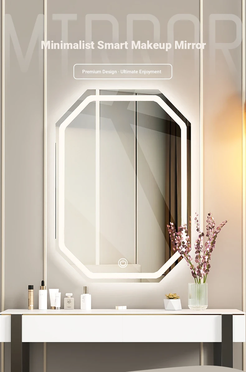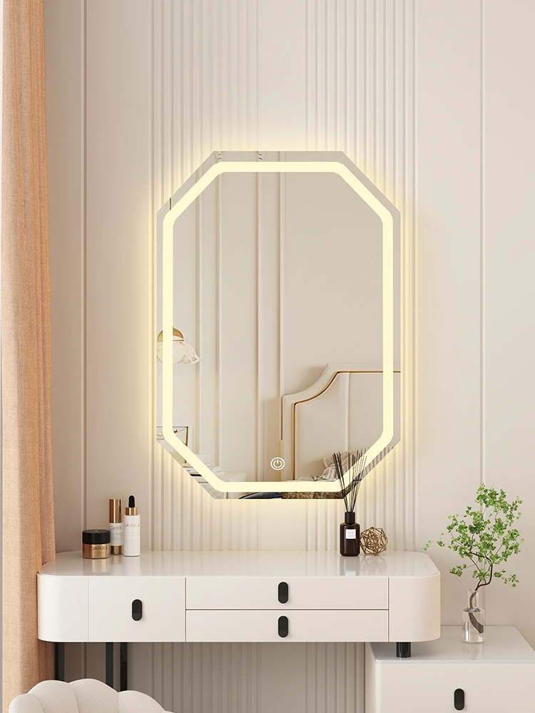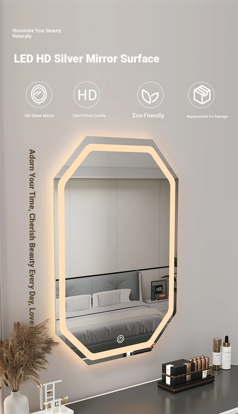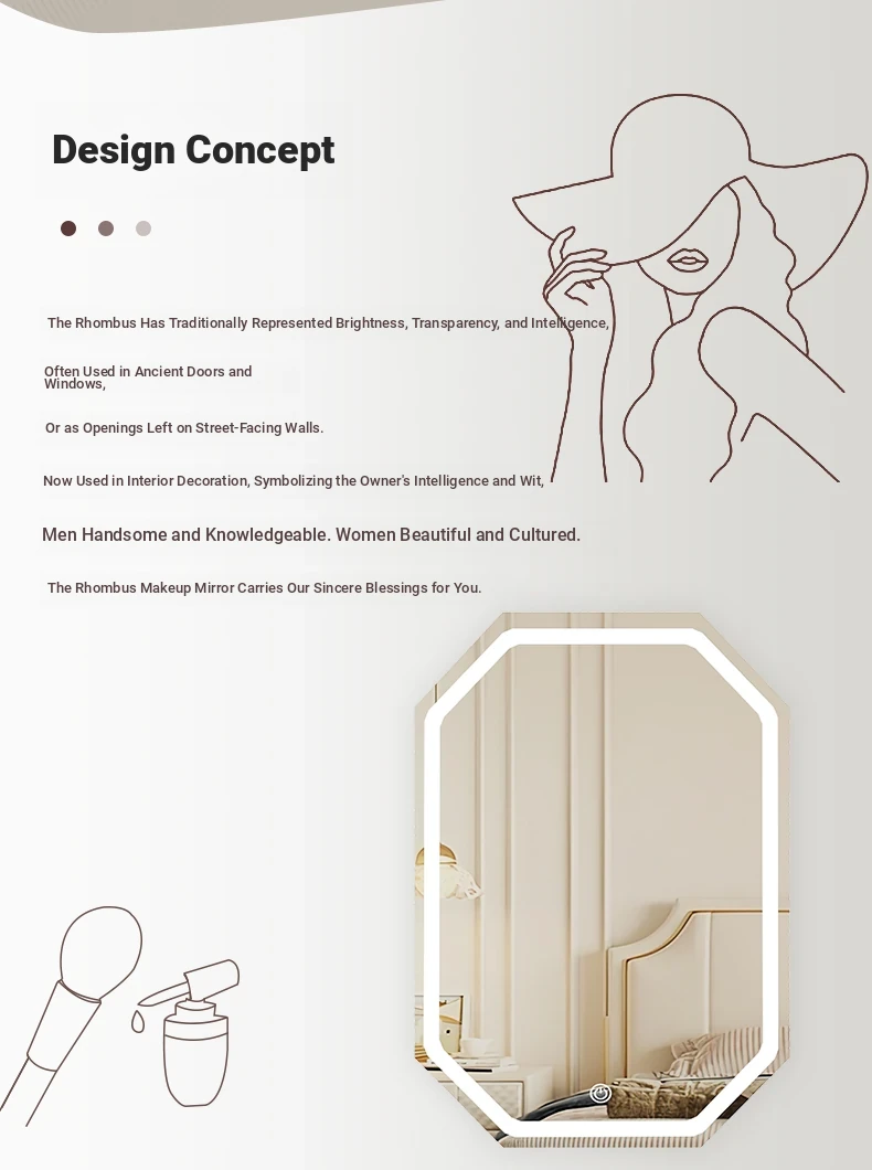 LED Lighted Wall-Mounted Makeup Mirror - Smart Diamond-Shaped Vanity Mirror for Bedroom, No Drilling Required, Perfect for Effortless Beauty Routines