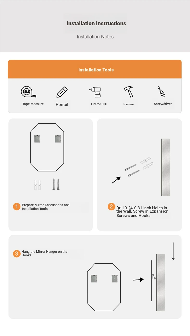 (Excluding installation) [FUQI Ling] Vertical 15.75in*23.62in [Punch/no punch] (tri-color light + adjustable brightness)