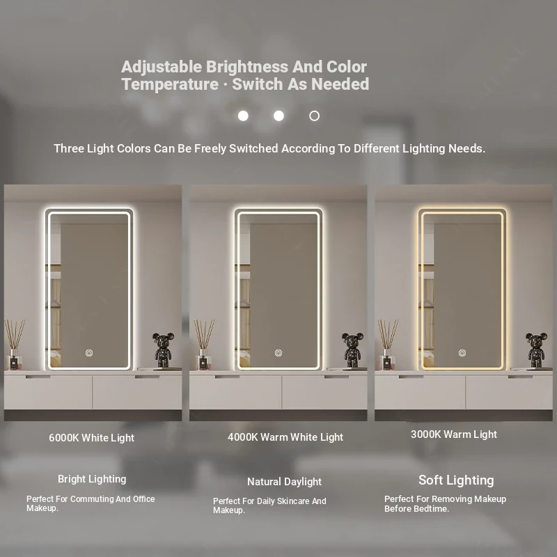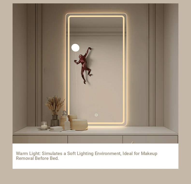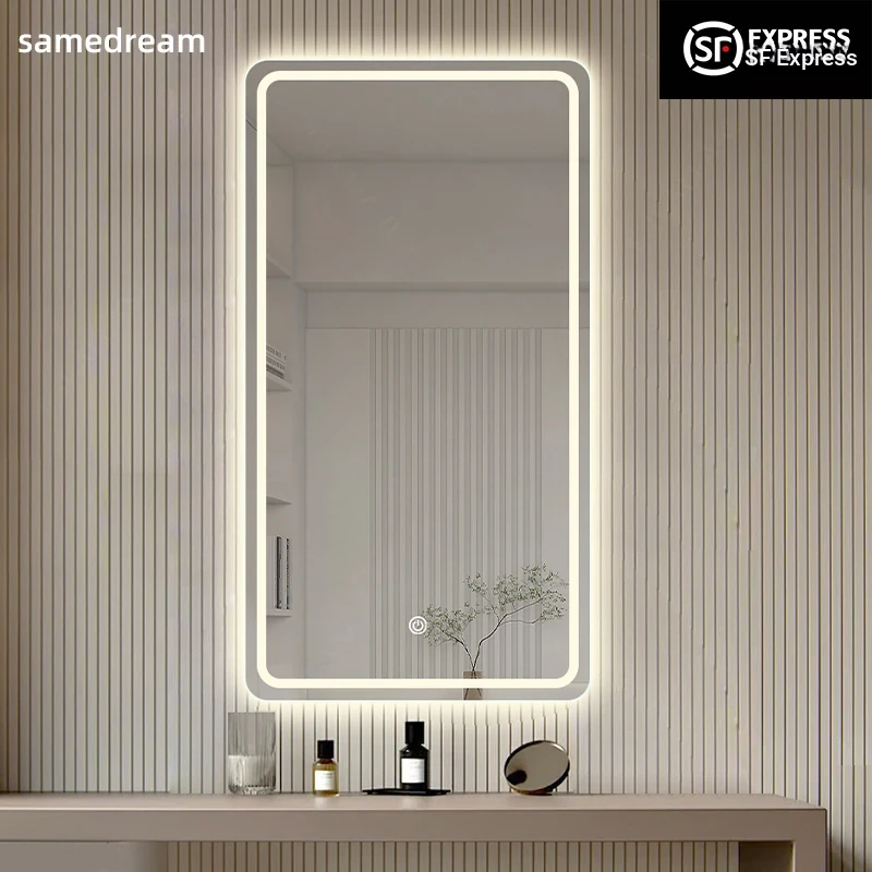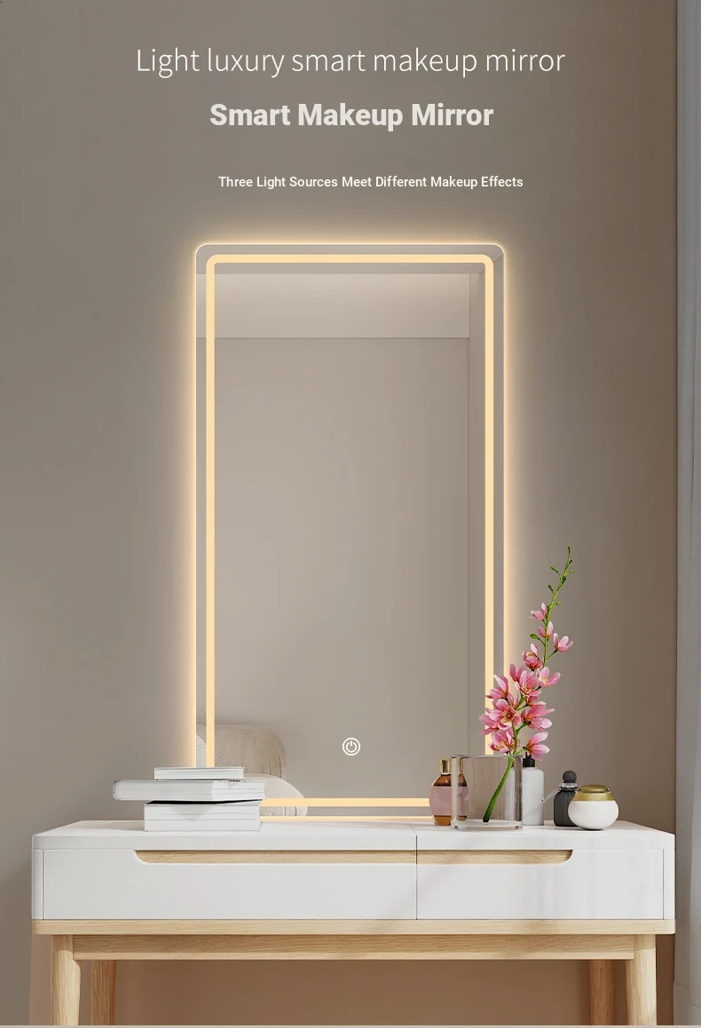 LED Makeup Mirror with Touch Screen - Wall-Mounted Vanity Mirror for Bedroom and Hotel, Illuminated with Smart Features