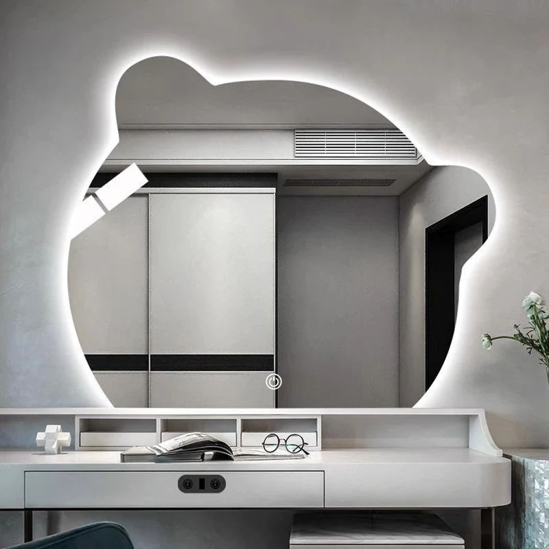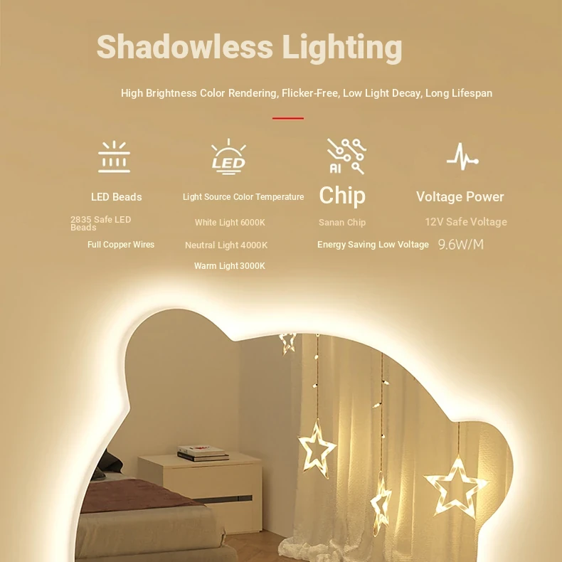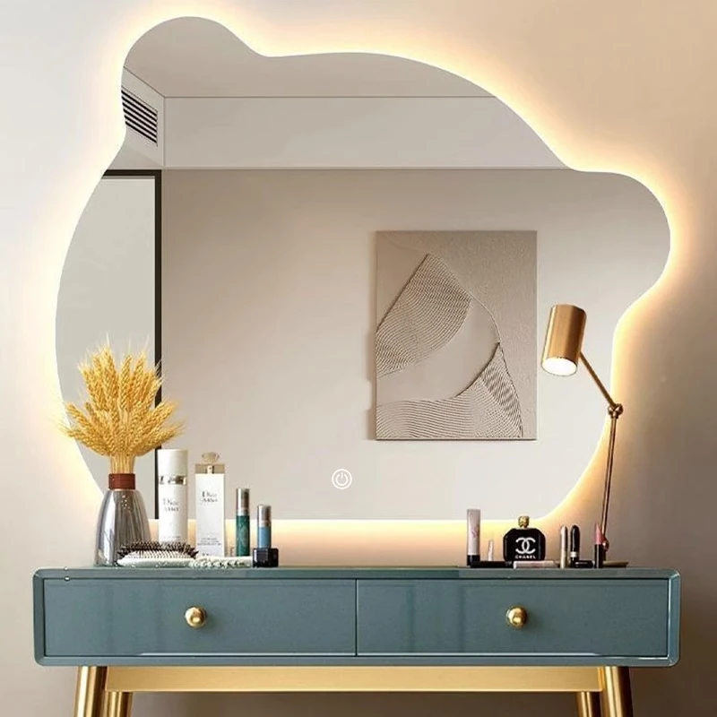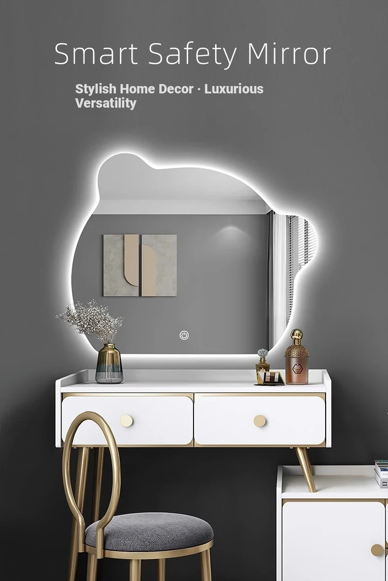 LED Wall-Mounted Makeup Mirror with Lights - Smart, No-Drill, Unique Design for Women's Bedroom Vanity - Perfect for Flawless Beauty and Easy Grooming