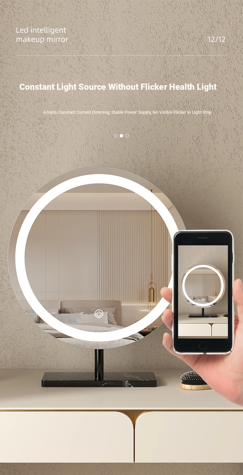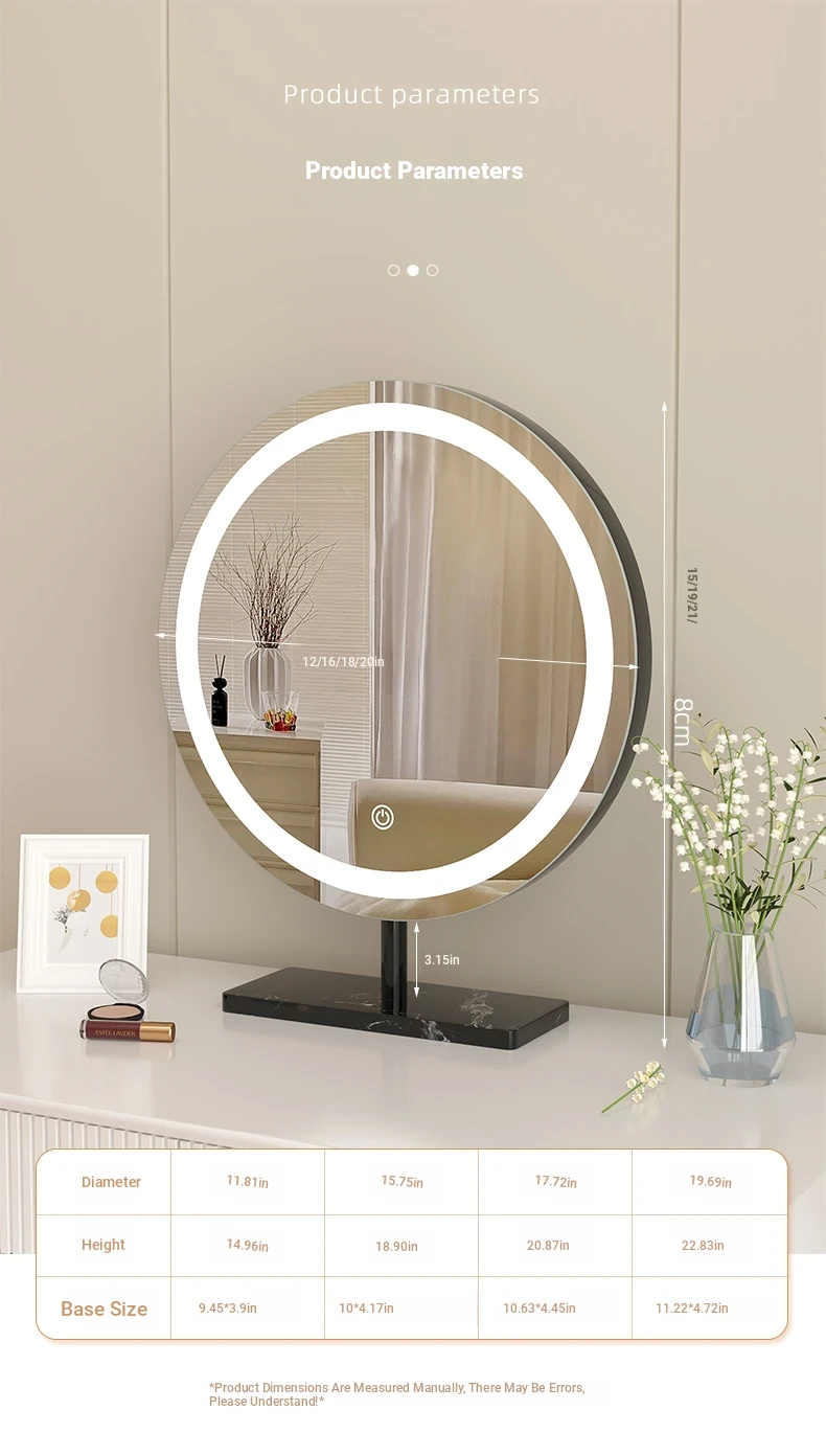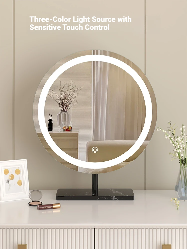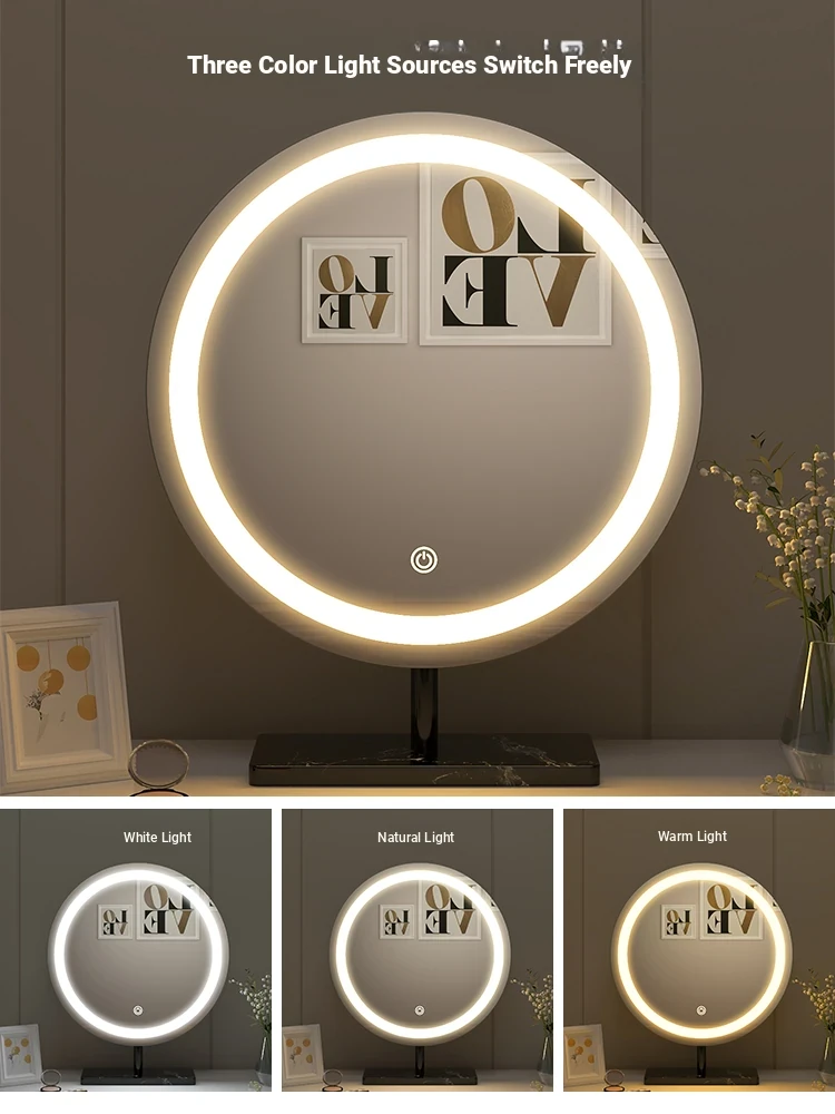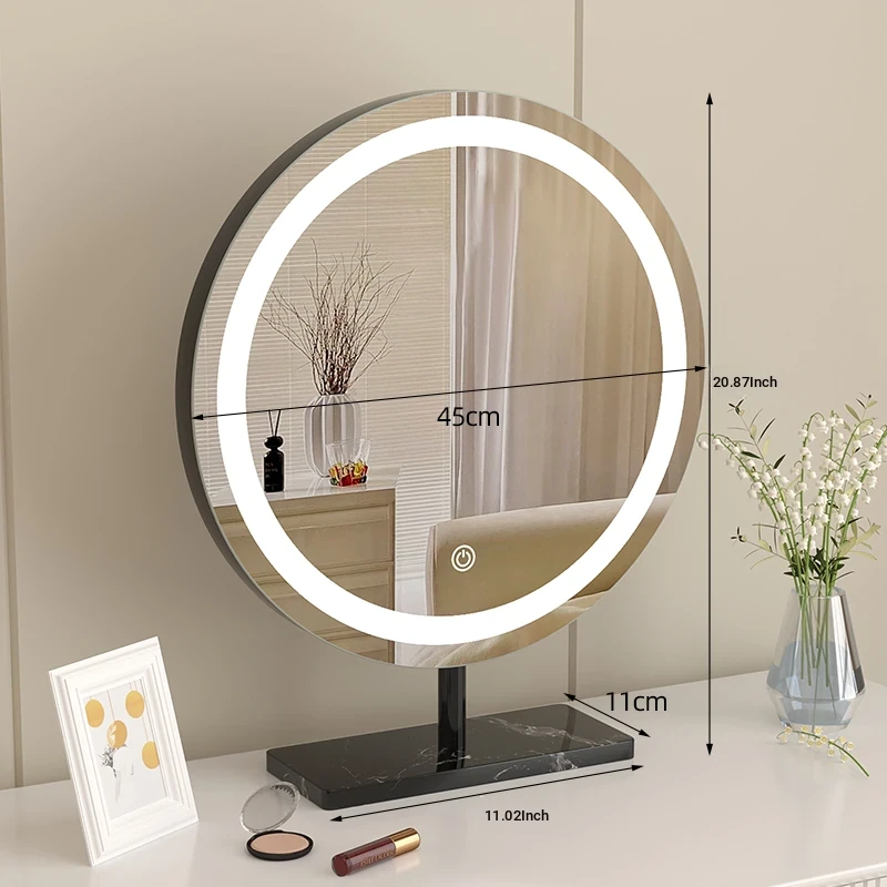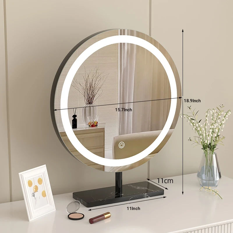 Modern LED Makeup Mirror with Light for Vanity - Stylish Desktop Dressing Table Mirror for Bedroom, Sleek and Minimalist Design, Perfect for Influencers and Beauty Enthusiasts