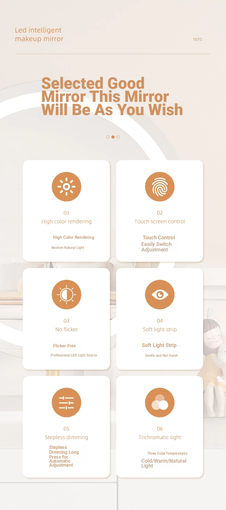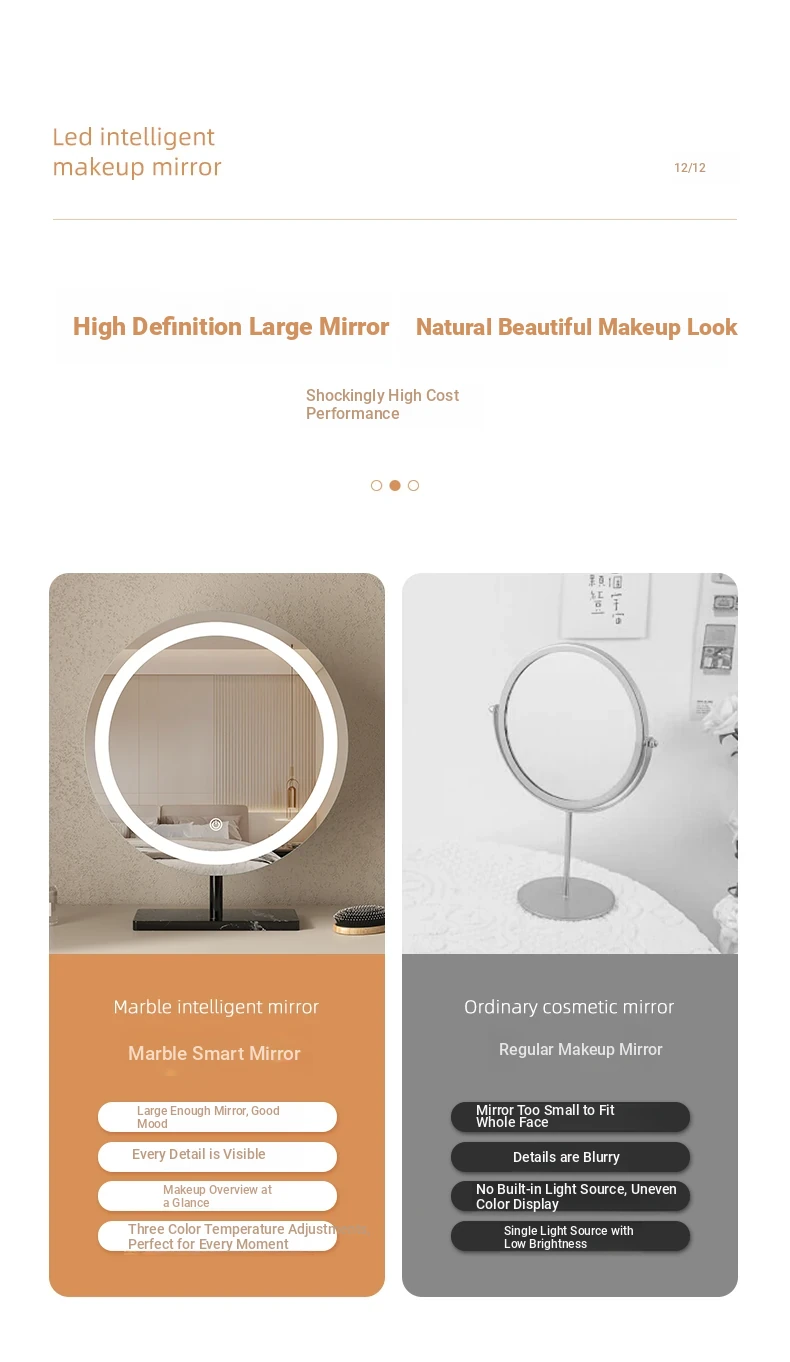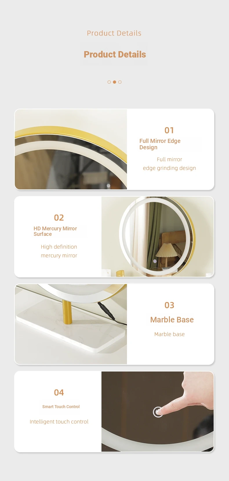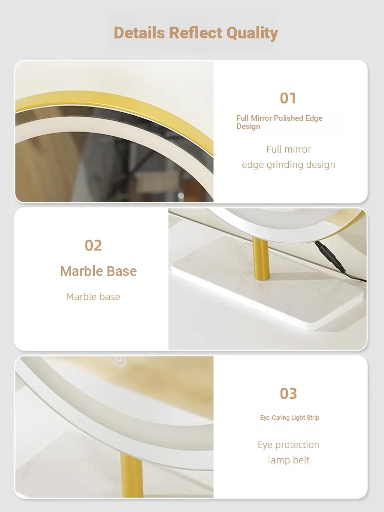 Modern LED Makeup Mirror with Light for Vanity - Stylish Desktop Dressing Table Mirror for Bedroom, Sleek and Minimalist Design, Perfect for Influencers and Beauty Enthusiasts