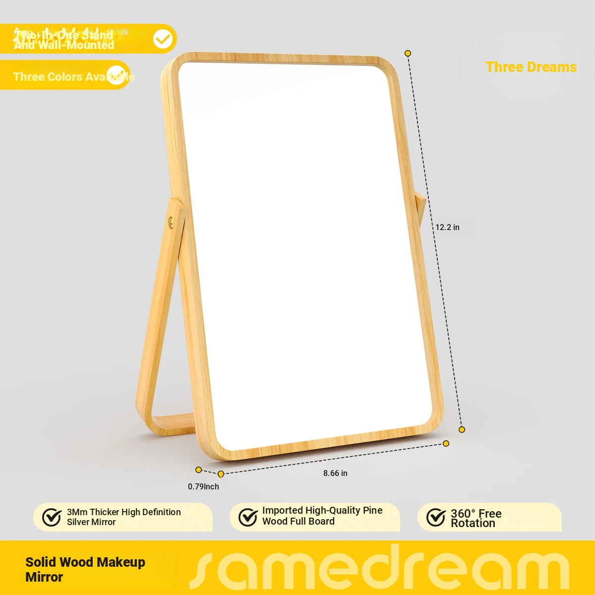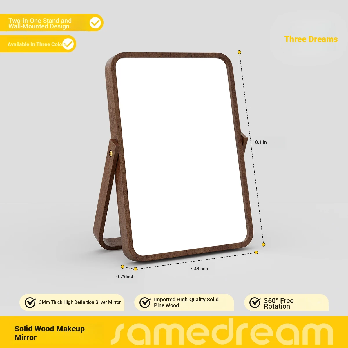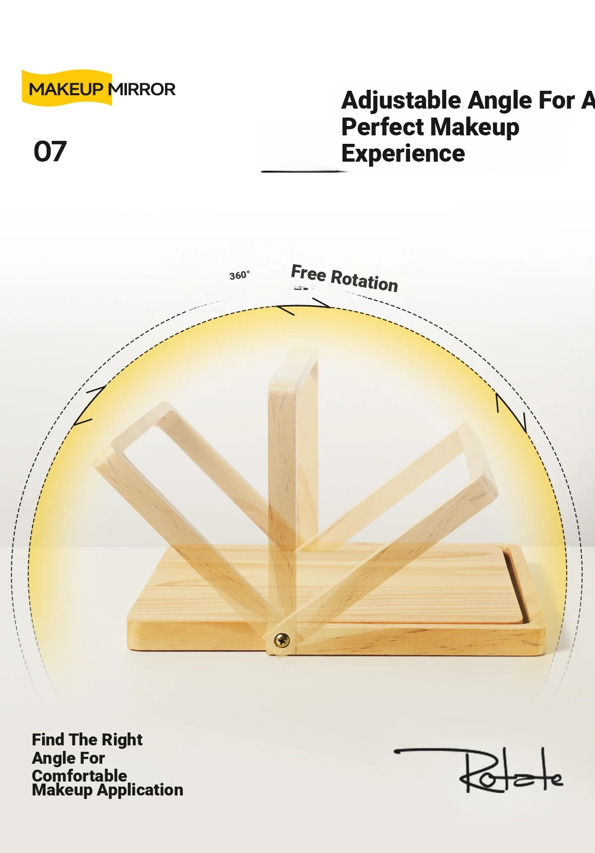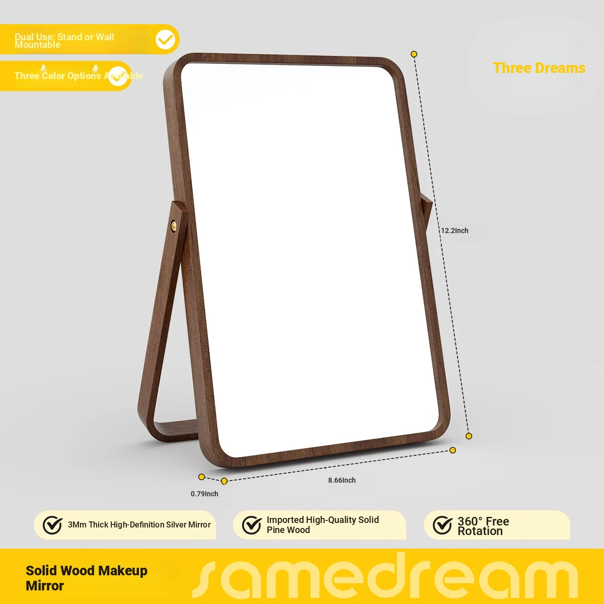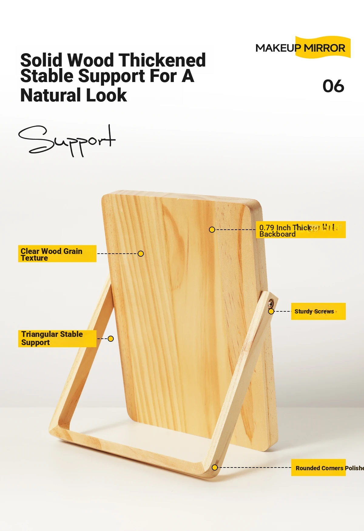 Premium Adjustable Wooden Makeup Mirror - Stylish Desktop Vanity Mirror for Home Use, Perfect for Bedrooms and Portable for On-the-Go Beauty Touch-Ups!
