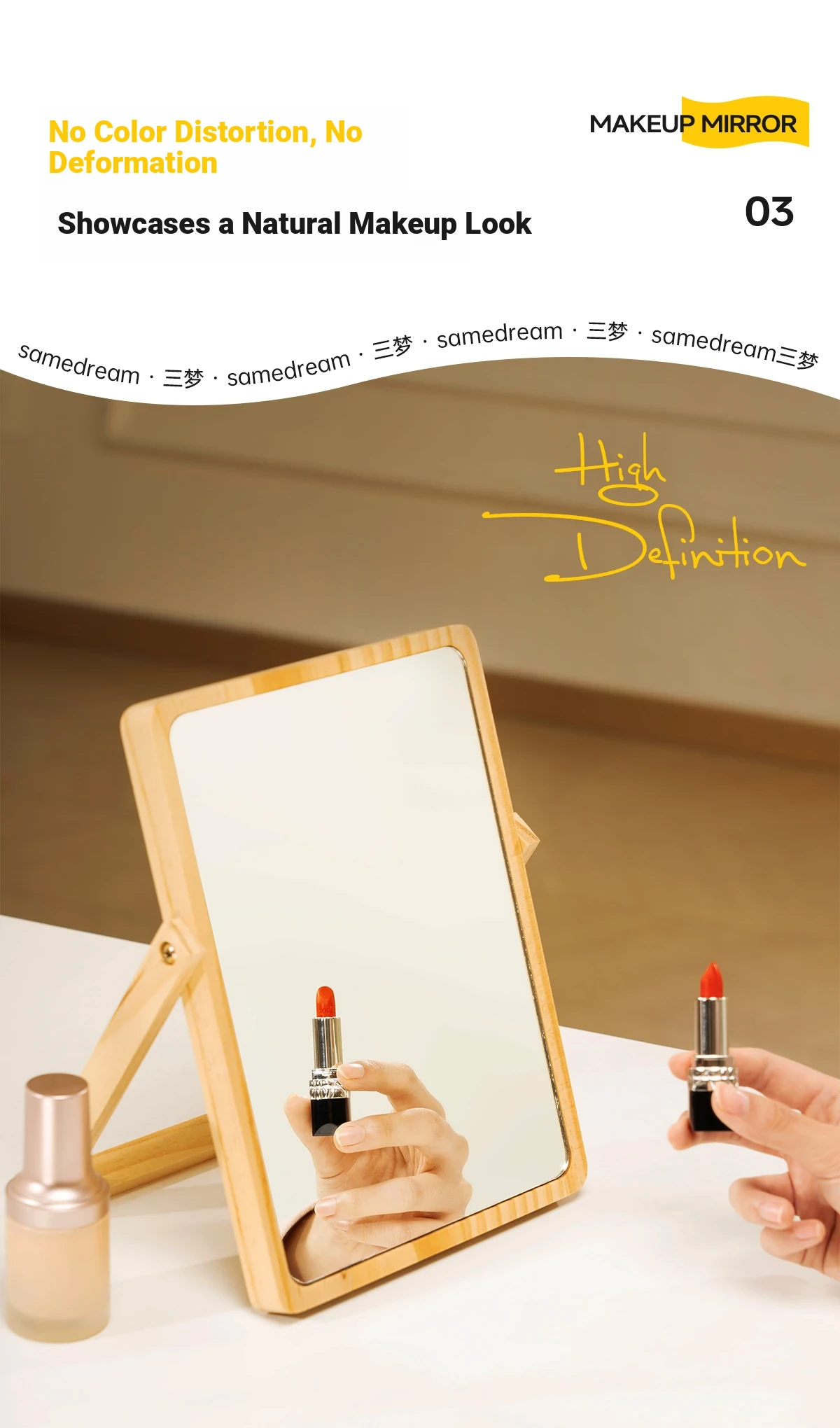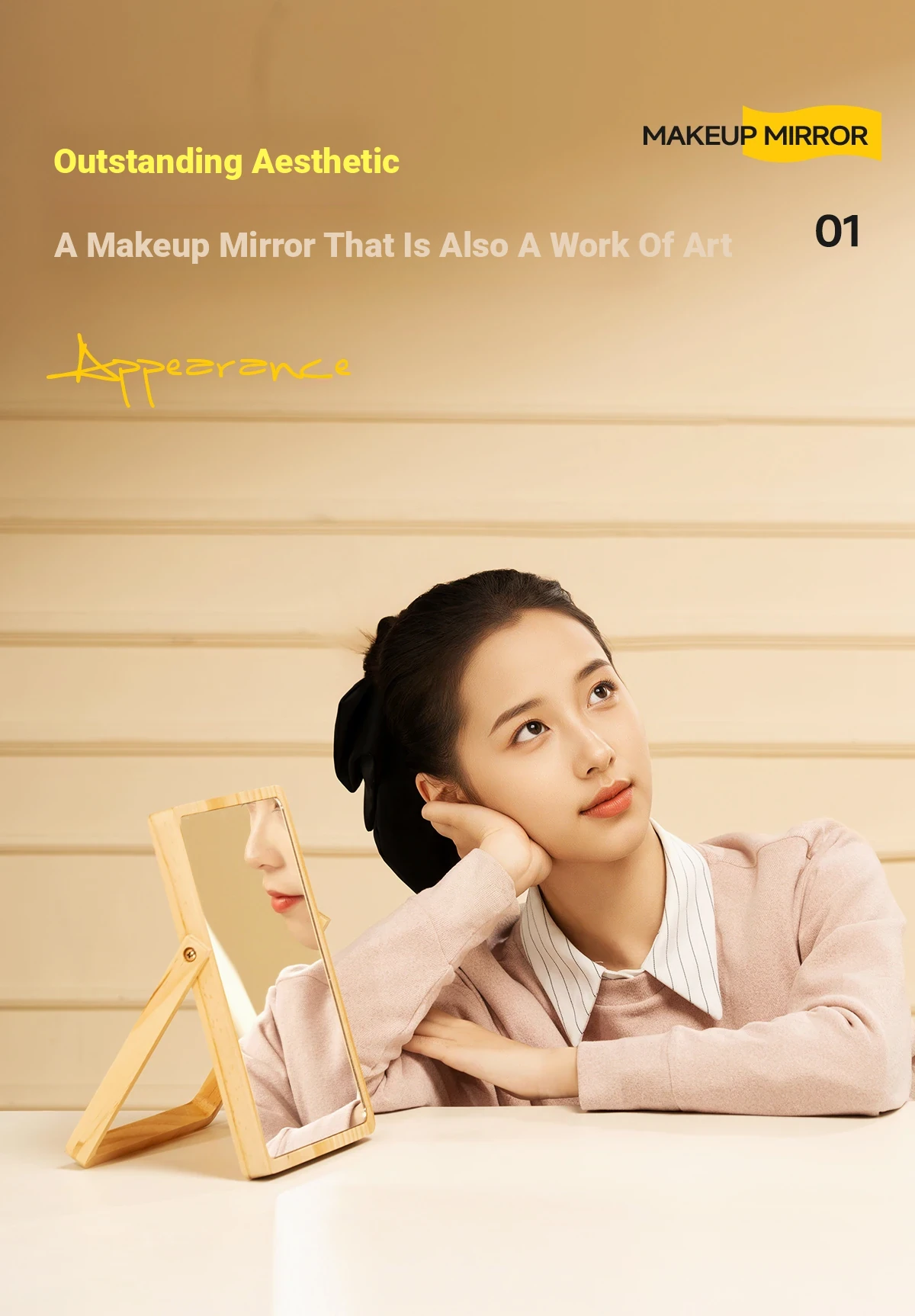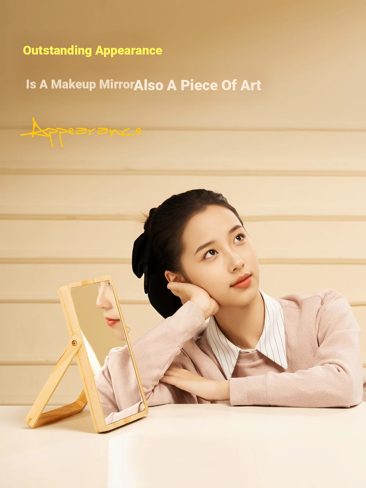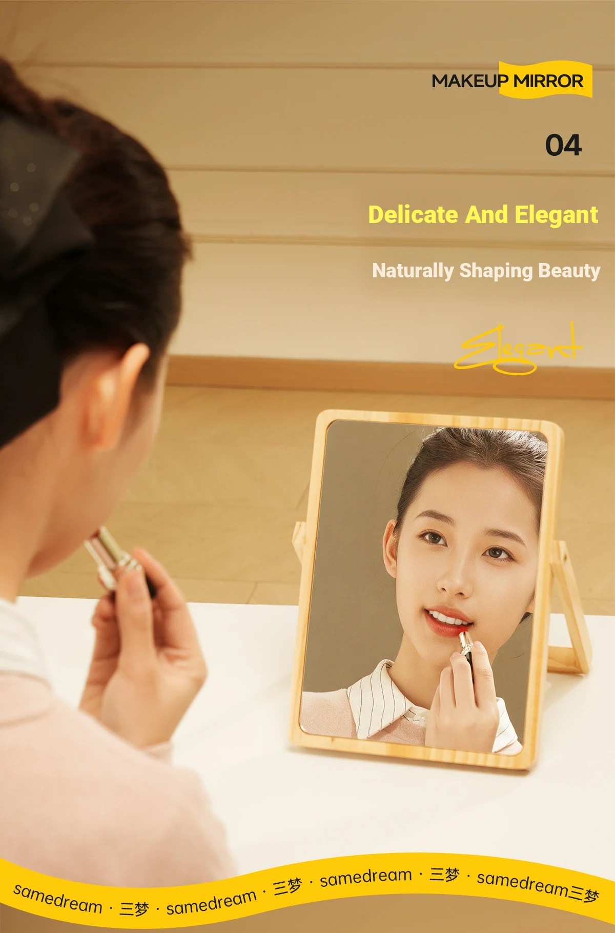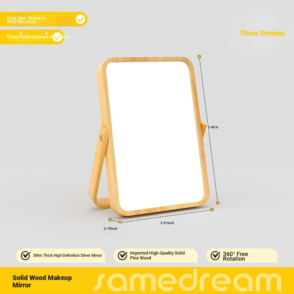 Premium Adjustable Wooden Makeup Mirror - Stylish Desktop Vanity Mirror for Home Use, Perfect for Bedrooms and Portable for On-the-Go Beauty Touch-Ups!