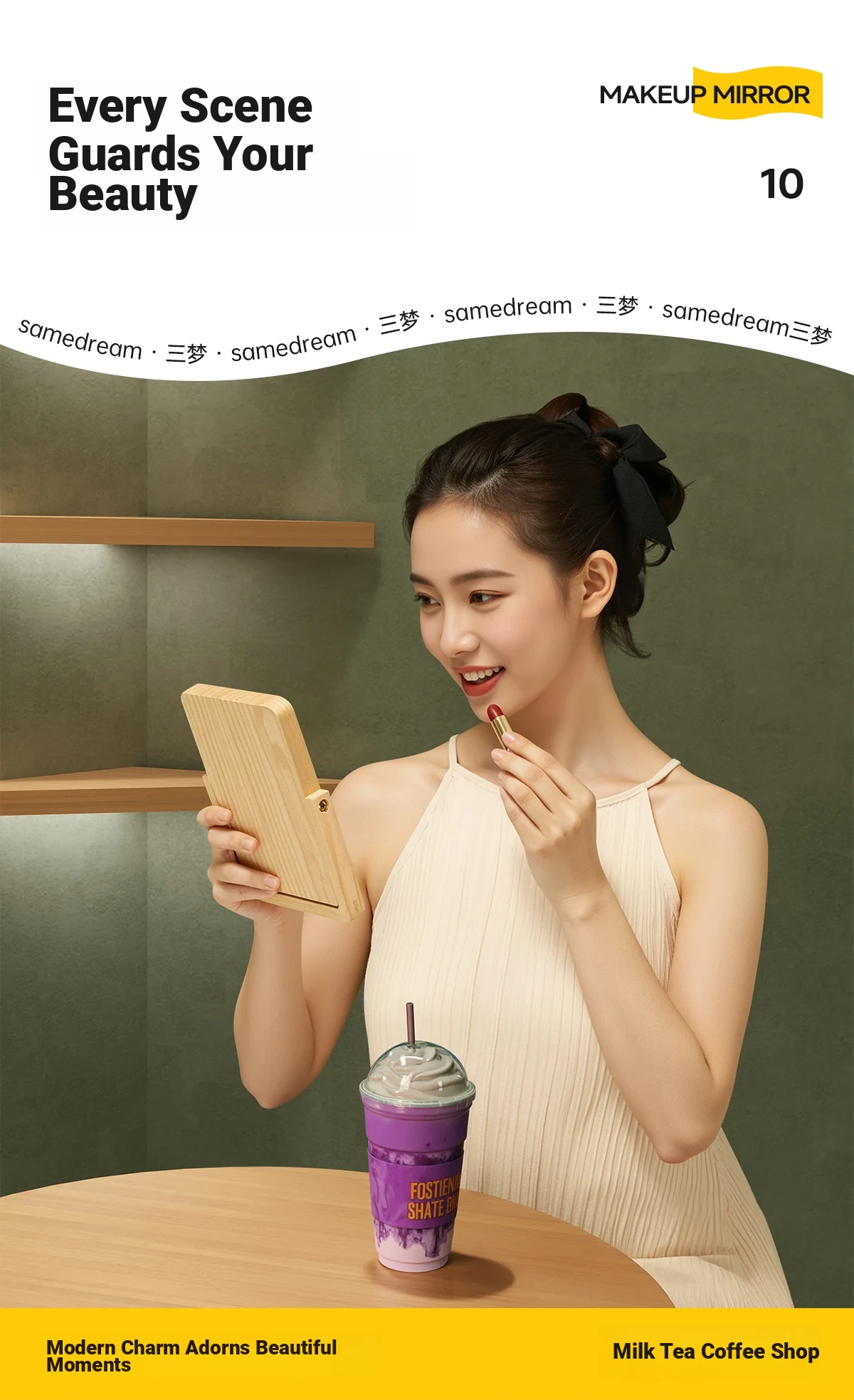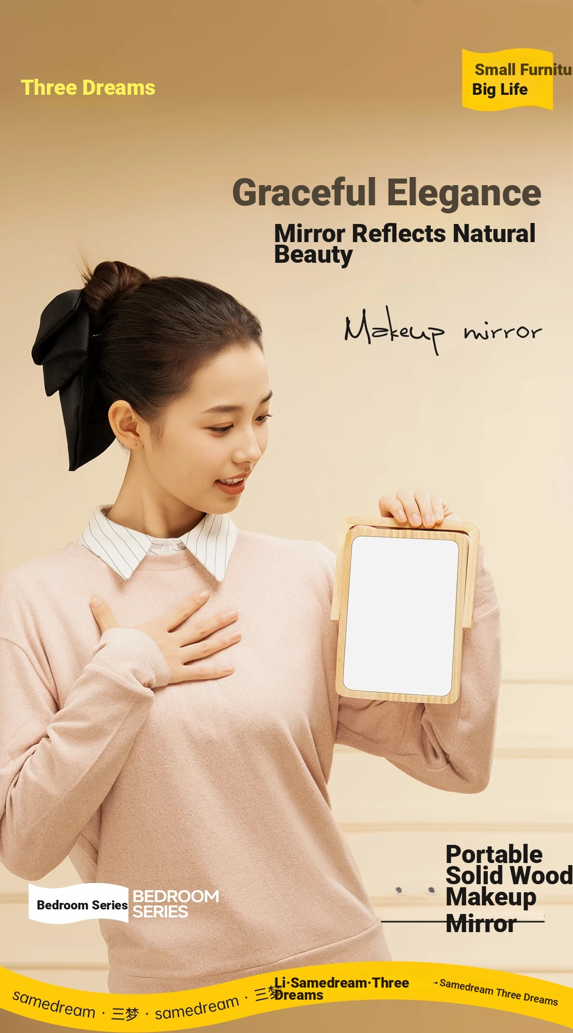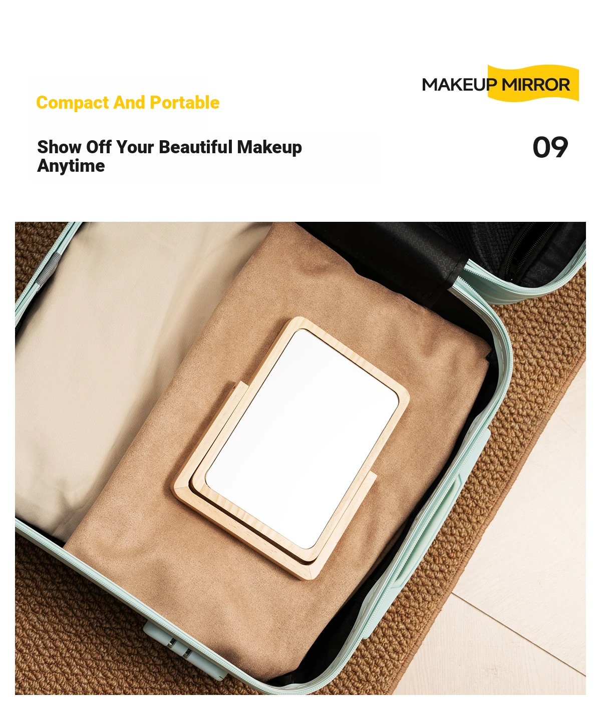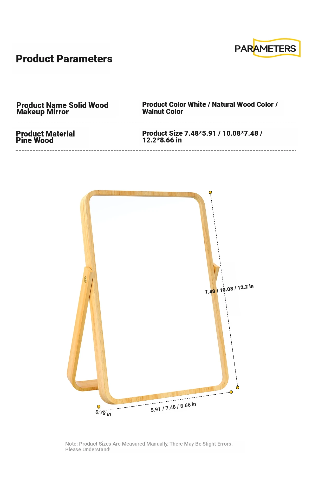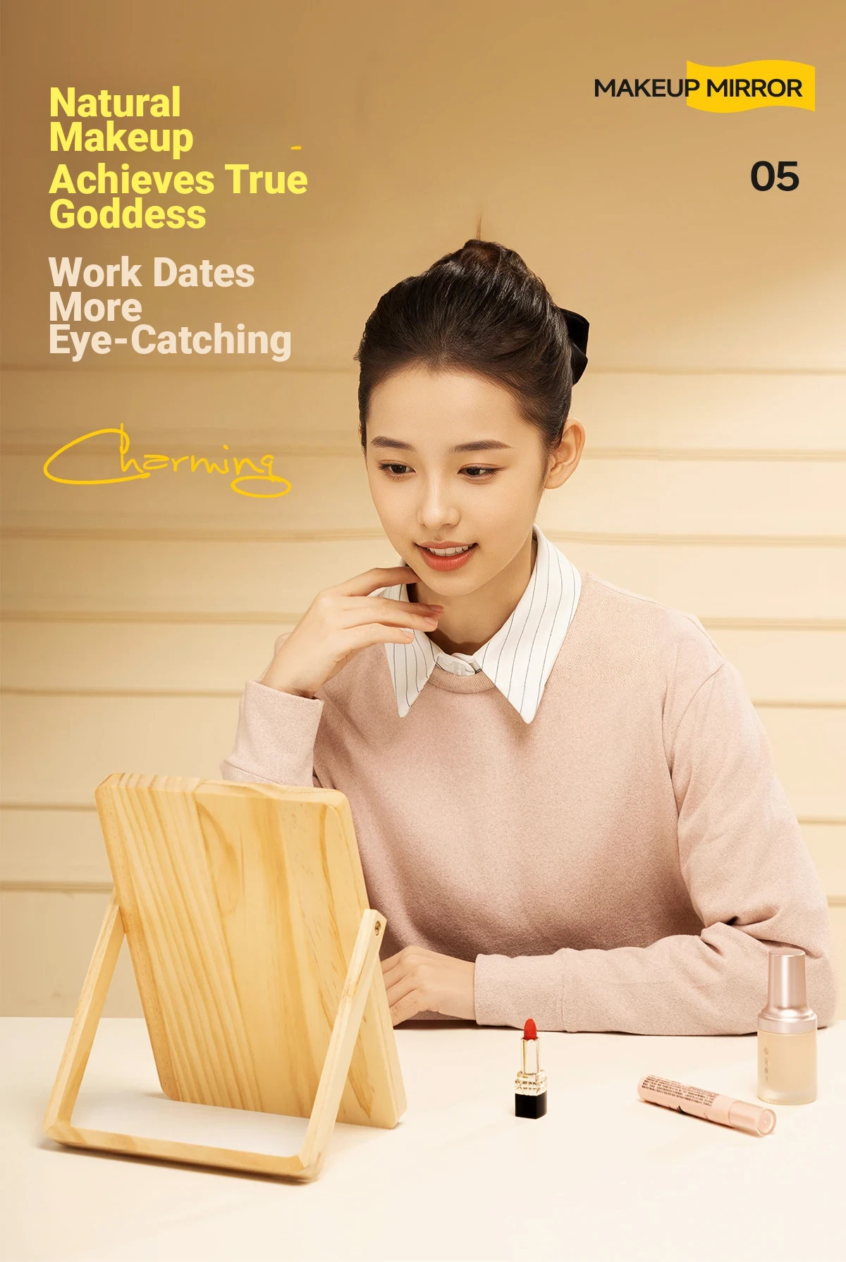 Premium Adjustable Wooden Makeup Mirror - Stylish Desktop Vanity Mirror for Home Use, Perfect for Bedrooms and Portable for On-the-Go Beauty Touch-Ups!