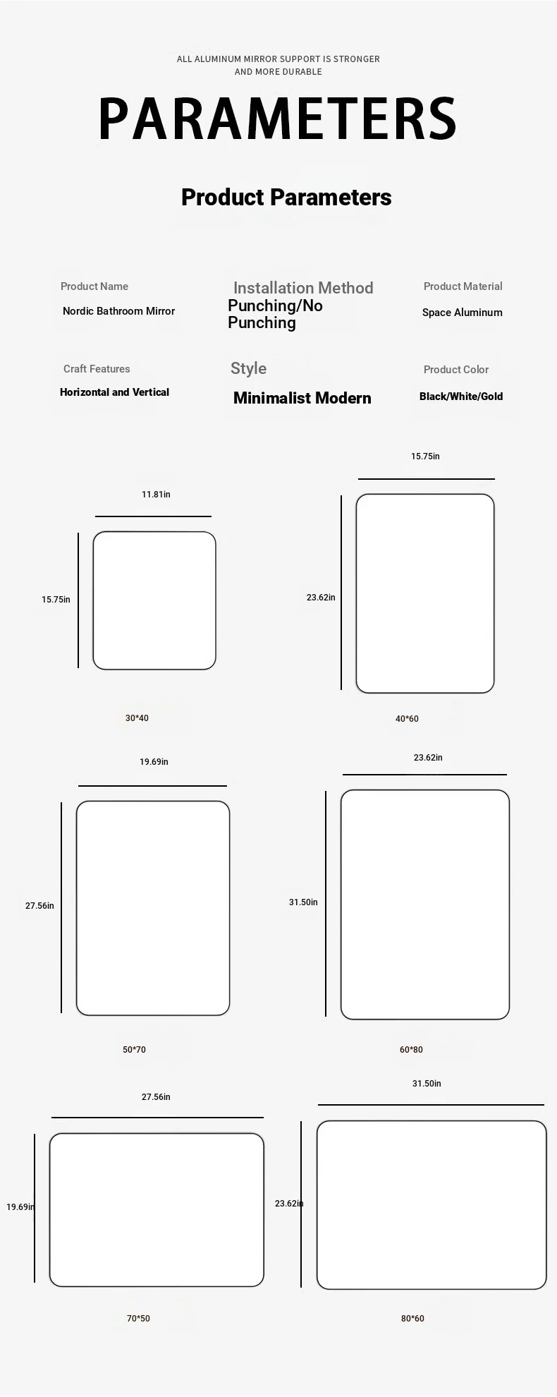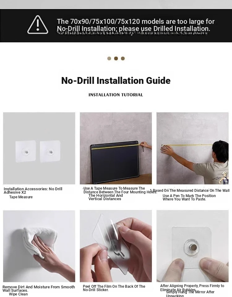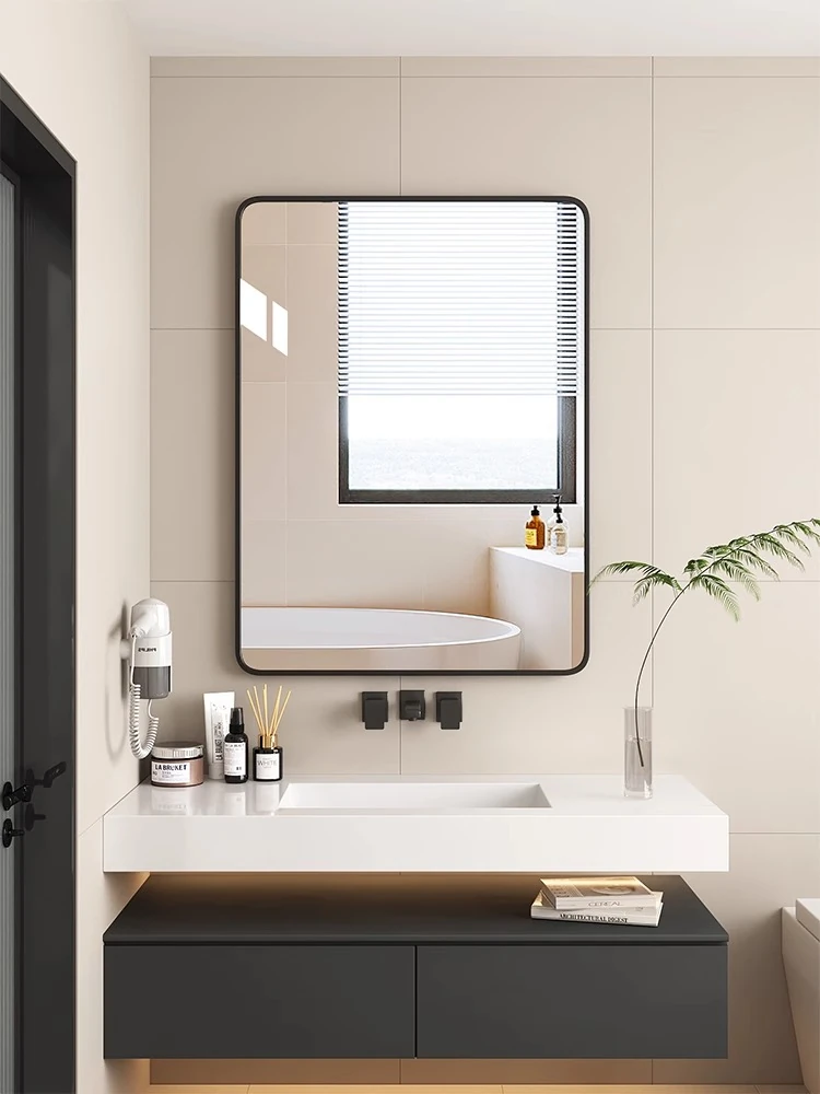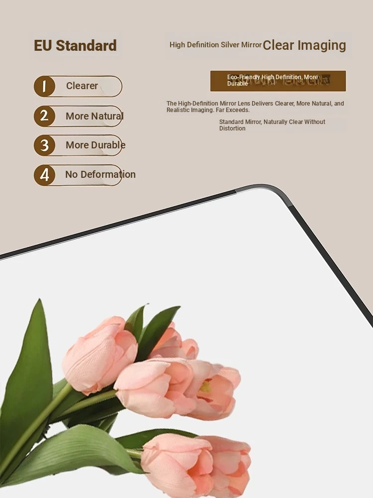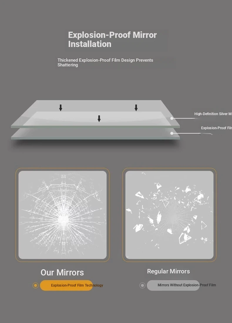 Self-Adhesive Waterproof Bathroom Mirror - No Drilling Required, Easy Wall-Mounting for Vanity and Sink Areas - Perfect for Your Toilet and Shower Room