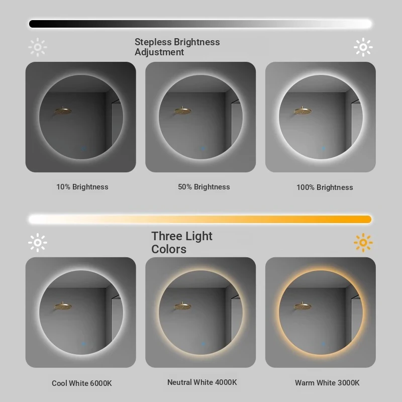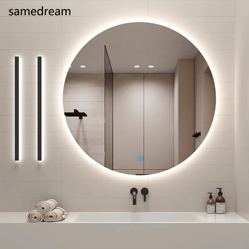 Smart Touch Screen LED Makeup Mirror - Round Wall-Mounted Vanity Mirror for Bedroom and Desktop, Perfect for Effortless Beauty Routines