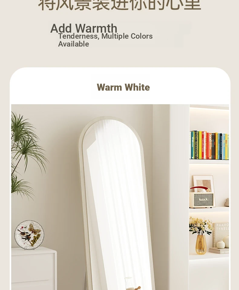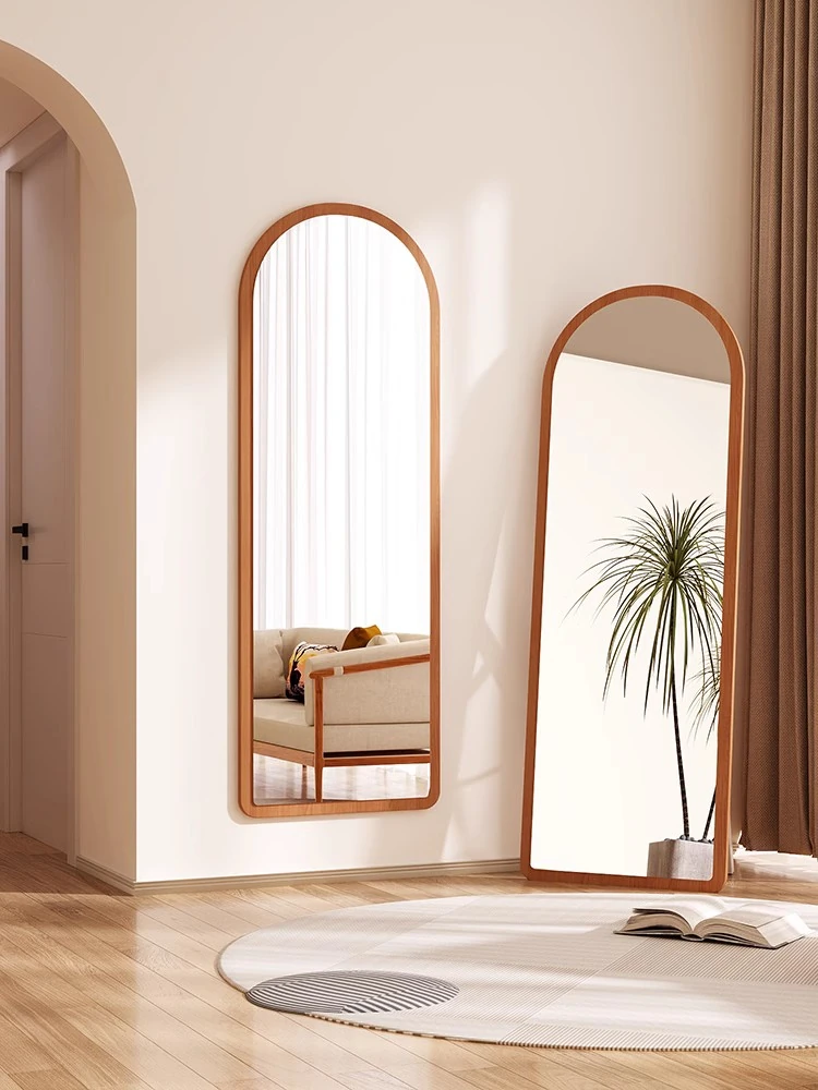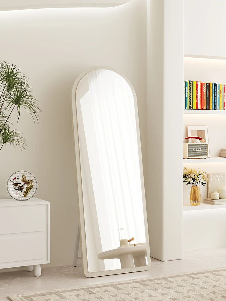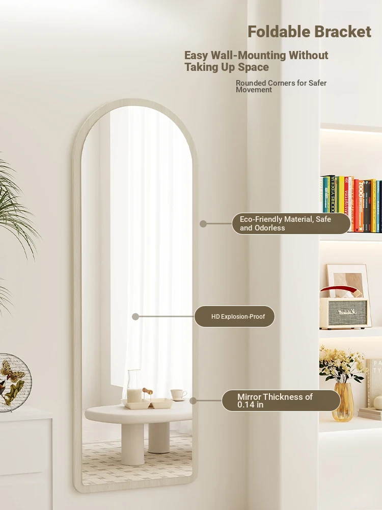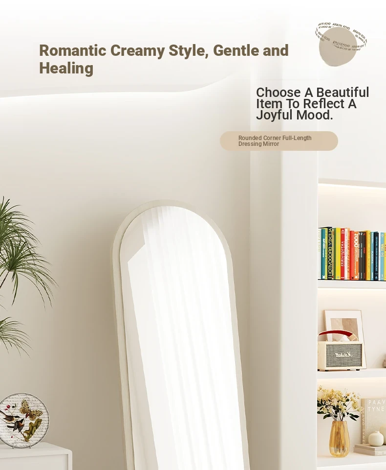 Trendy Full-Length Floor Mirror for Home - Creamy Aesthetic Bedroom Dressing Mirror, Wall-Mounted or Freestanding, with High Definition Reflection for Stylish Try-Ons