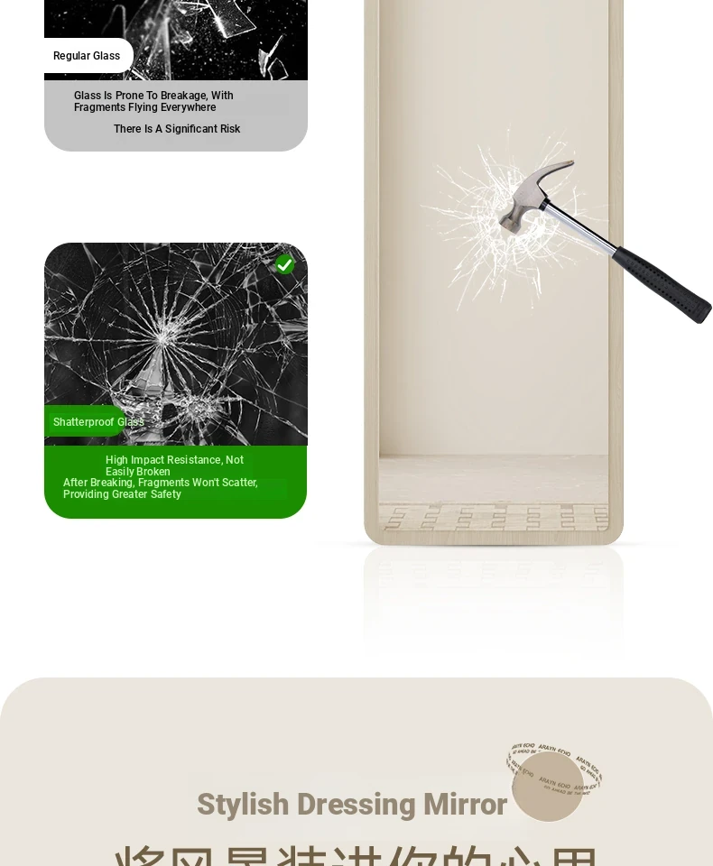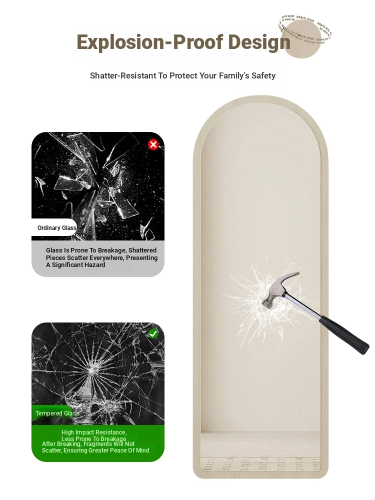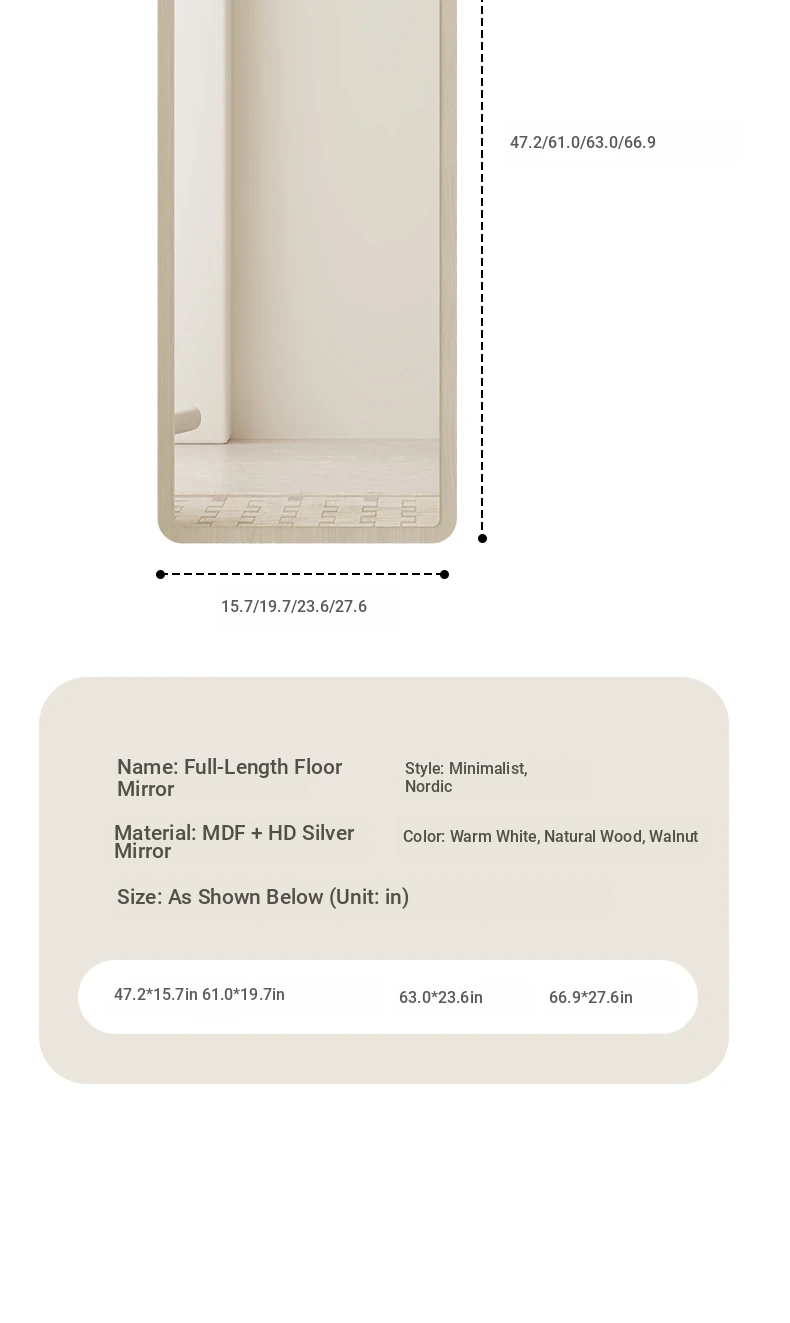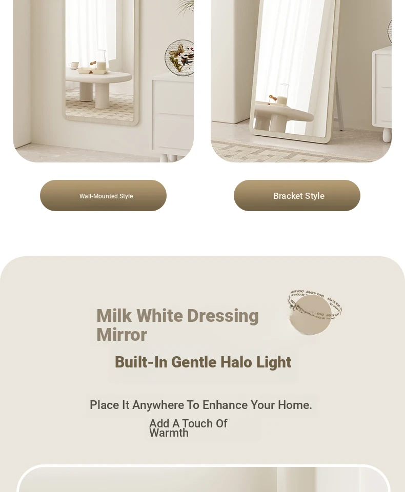 Trendy Full-Length Floor Mirror for Home - Creamy Aesthetic Bedroom Dressing Mirror, Wall-Mounted or Freestanding, with High Definition Reflection for Stylish Try-Ons