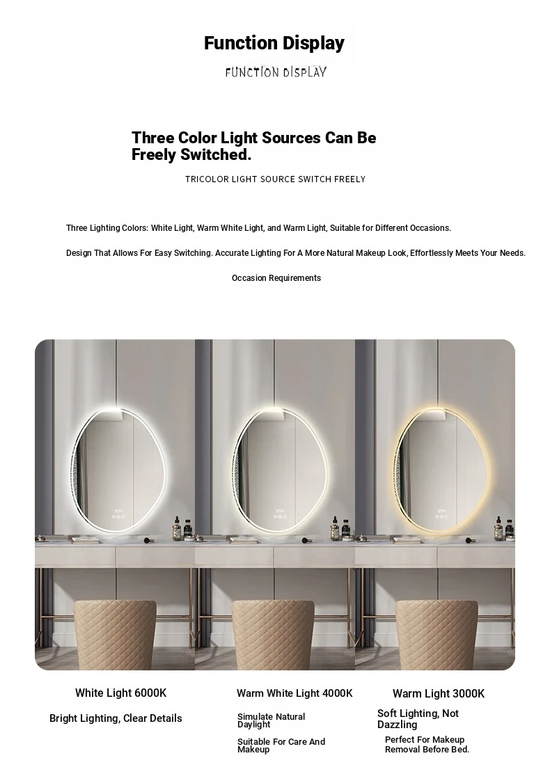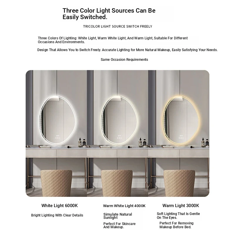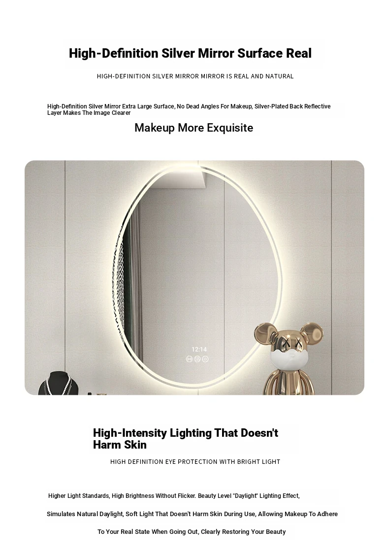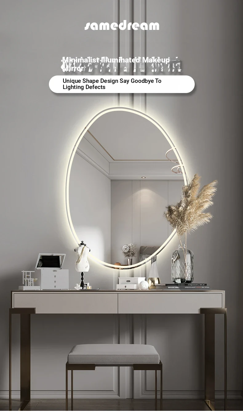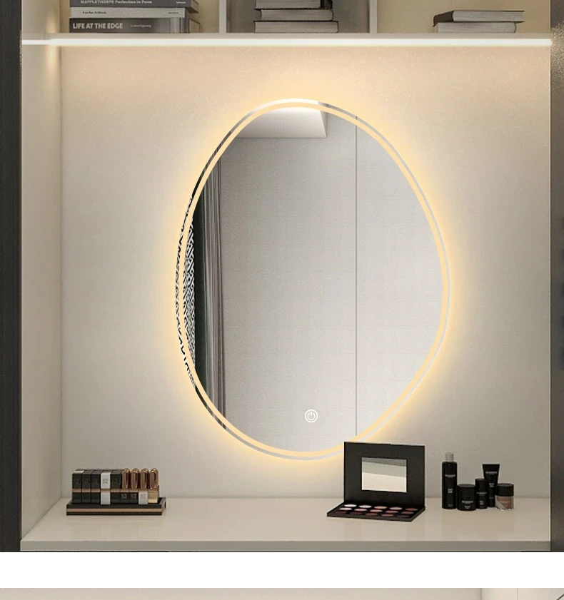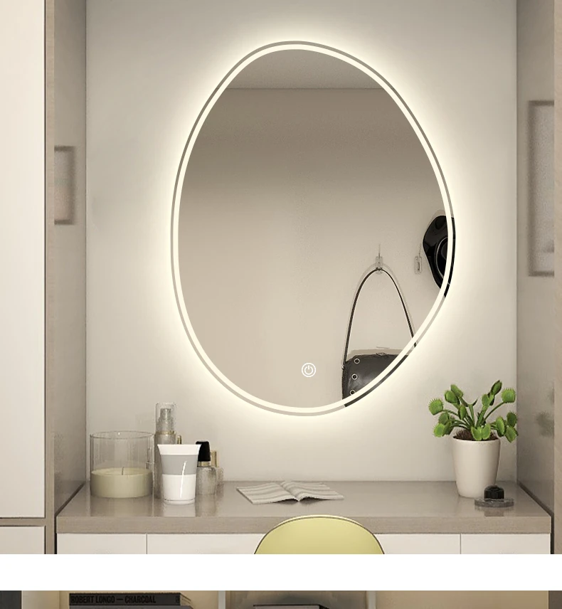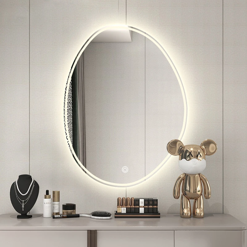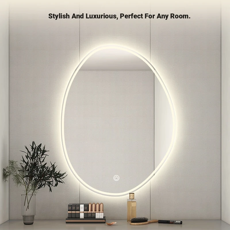 Unique Smart LED Makeup Mirror - Wall-Mounted Irregular Design with Illuminated Lighting for Bedroom Vanity - Perfect for Glamorous Makeup Application