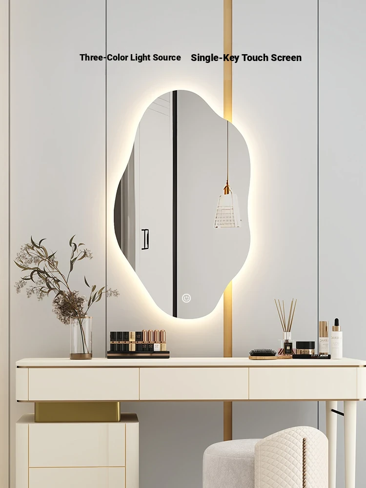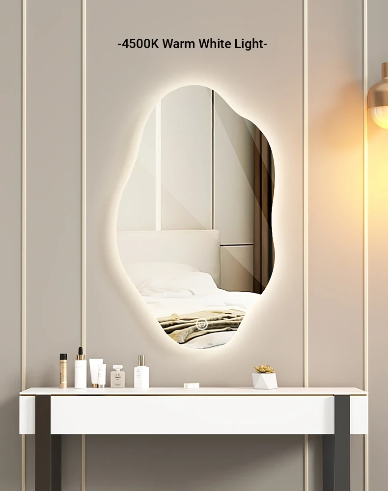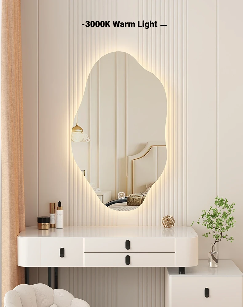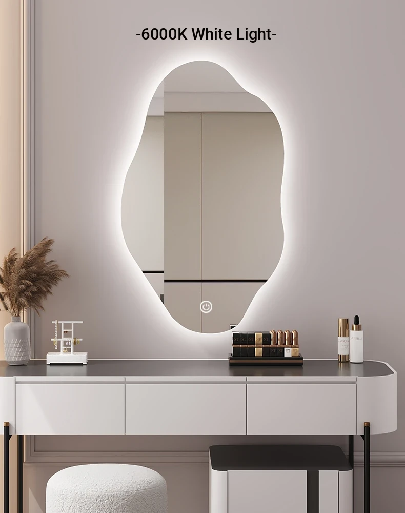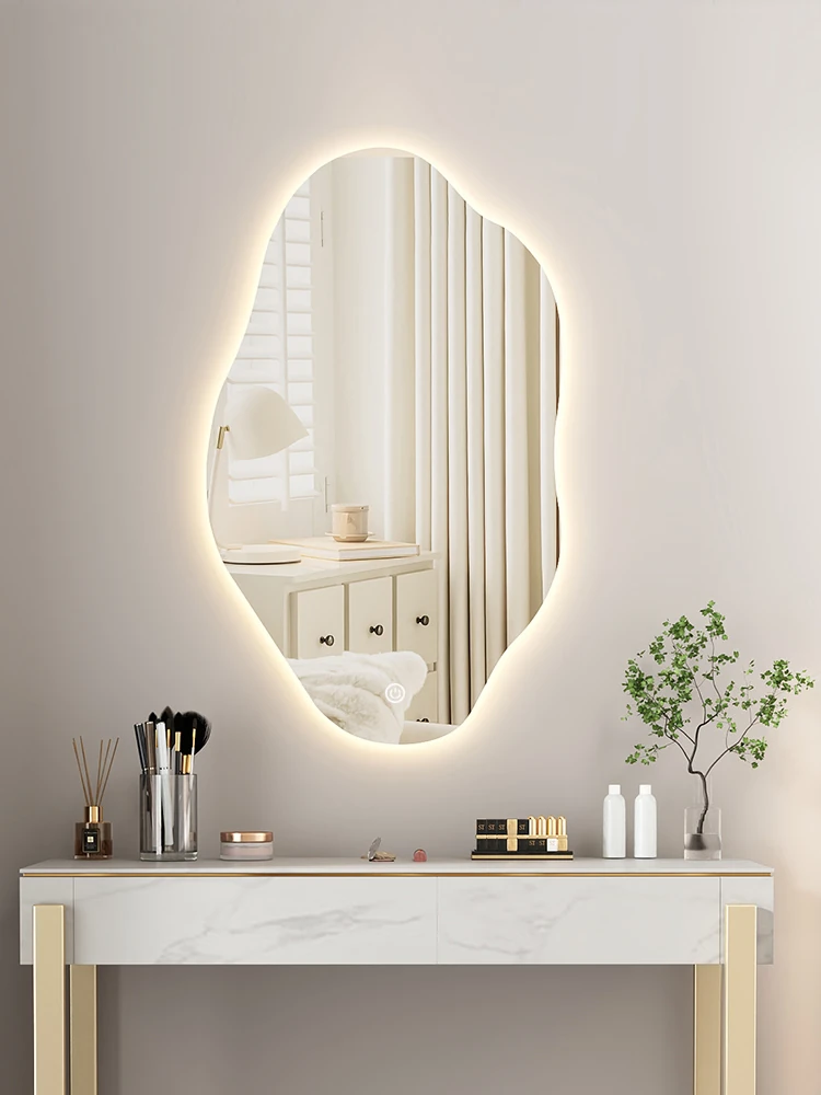 Unique Smart LED Wall-Mounted Makeup Mirror - Irregular Shaped Illuminated Vanity Mirror for Bedroom, Perfect for Your Grooming Needs!