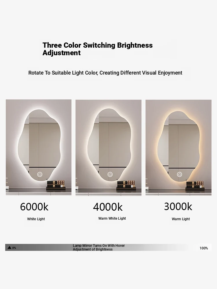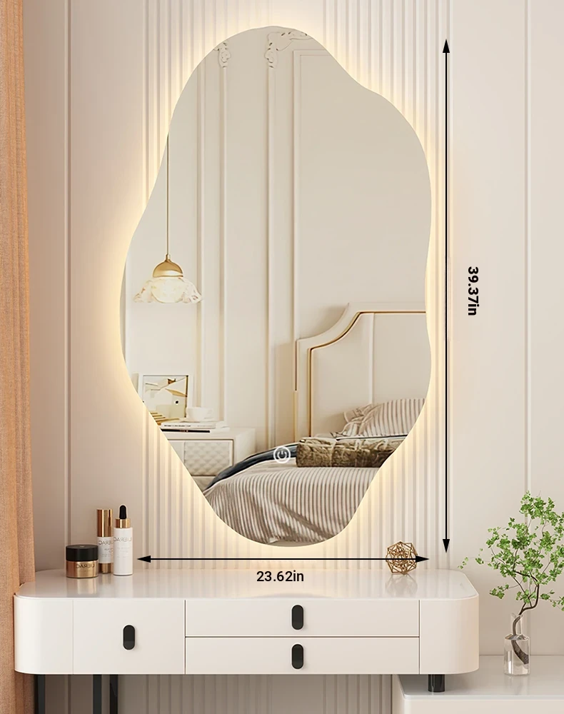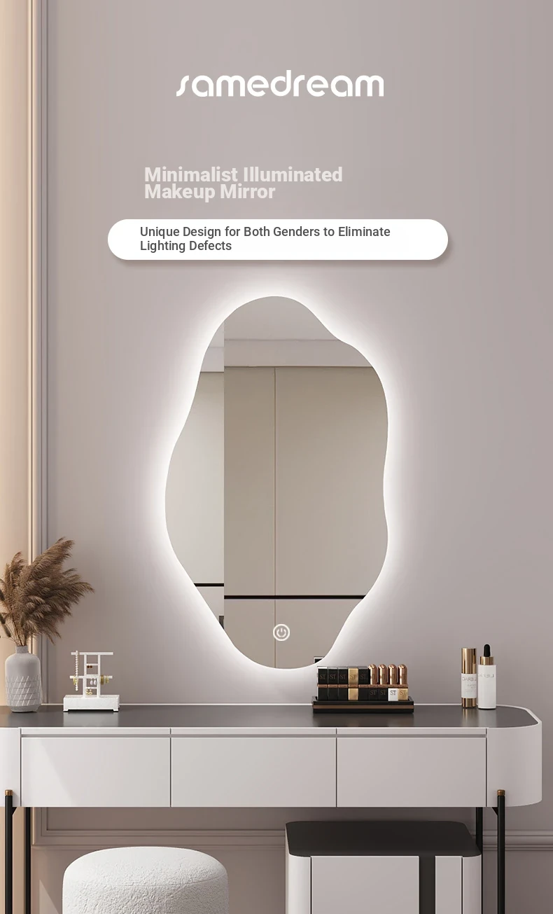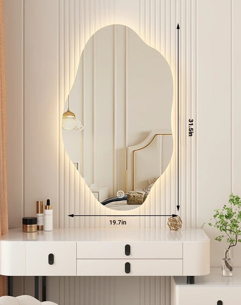 Unique Smart LED Wall-Mounted Makeup Mirror - Irregular Shaped Illuminated Vanity Mirror for Bedroom, Perfect for Your Grooming Needs!