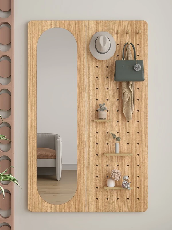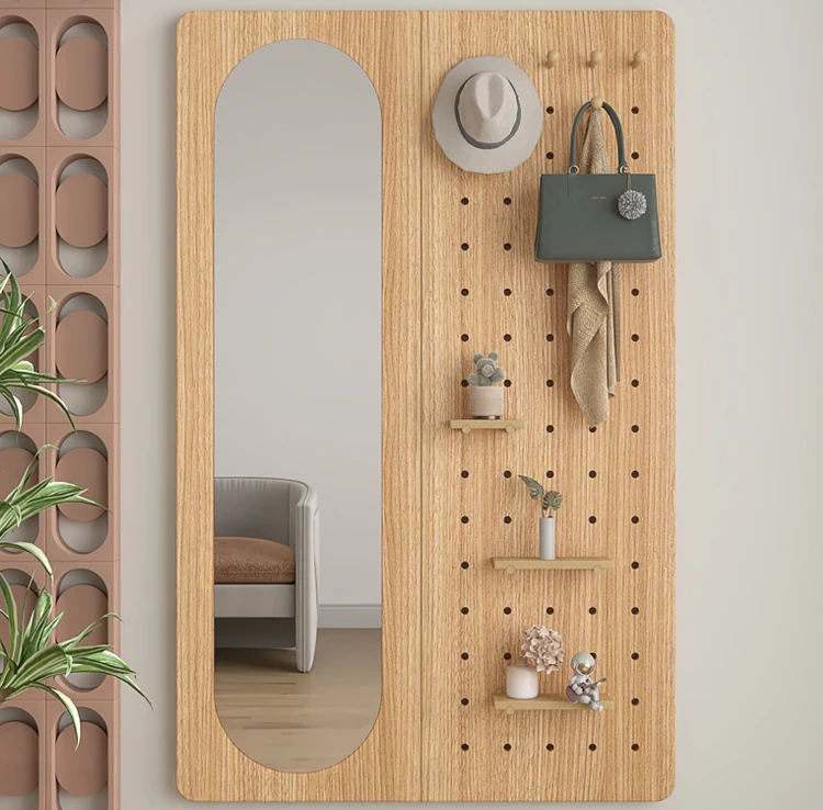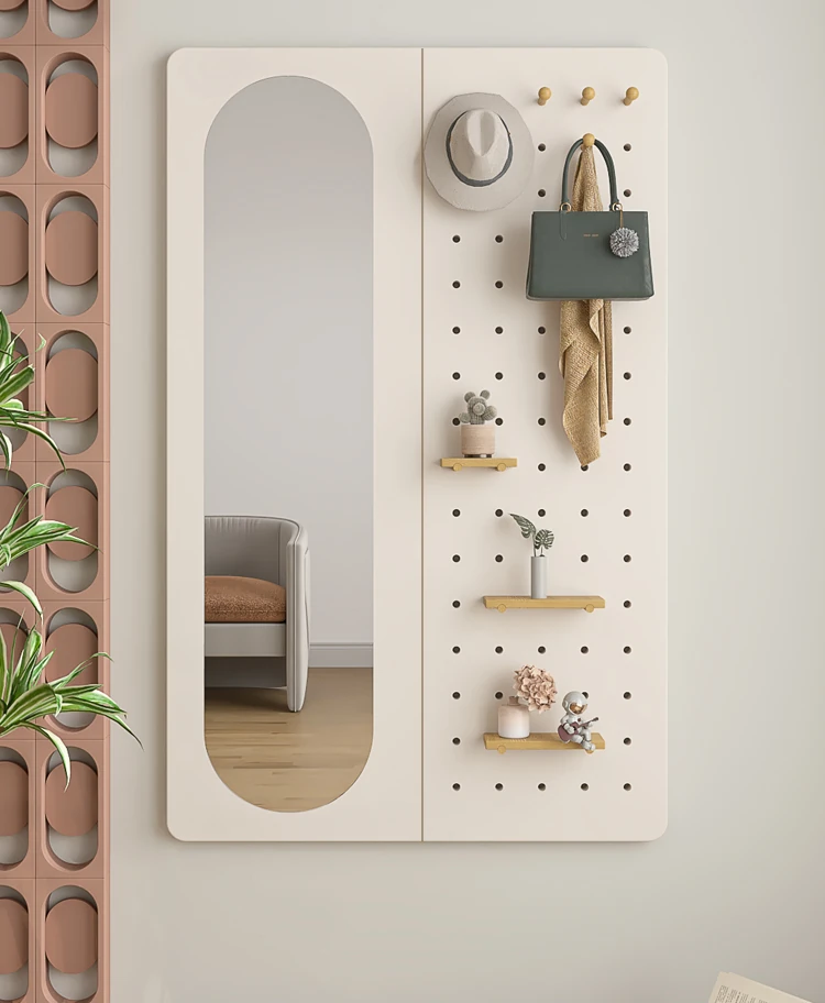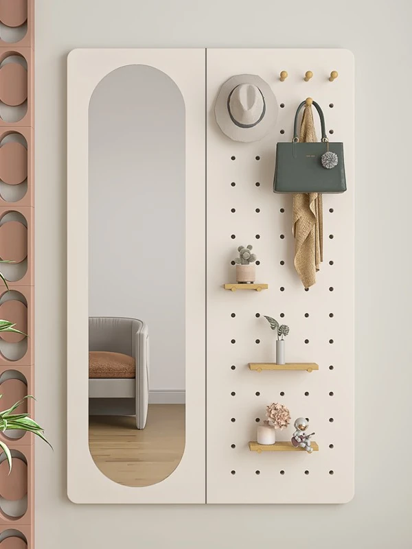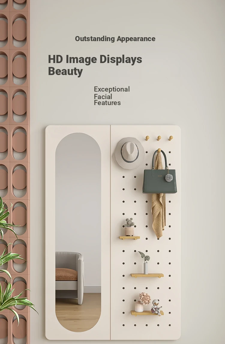 Wall-Mounted Dressing Mirror with Hooks - Stylish and Functional Full-Length Mirror for Bedroom and Entryway, Perfect for Outfits and Accessories Organization