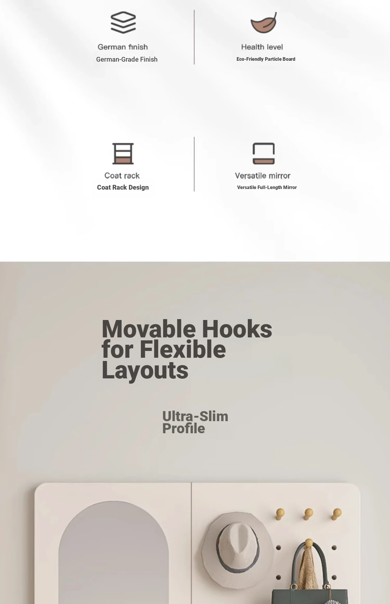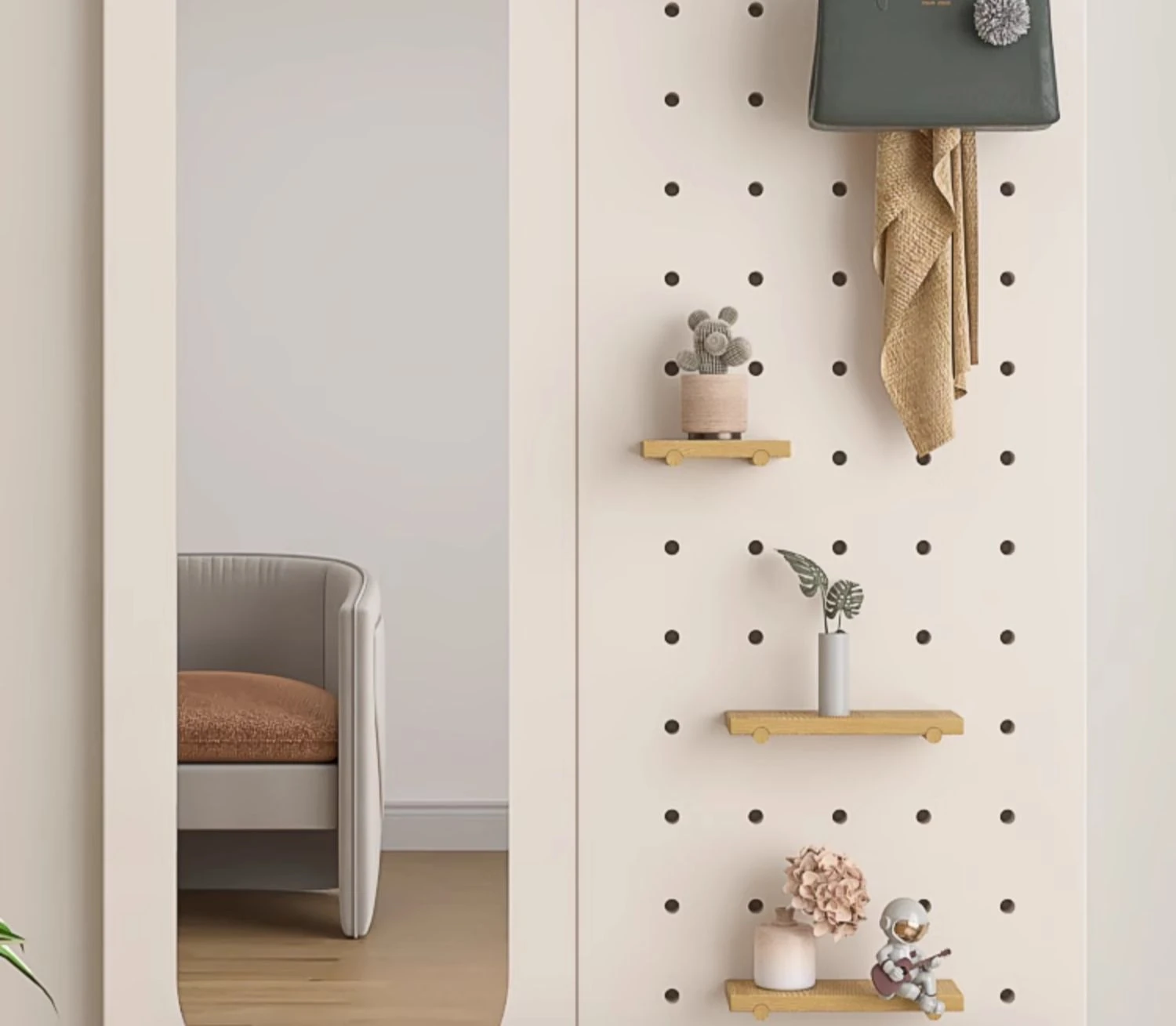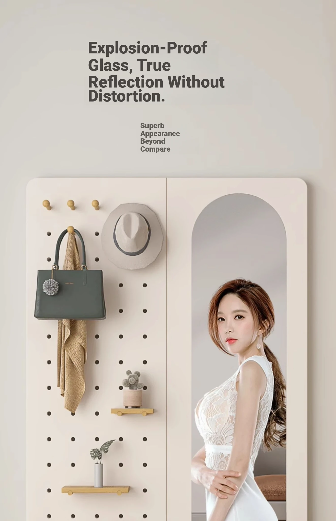 Wall-Mounted Dressing Mirror with Hooks - Stylish and Functional Full-Length Mirror for Bedroom and Entryway, Perfect for Outfits and Accessories Organization