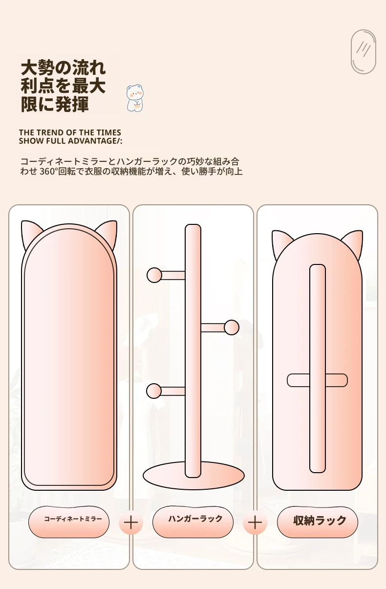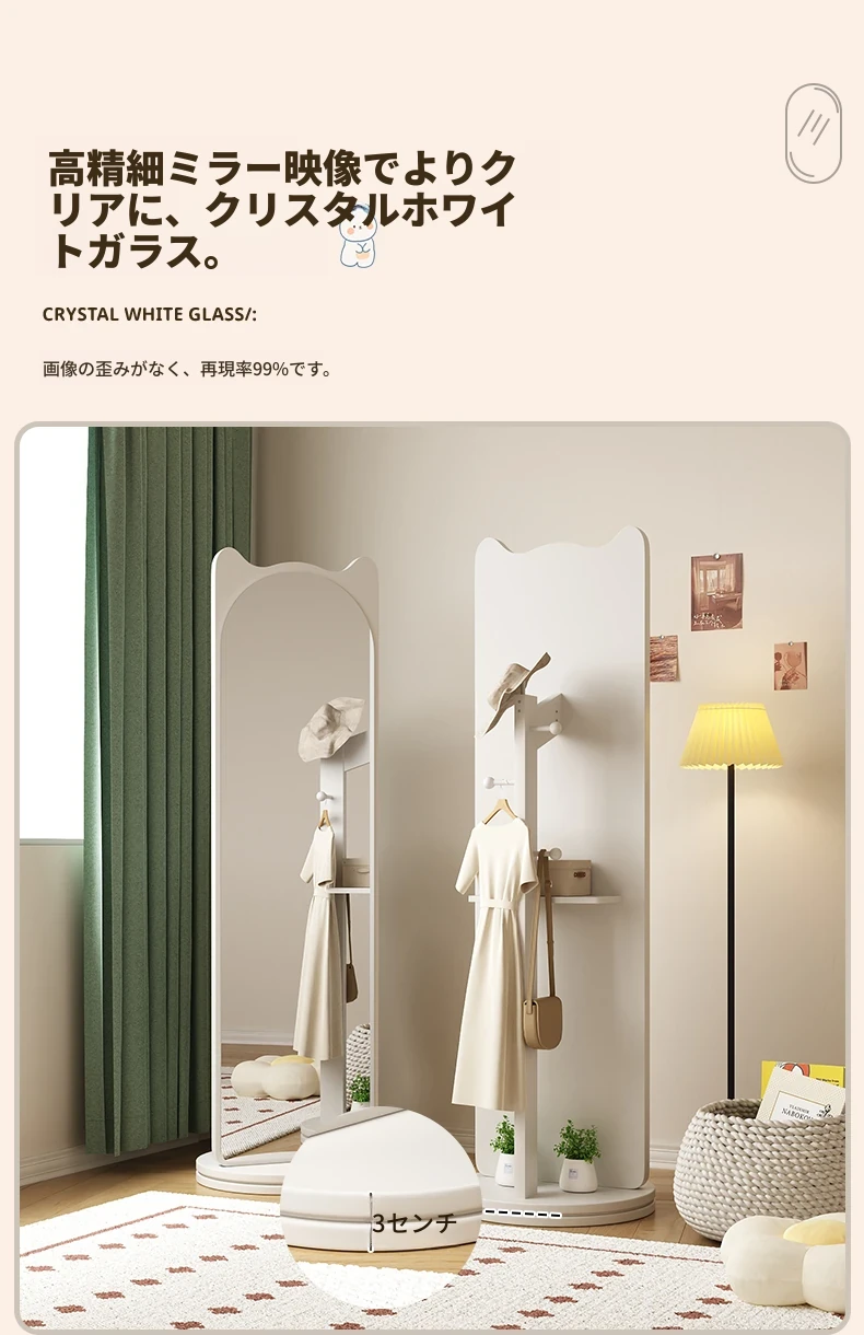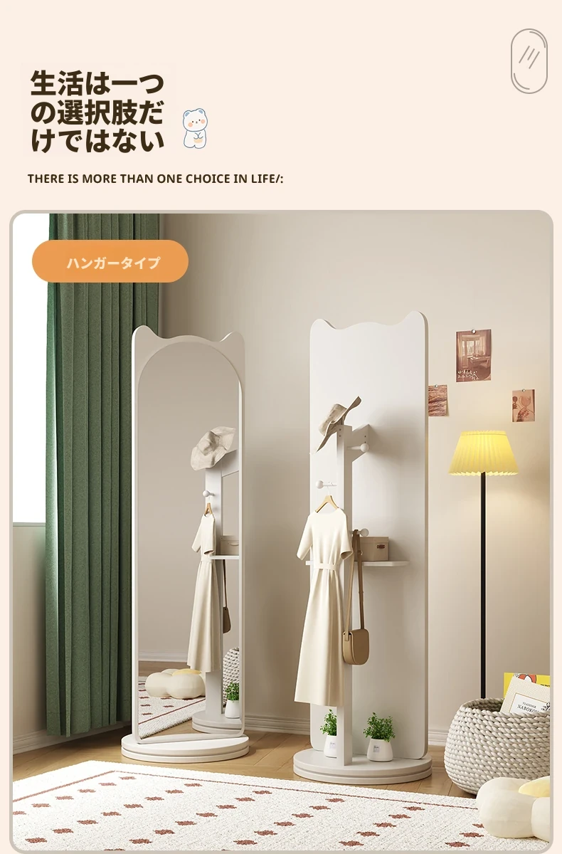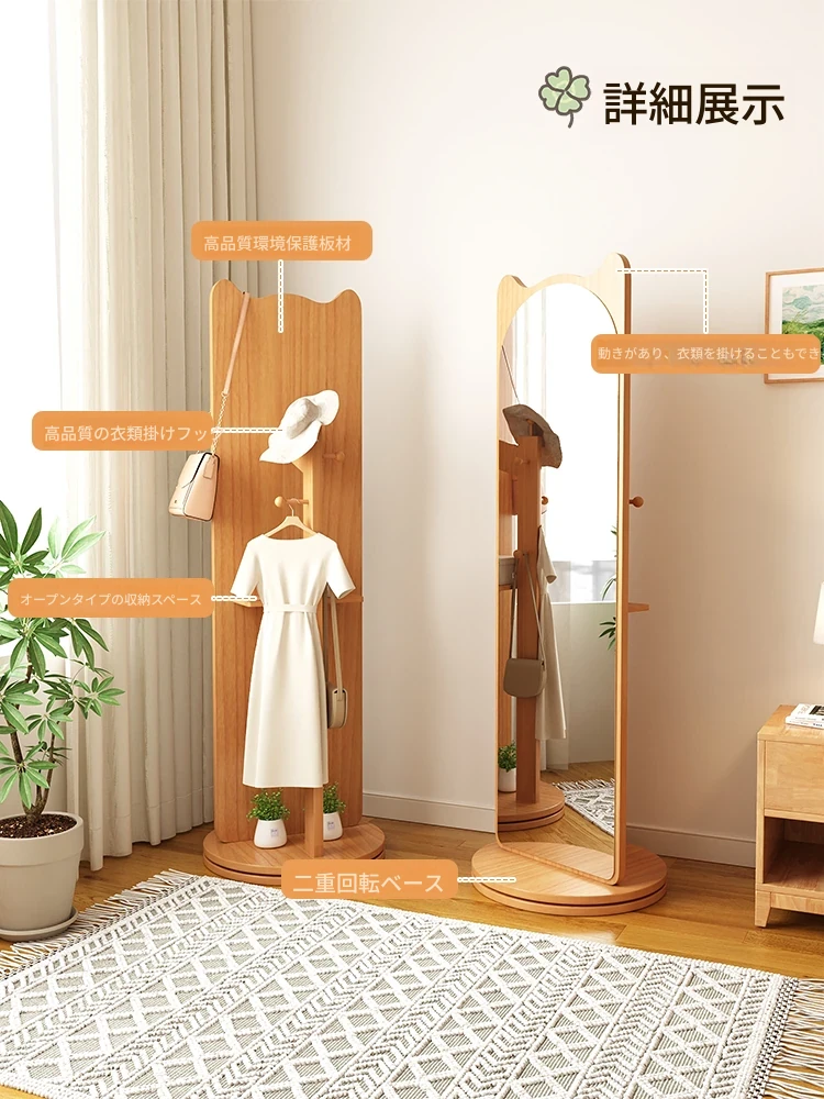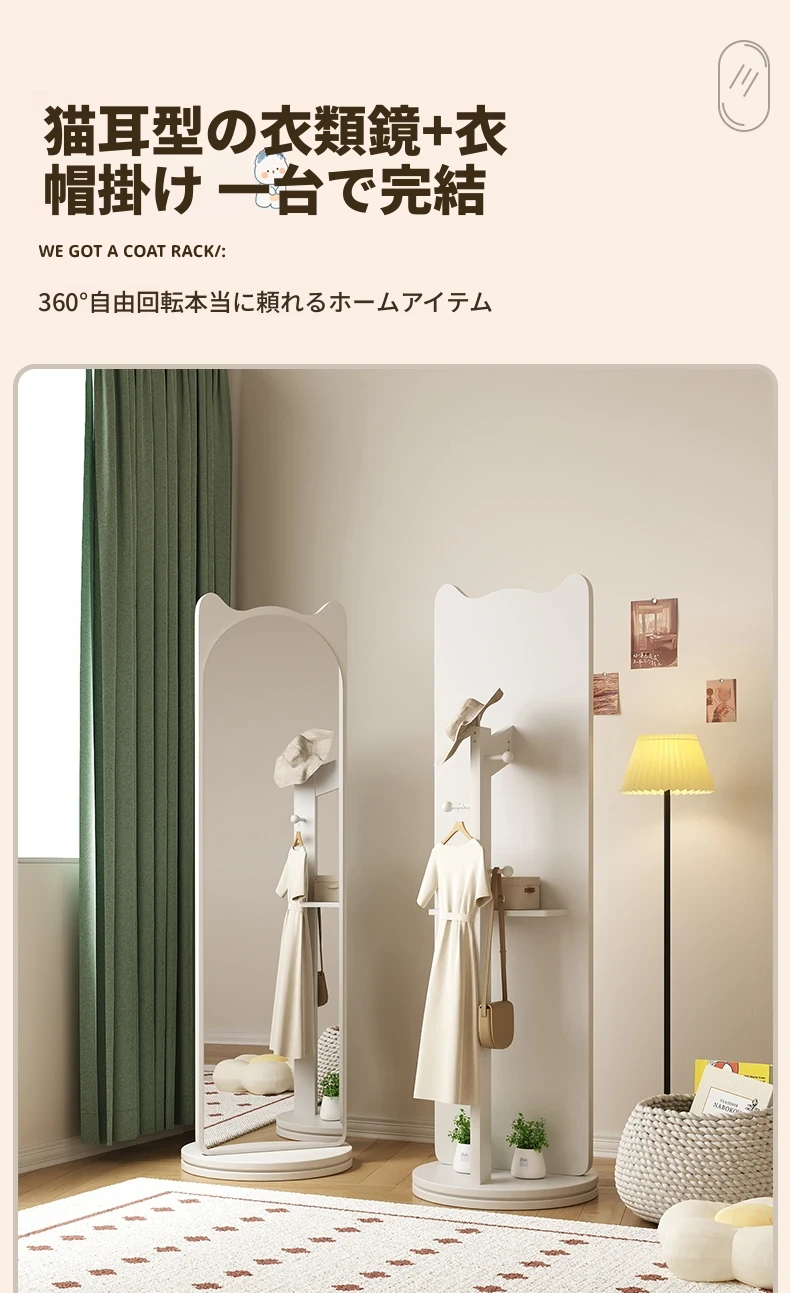 夢のような三夢回転全身鏡!衣服と帽子を一体化したスタイリッシュなデザイン。家での使用に最適で、寝室にぴったりの高画質試着鏡。あなたの毎日をもっと素敵に演出します!
