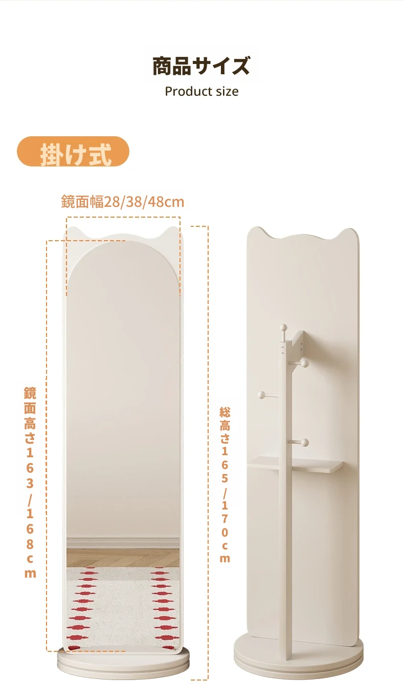 【暖白色-掛け置きタイプ】170*40cm-【大底座回転+大容量ハンガー】