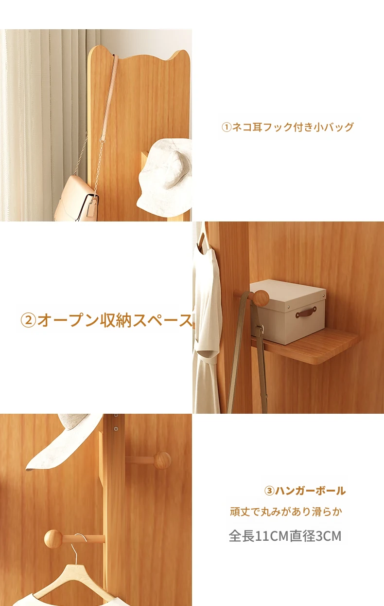 【原木色-掛け置きタイプ】170*40cm-【大底座回転+大容量ハンガー】