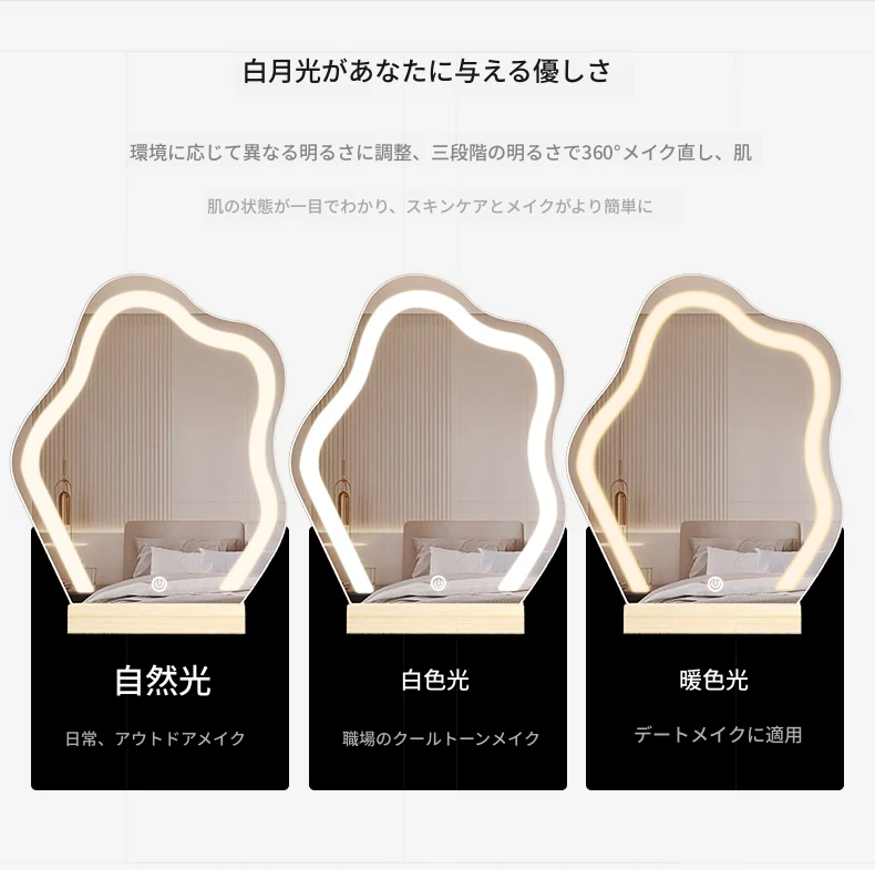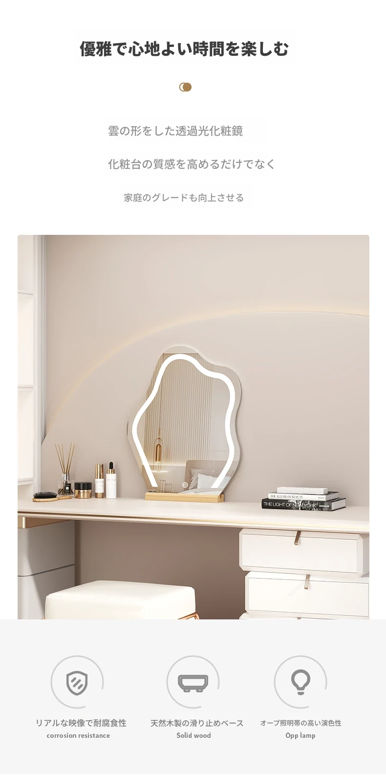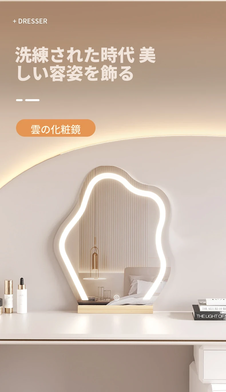 雲のようなスマートLEDメイクアップミラー - 壁掛け&スタンド付き、寝室のドレッシングテーブルに最適!光るユニークなデザインで、美しさを引き立てる完璧なアイテムです。どんなスタイルにもマッチする魅力的な鏡を手に入れよう!