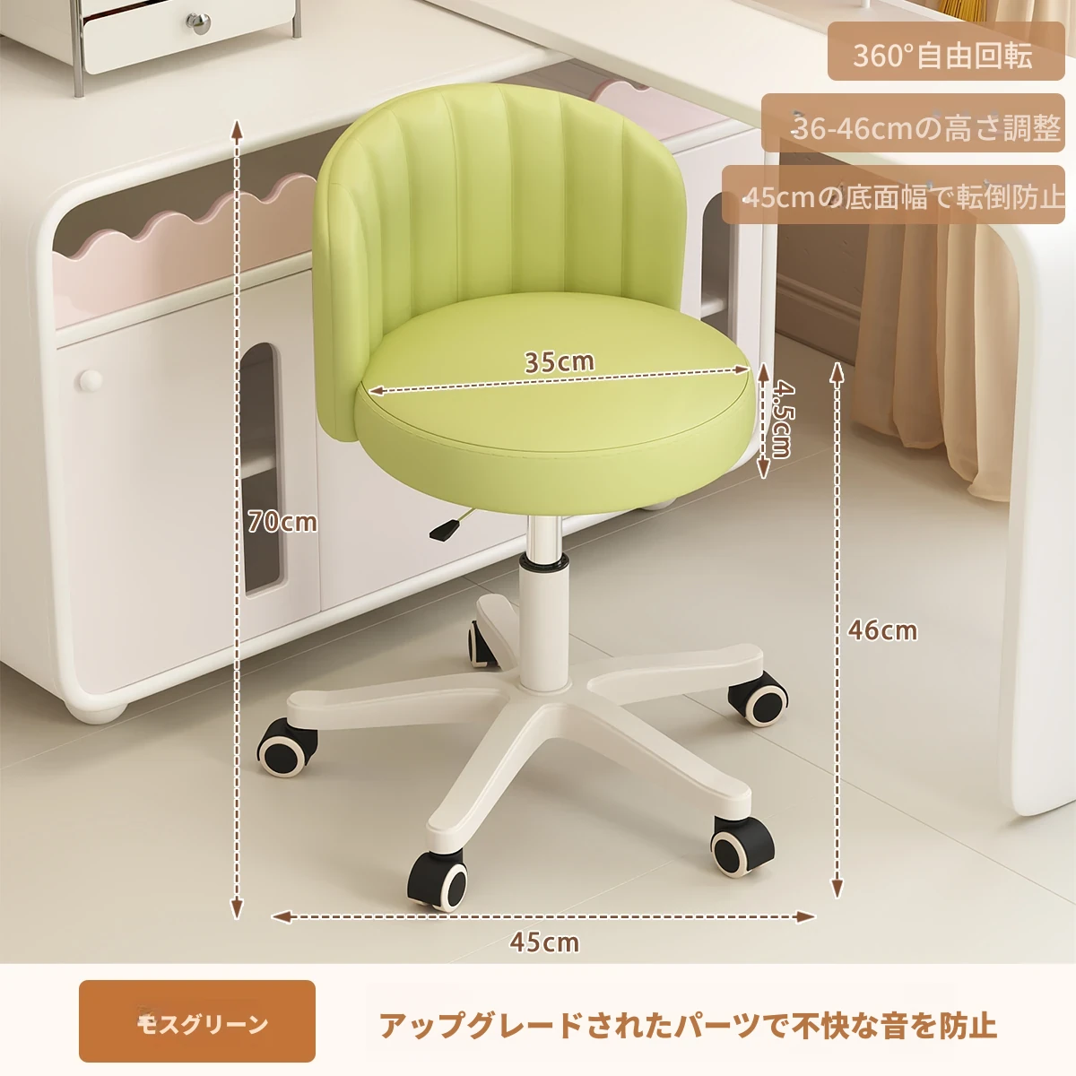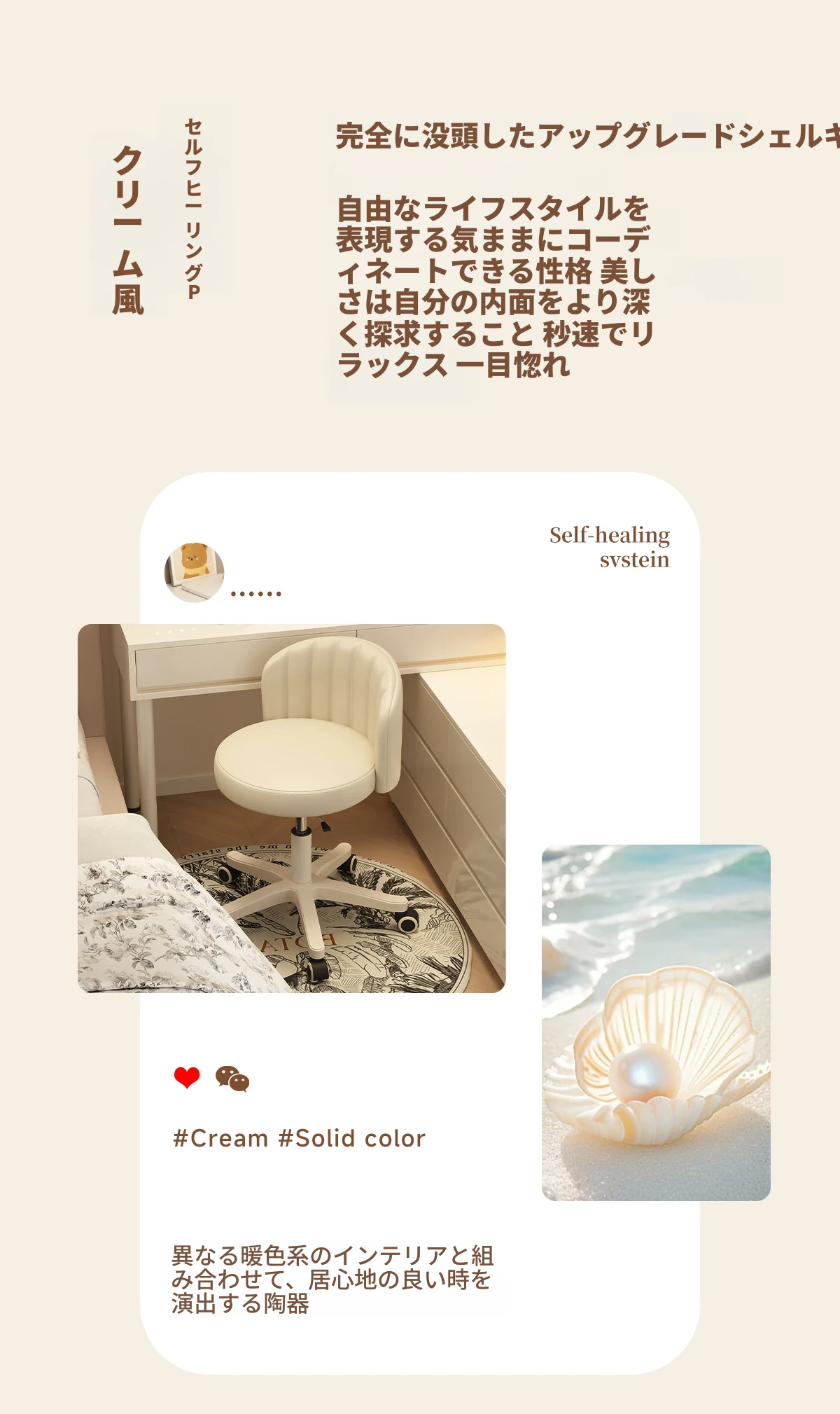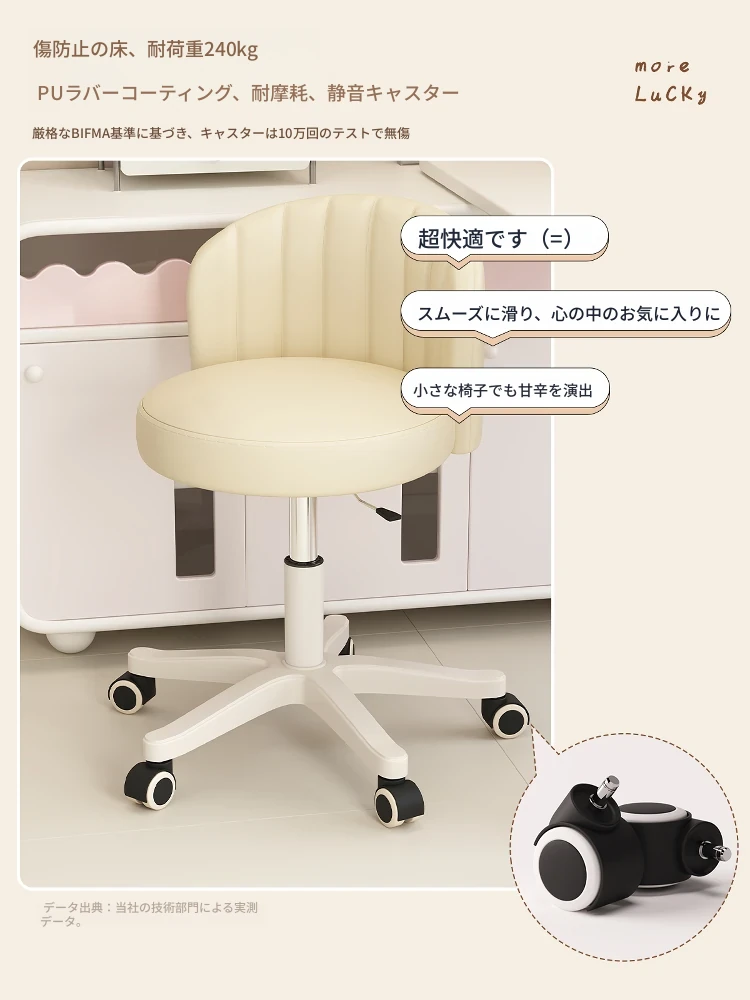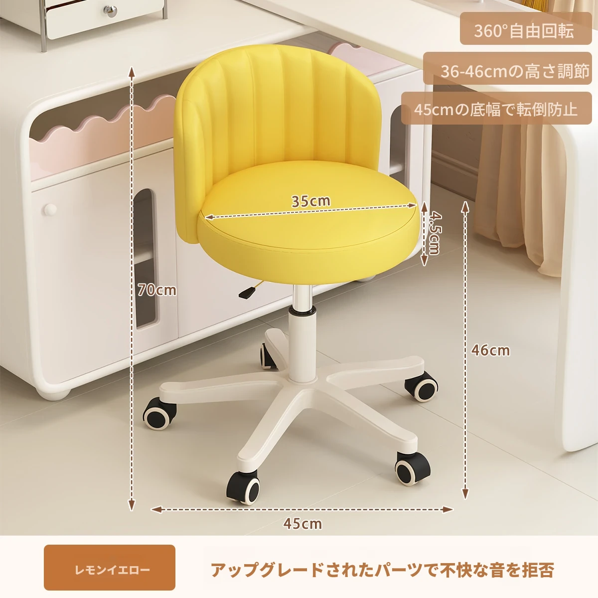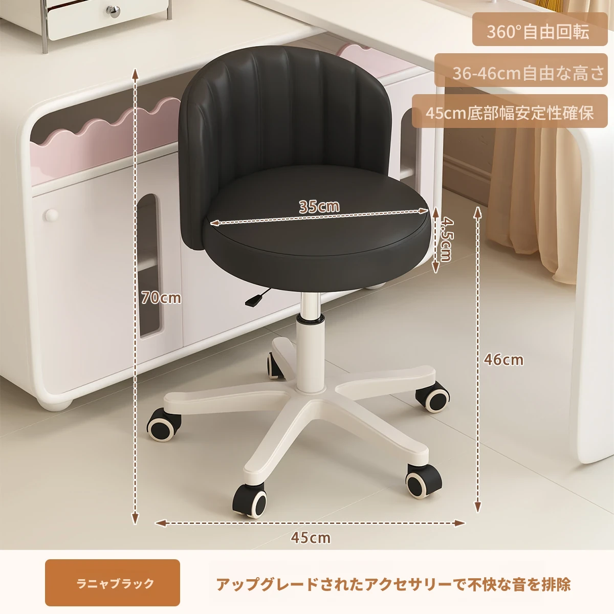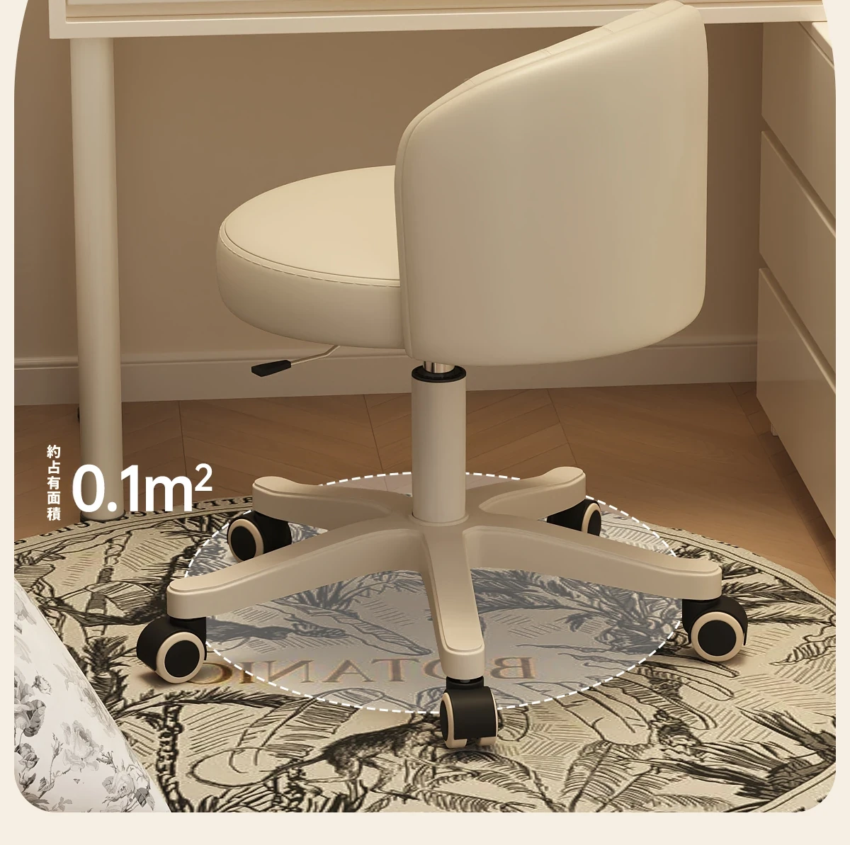 クリームカラーのメイクアップチェア - 女子の寝室にぴったり!調整可能な背もたれと回転機能付き、スムーズなキャスターで移動もラクラク。美容やネイル作業に最適なスタイリッシュなデザイン。