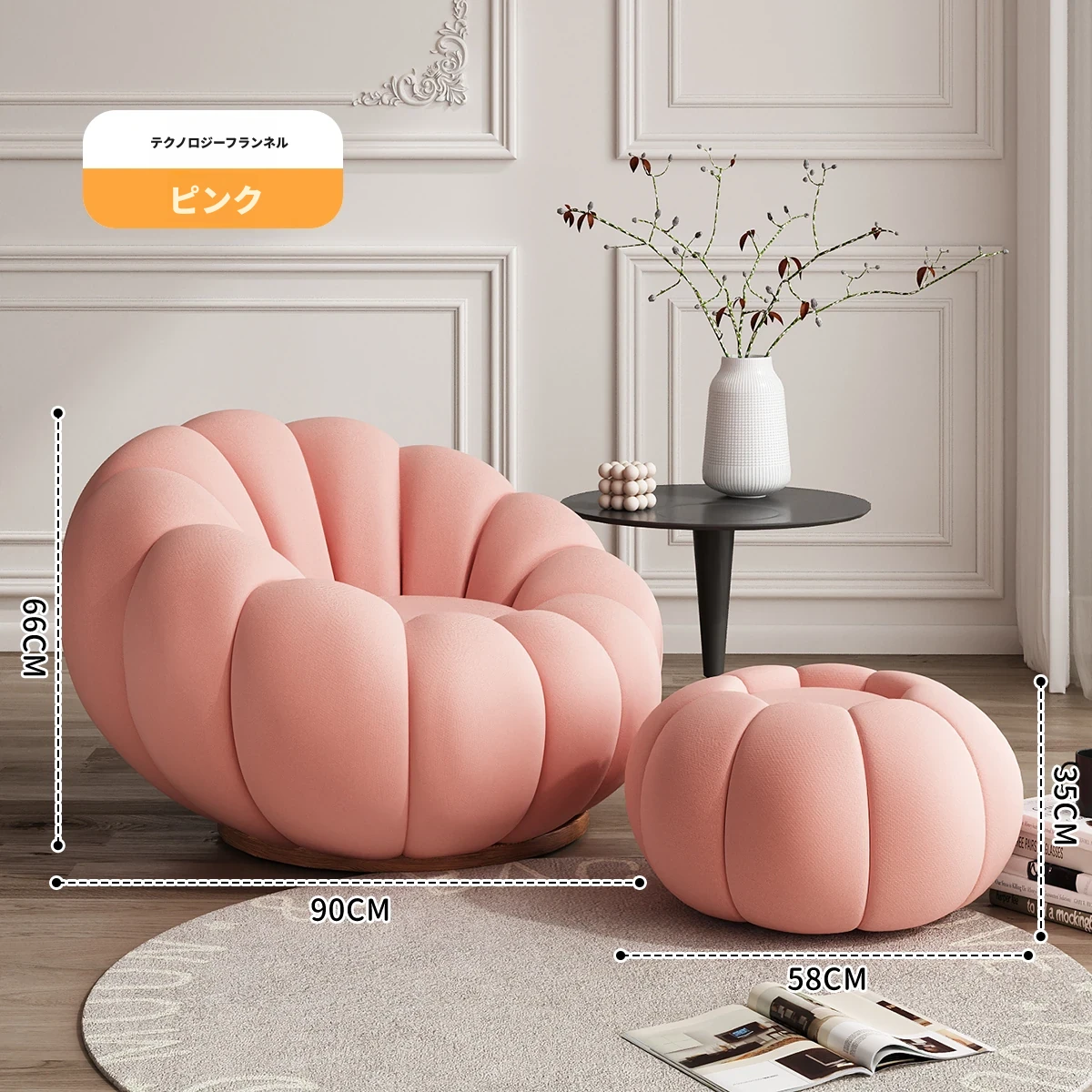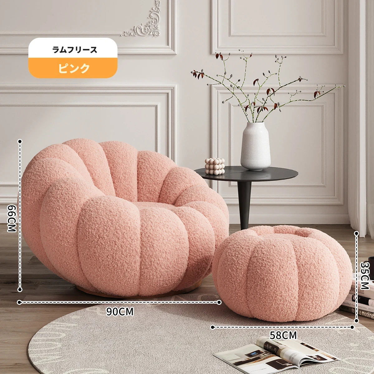 360°回転 【肌触りの良いラムフリース】ピンクソファ+オットマン