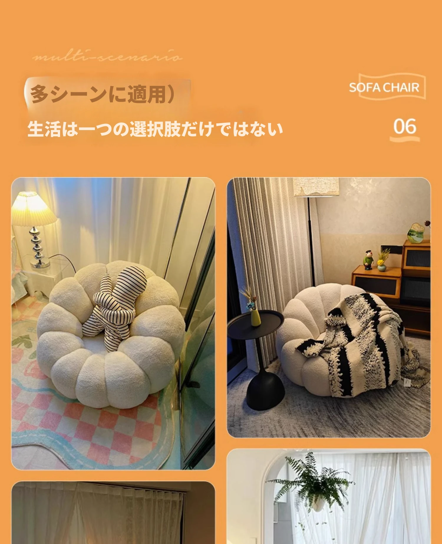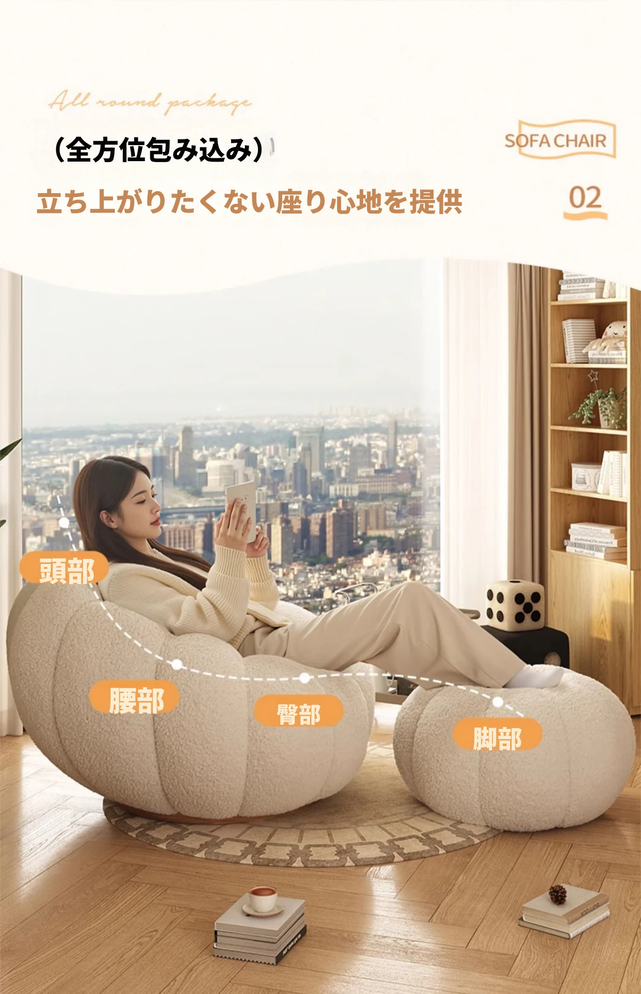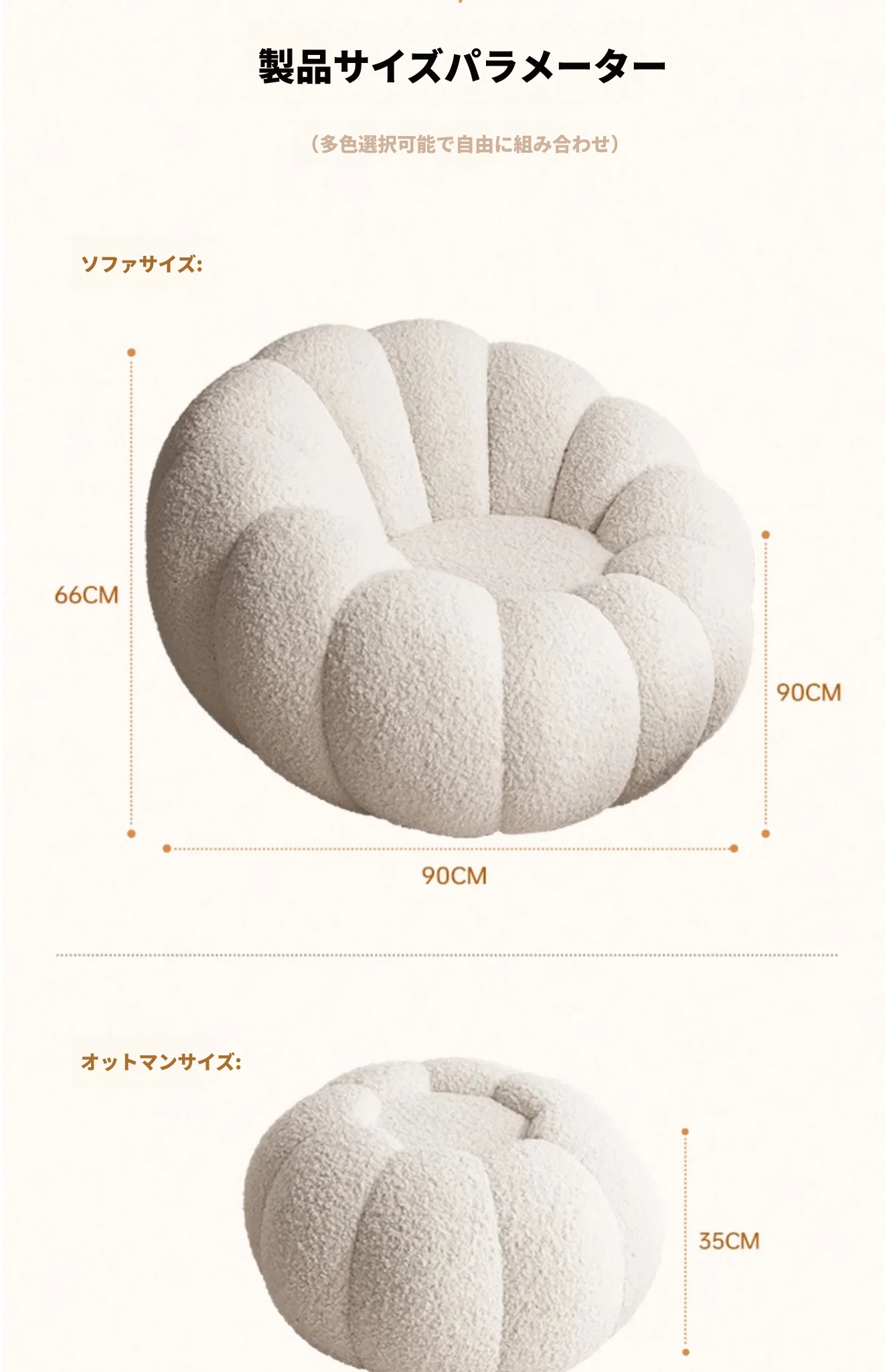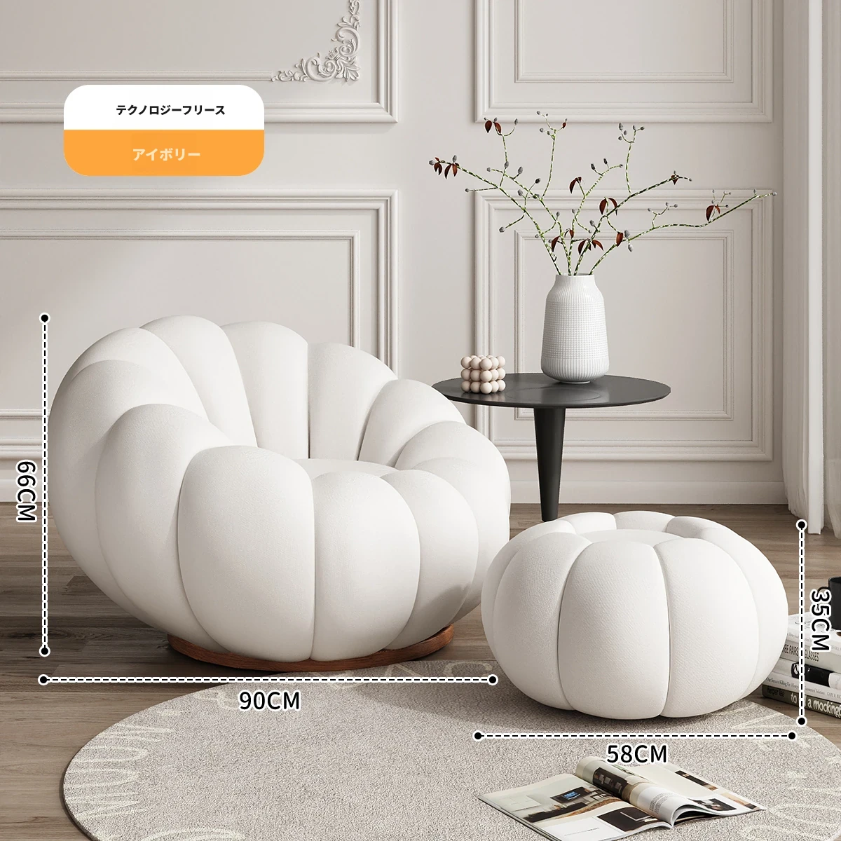 夢のようなリラックス!三夢のローソファは、寝転んだり、眠ったりできるクリーム色のカボチャ型回転椅子。リビング・寝室・バルコニーにぴったりの一人用「人間用犬小屋」です。快適さとスタイルを両立させた特別な空間をあなたに!