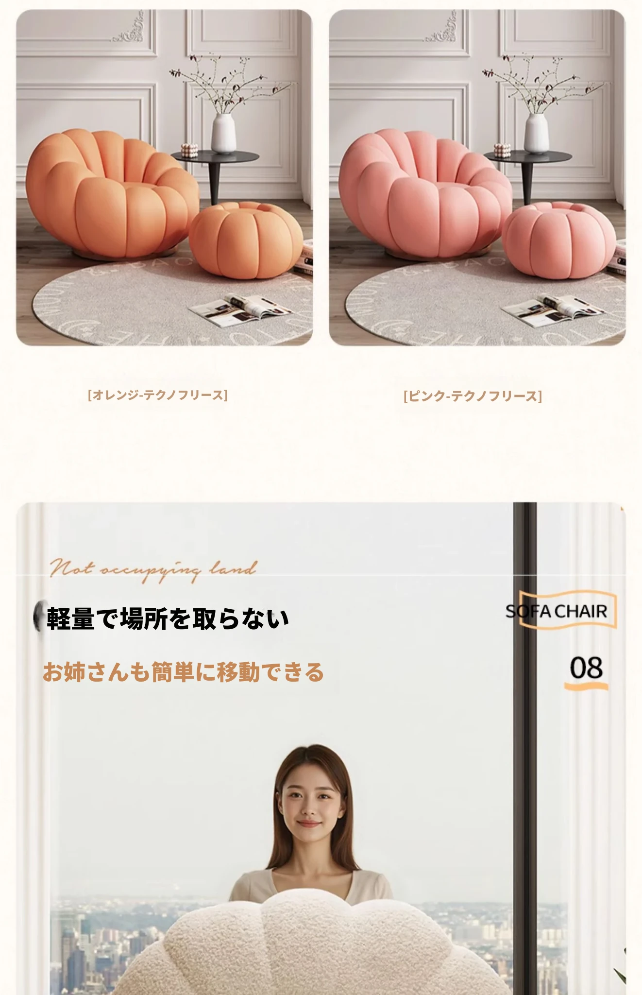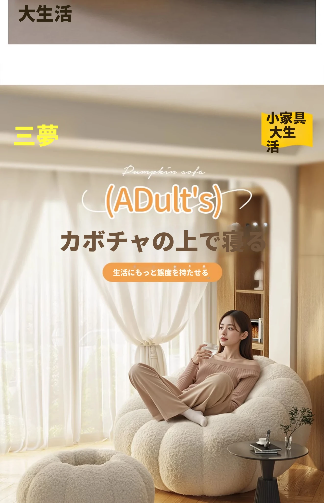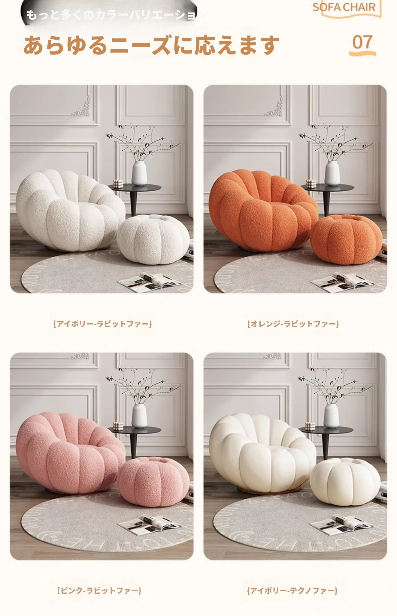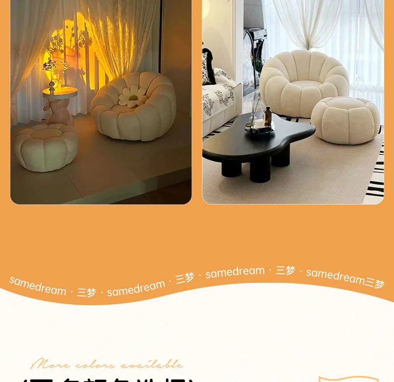 夢のようなリラックス!三夢のローソファは、寝転んだり、眠ったりできるクリーム色のカボチャ型回転椅子。リビング・寝室・バルコニーにぴったりの一人用「人間用犬小屋」です。快適さとスタイルを両立させた特別な空間をあなたに!