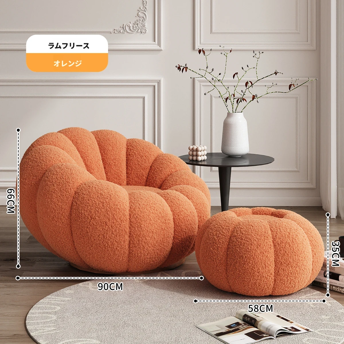 360°回転 【肌触りの良いラムフリース】オレンジソファ+オットマン