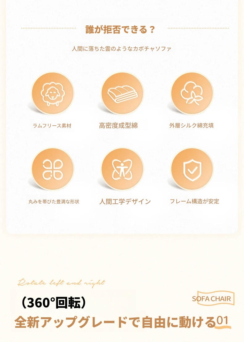 360°回転 【肌触りの良いラムフリース】アイボリーソファ