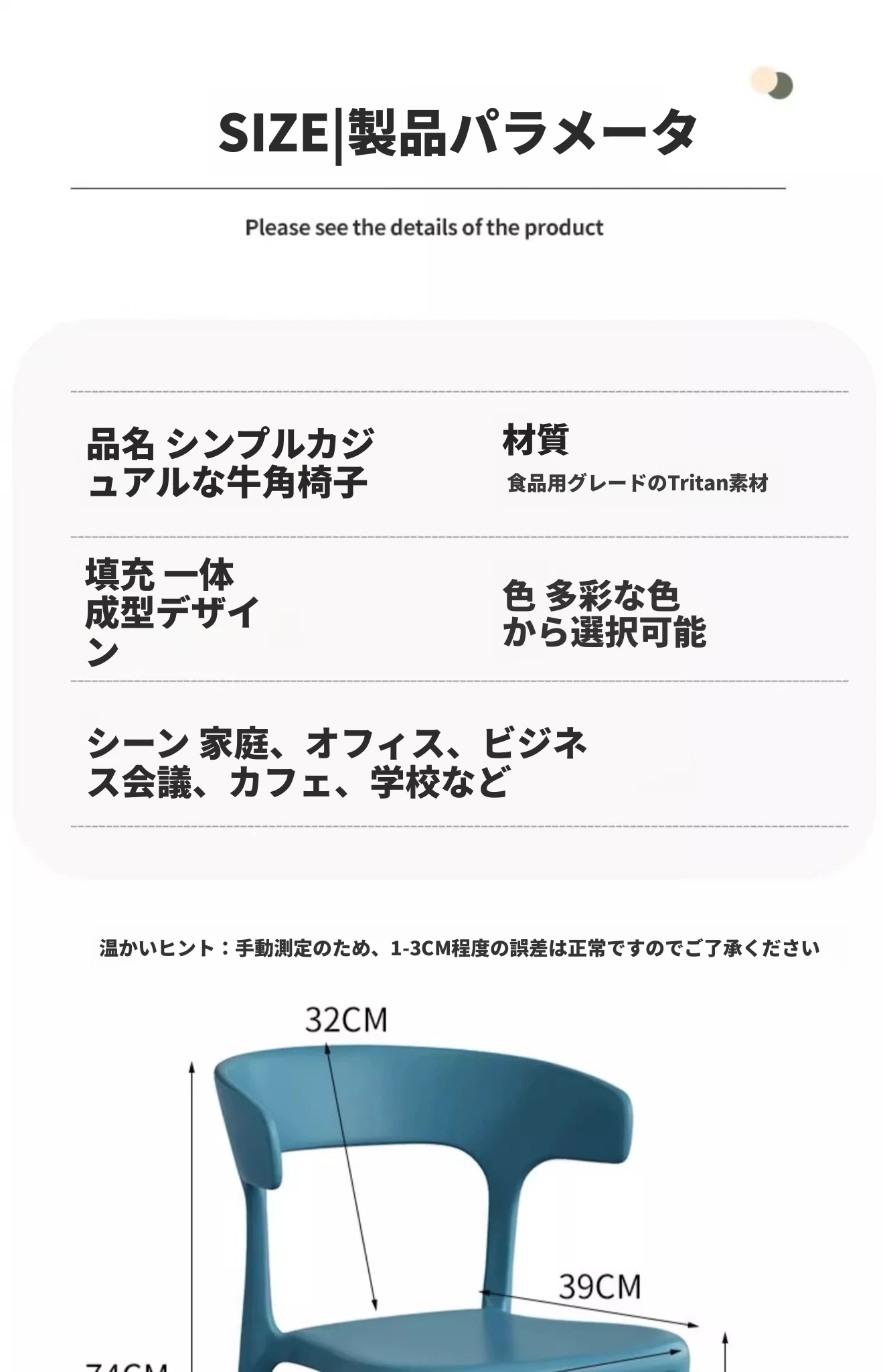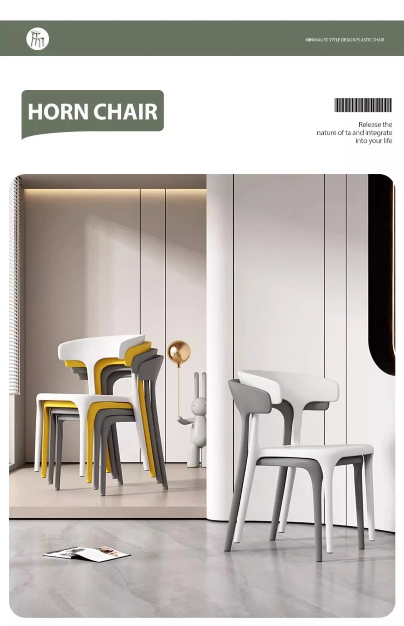 三夢プラスチック製牛角椅子|家庭用リビング・ダイニングに最適!快適な座り心地の背もたれ付き、書斎やカフェでも大活躍のリラックスチェア!