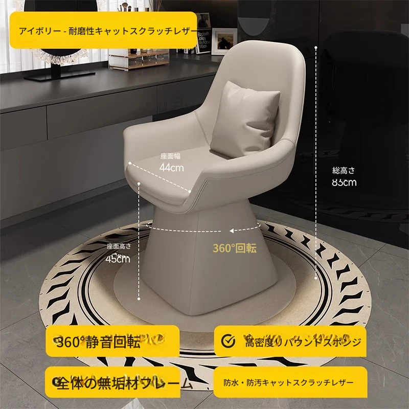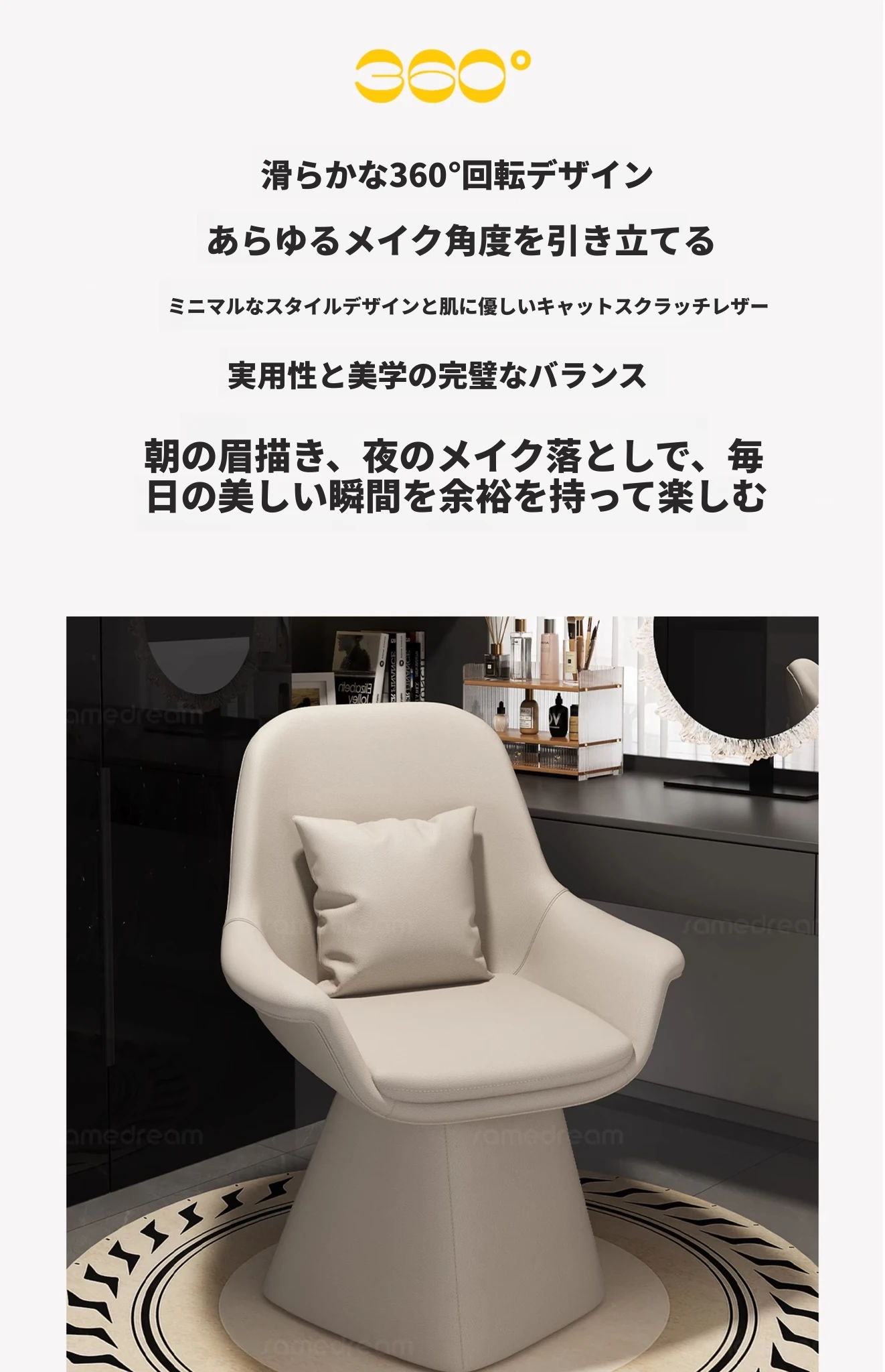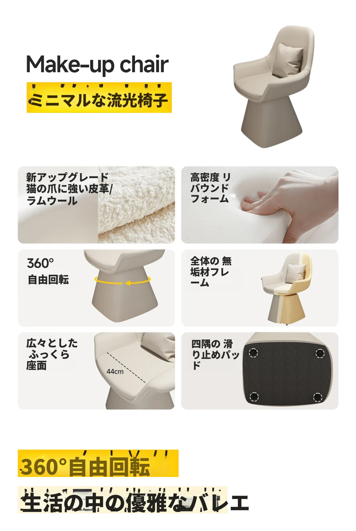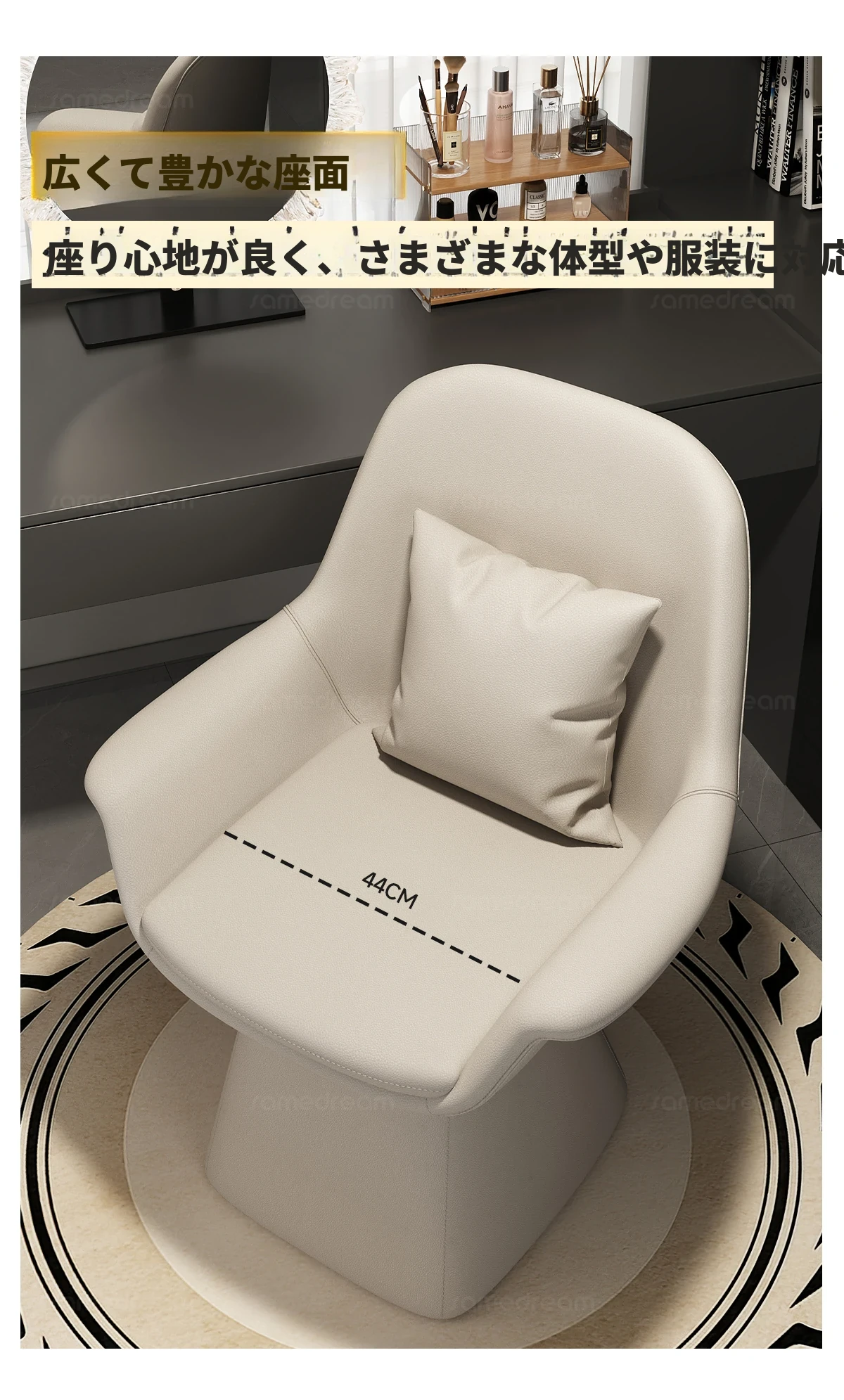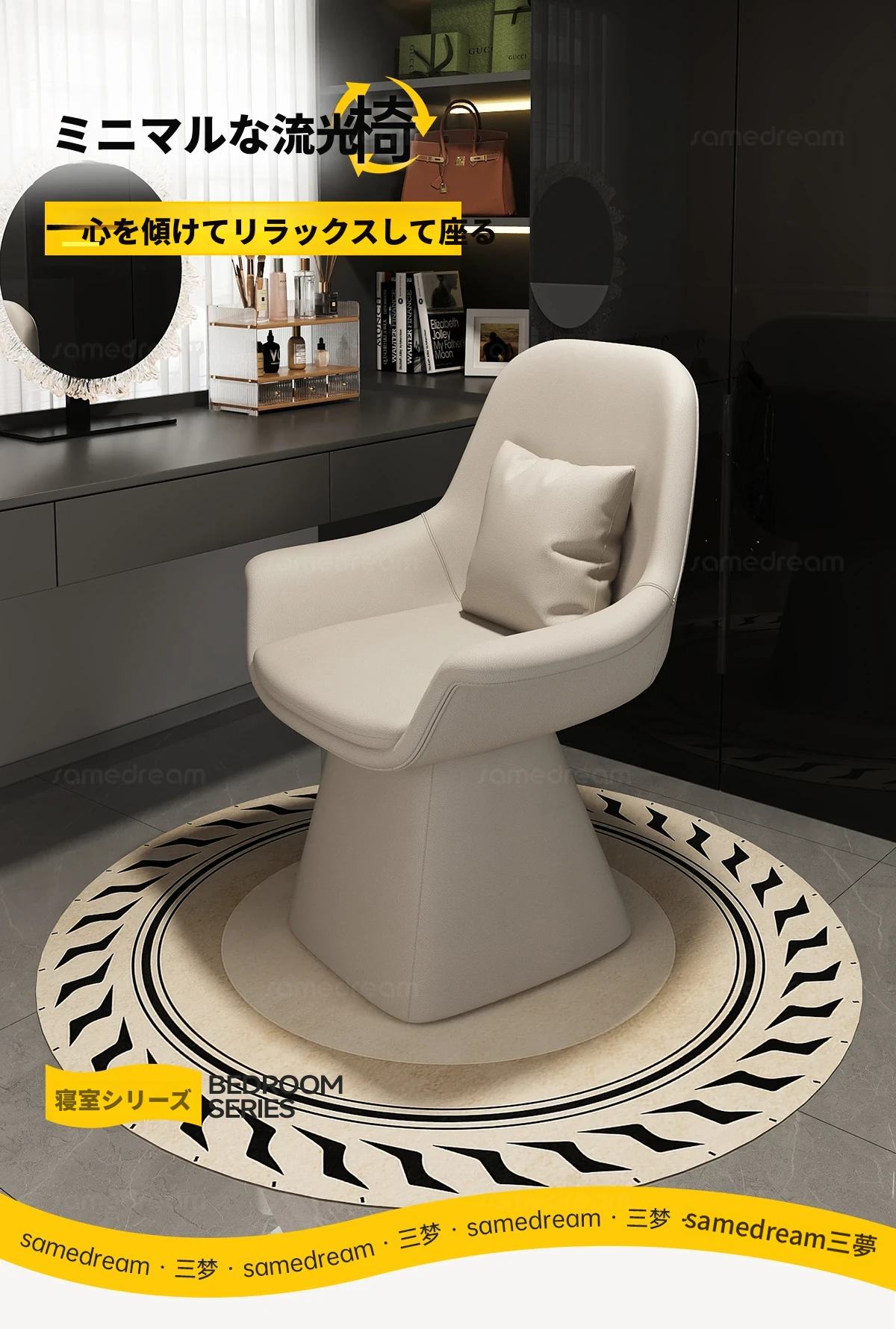 夢のような回転化粧椅子!高級感あふれるデザインで、あなたの寝室やドレッサーを引き立てます。2025年新作のこの軽やかなコーディネートで、毎日のメイクアップタイムを特別なものに。衣帽間にもぴったり!