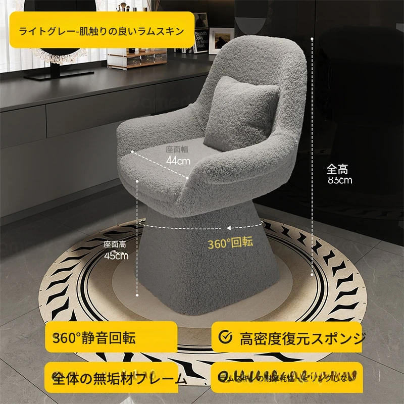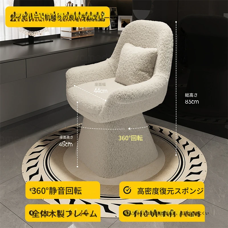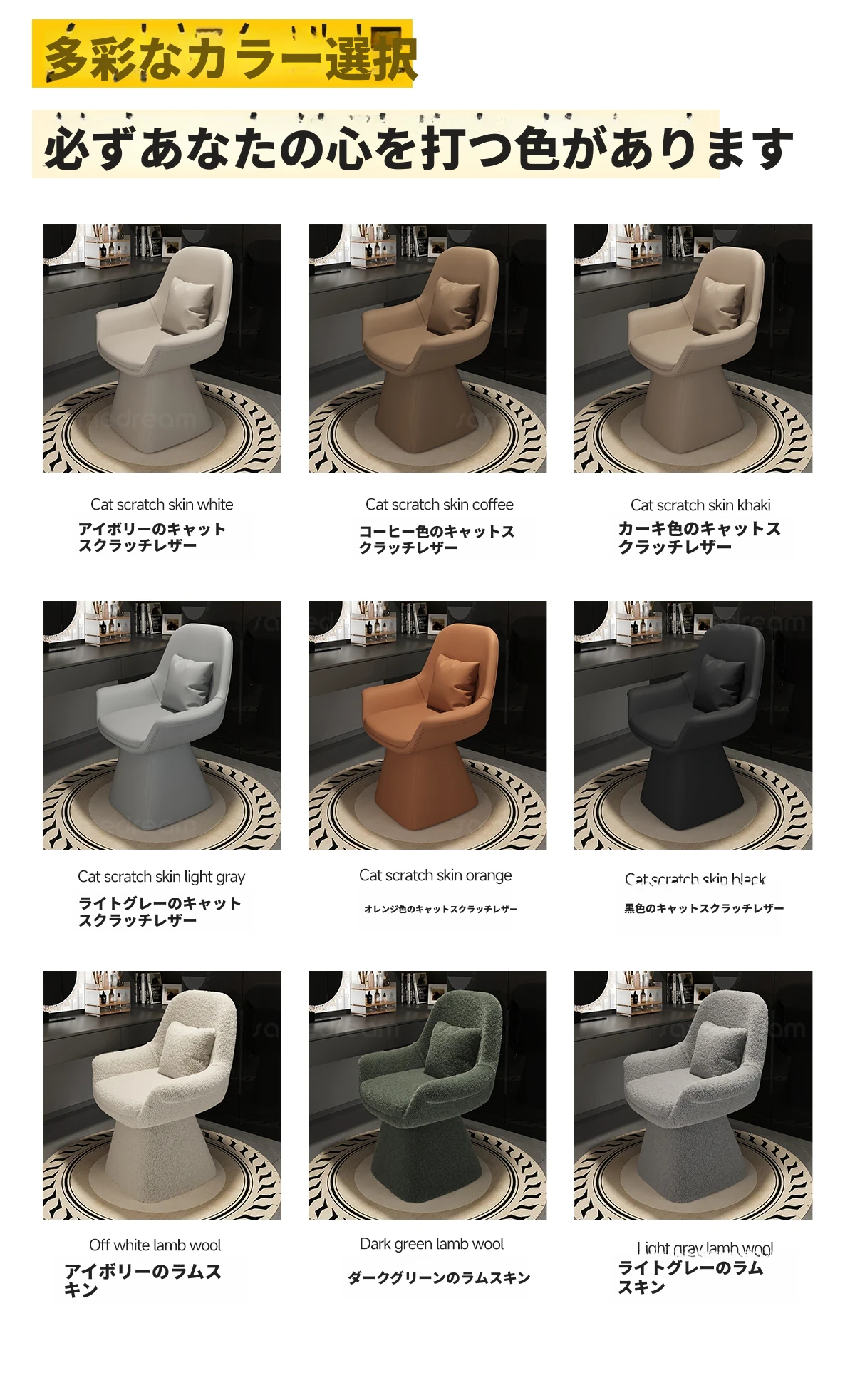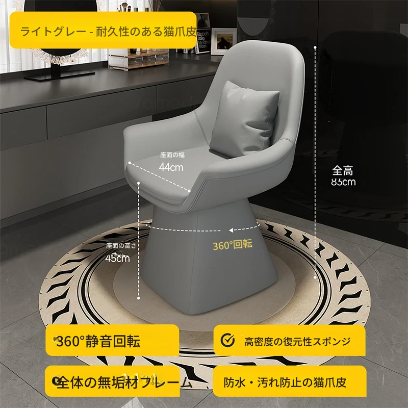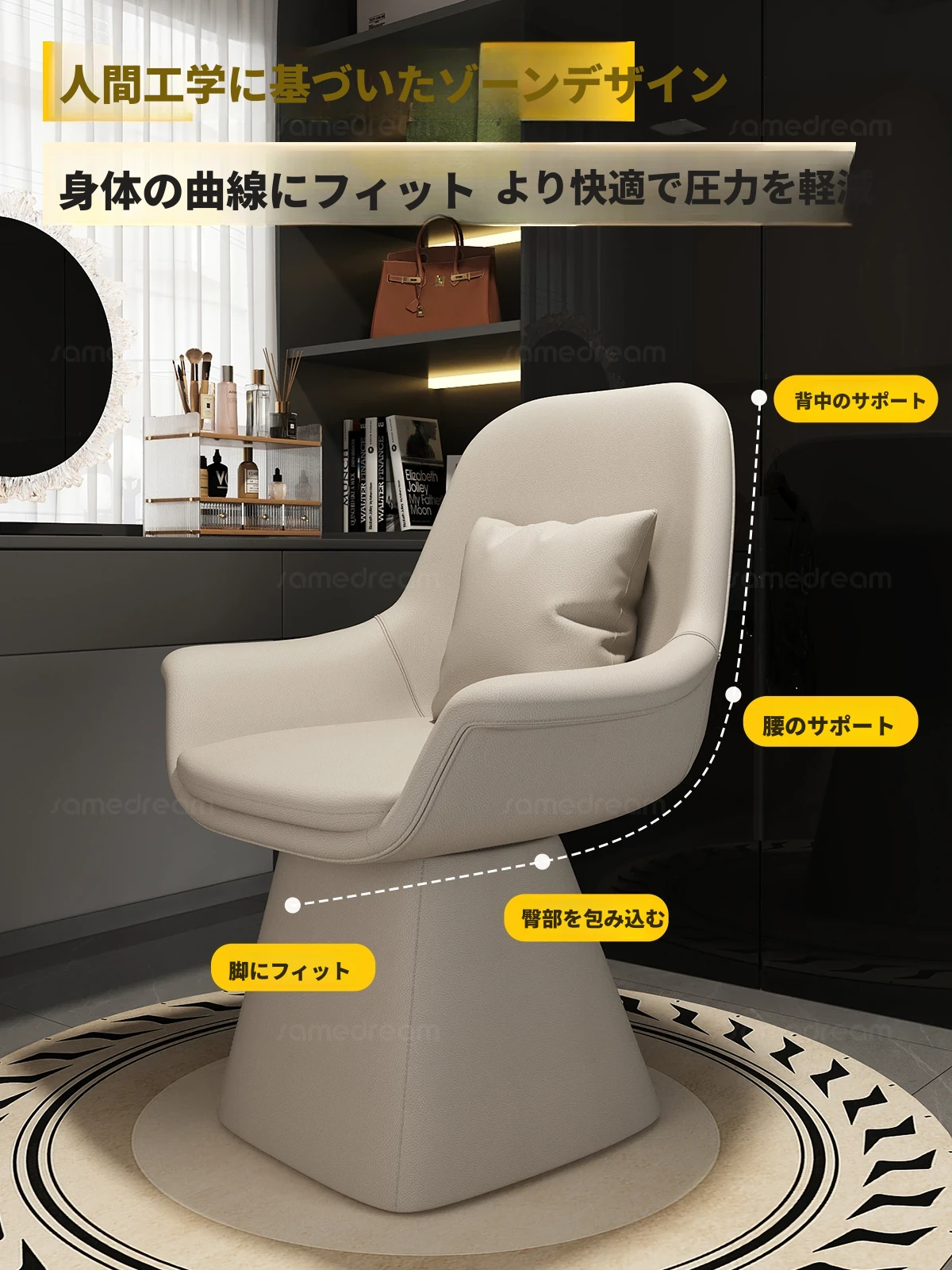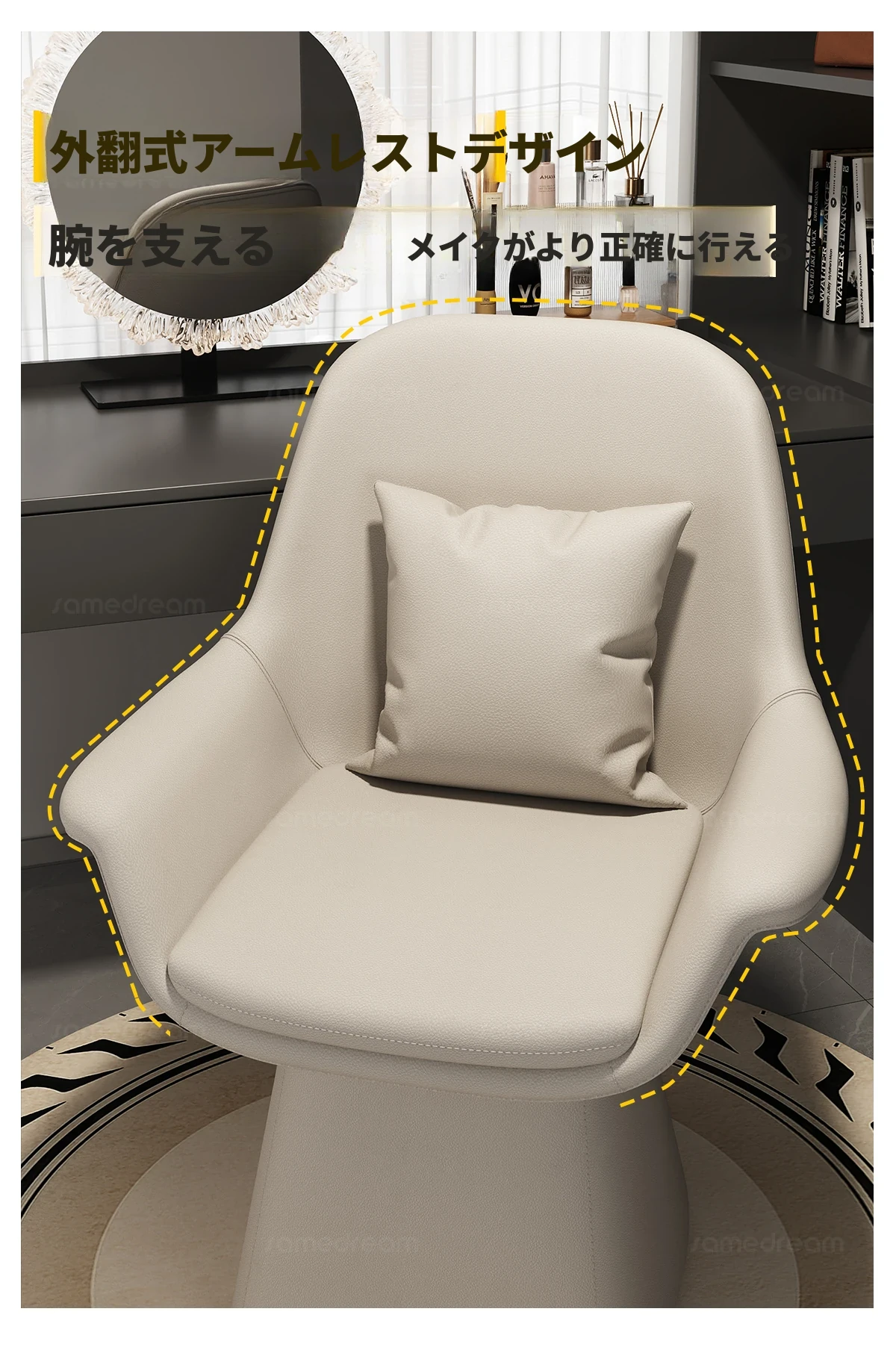夢のような回転化粧椅子!高級感あふれるデザインで、あなたの寝室やドレッサーを引き立てます。2025年新作のこの軽やかなコーディネートで、毎日のメイクアップタイムを特別なものに。衣帽間にもぴったり!