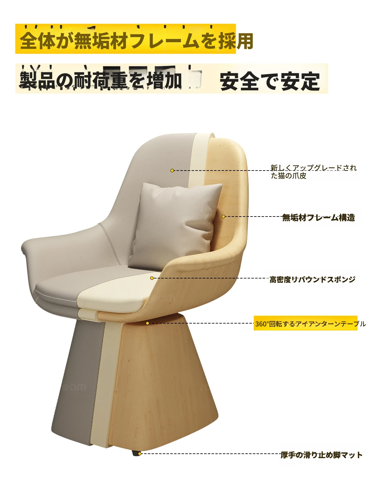 アイボリーのキャットスクラッチャー - 360°静音回転(同色のクッション付き)