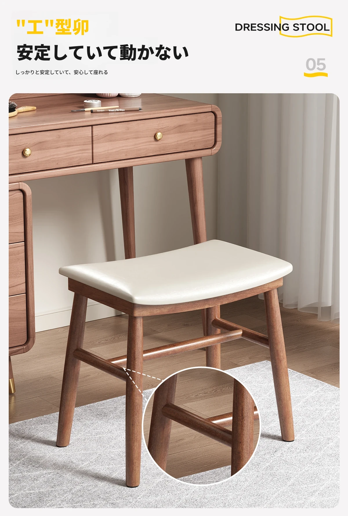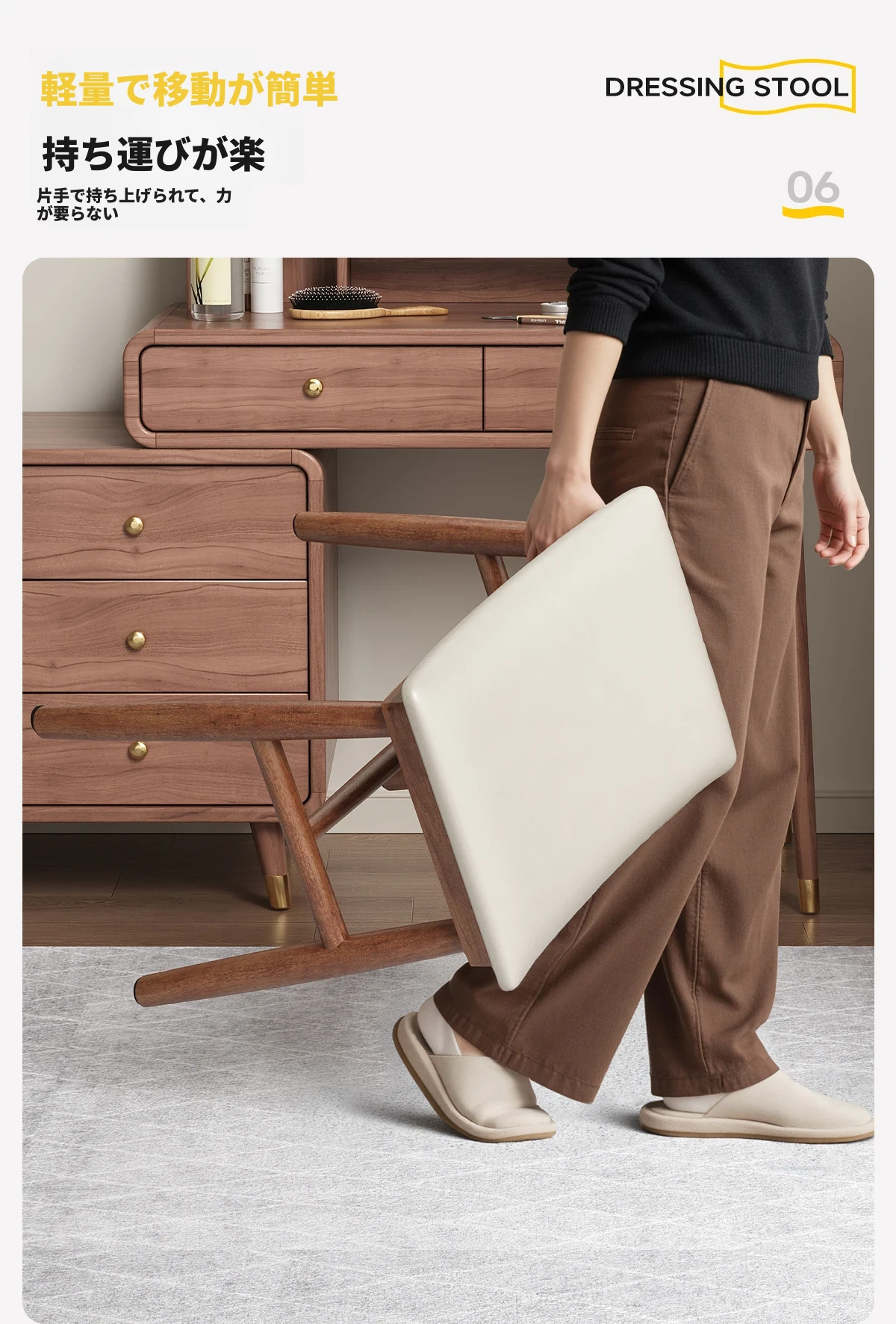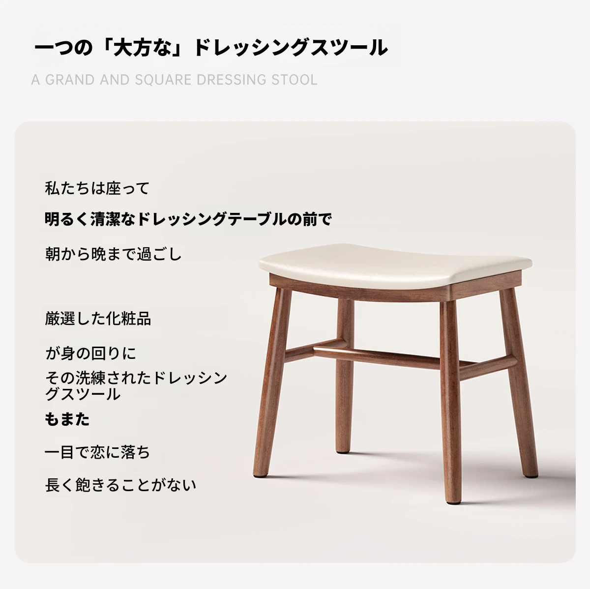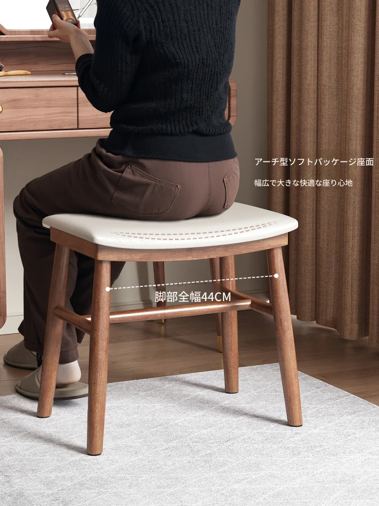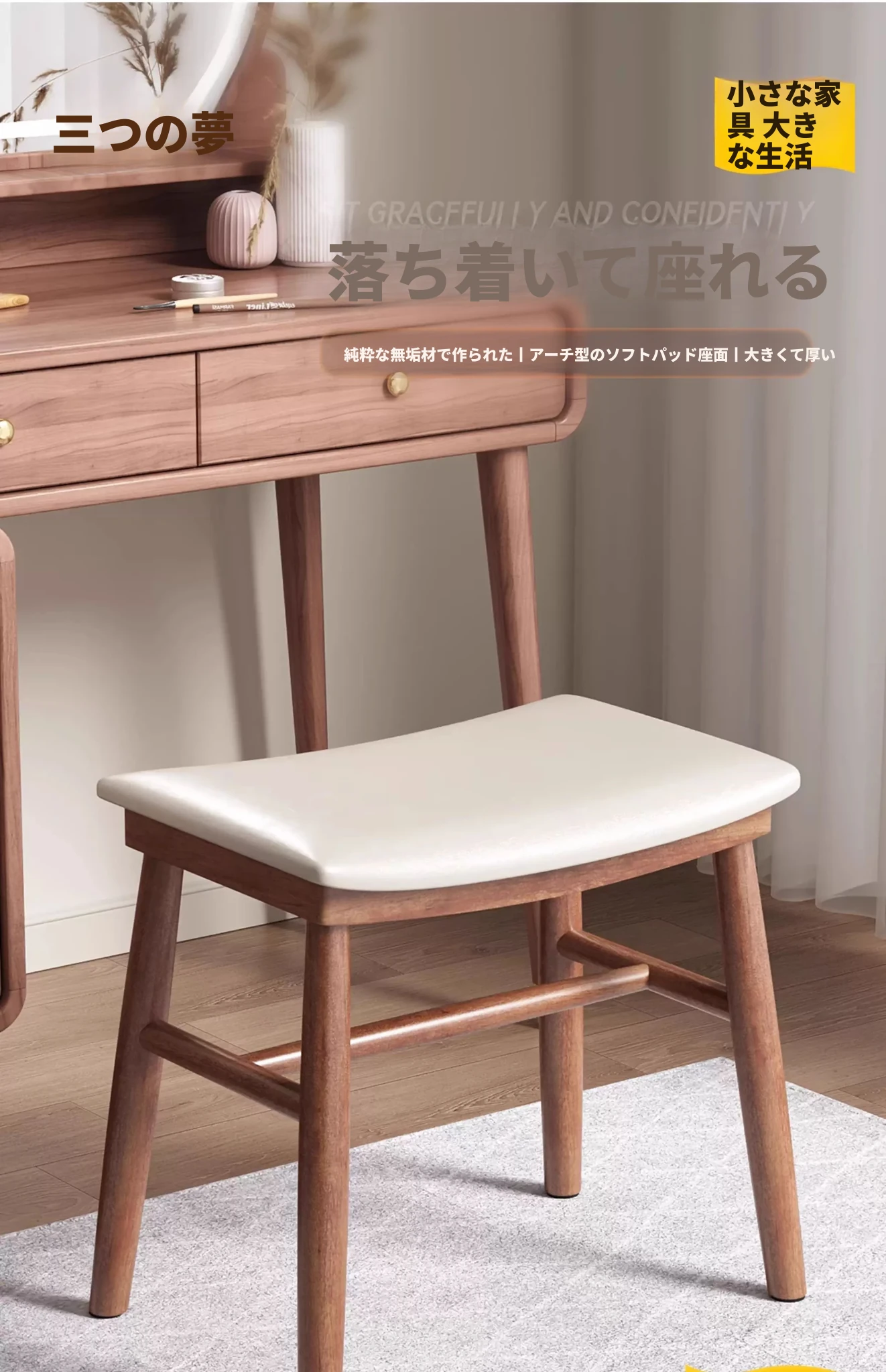 三夢の無垢材化粧スツール - 女子の寝室にぴったり!省スペース設計で、ドレッサー専用の柔らかいクッション付き化粧椅子です。おしゃれで快適なメイクタイムをお楽しみください!
