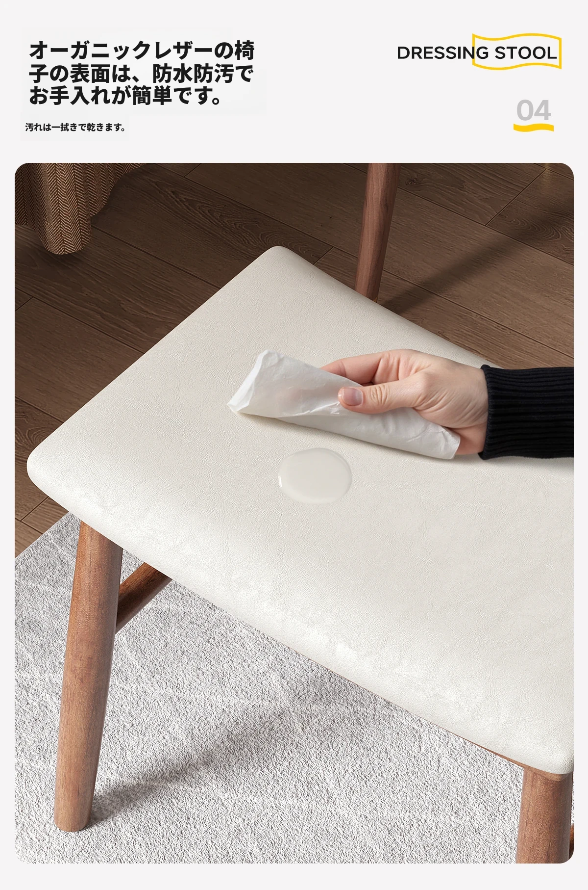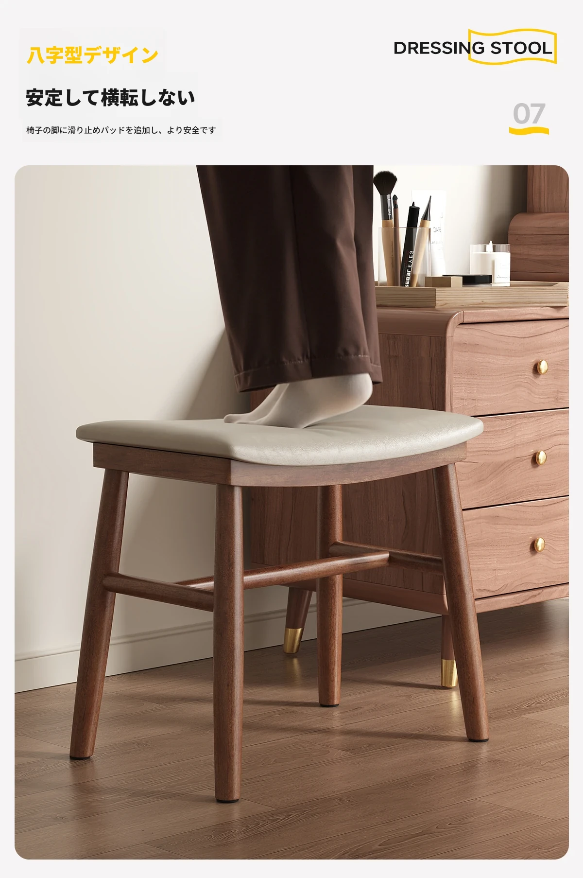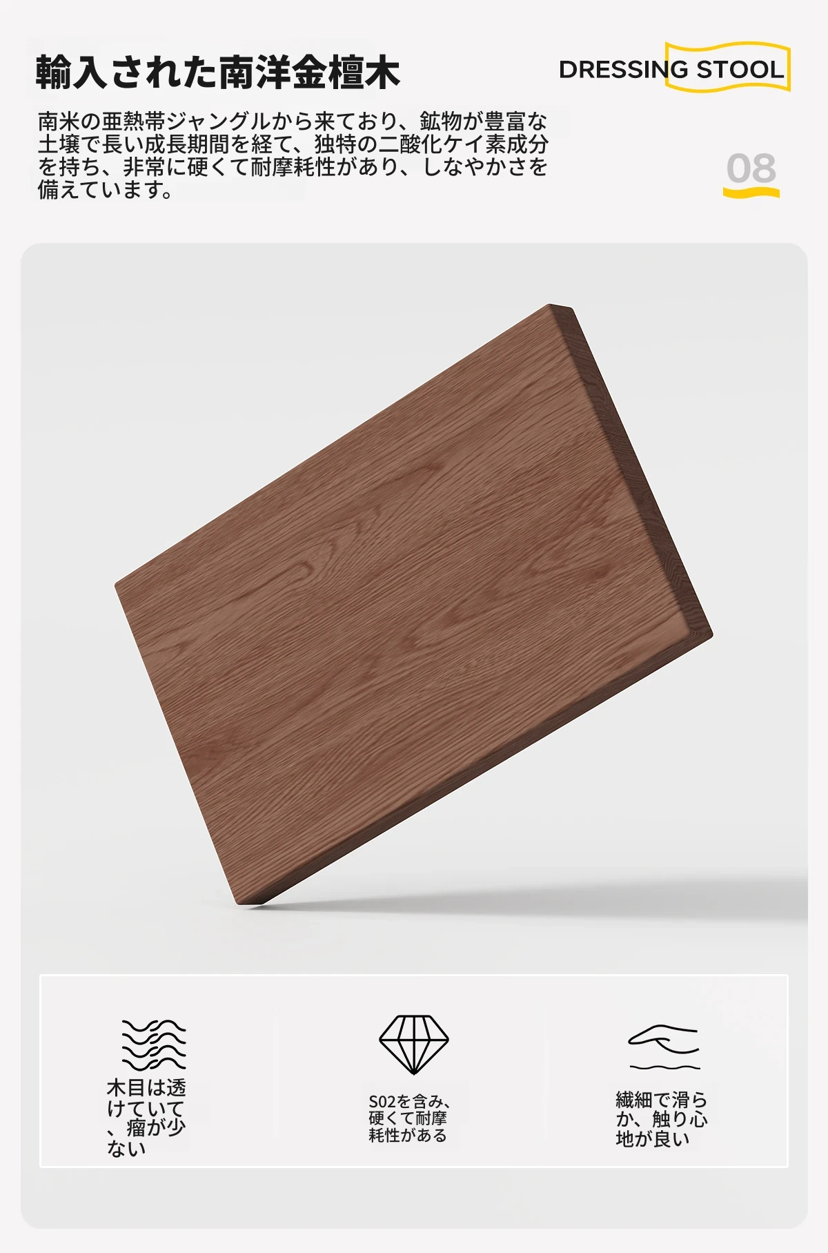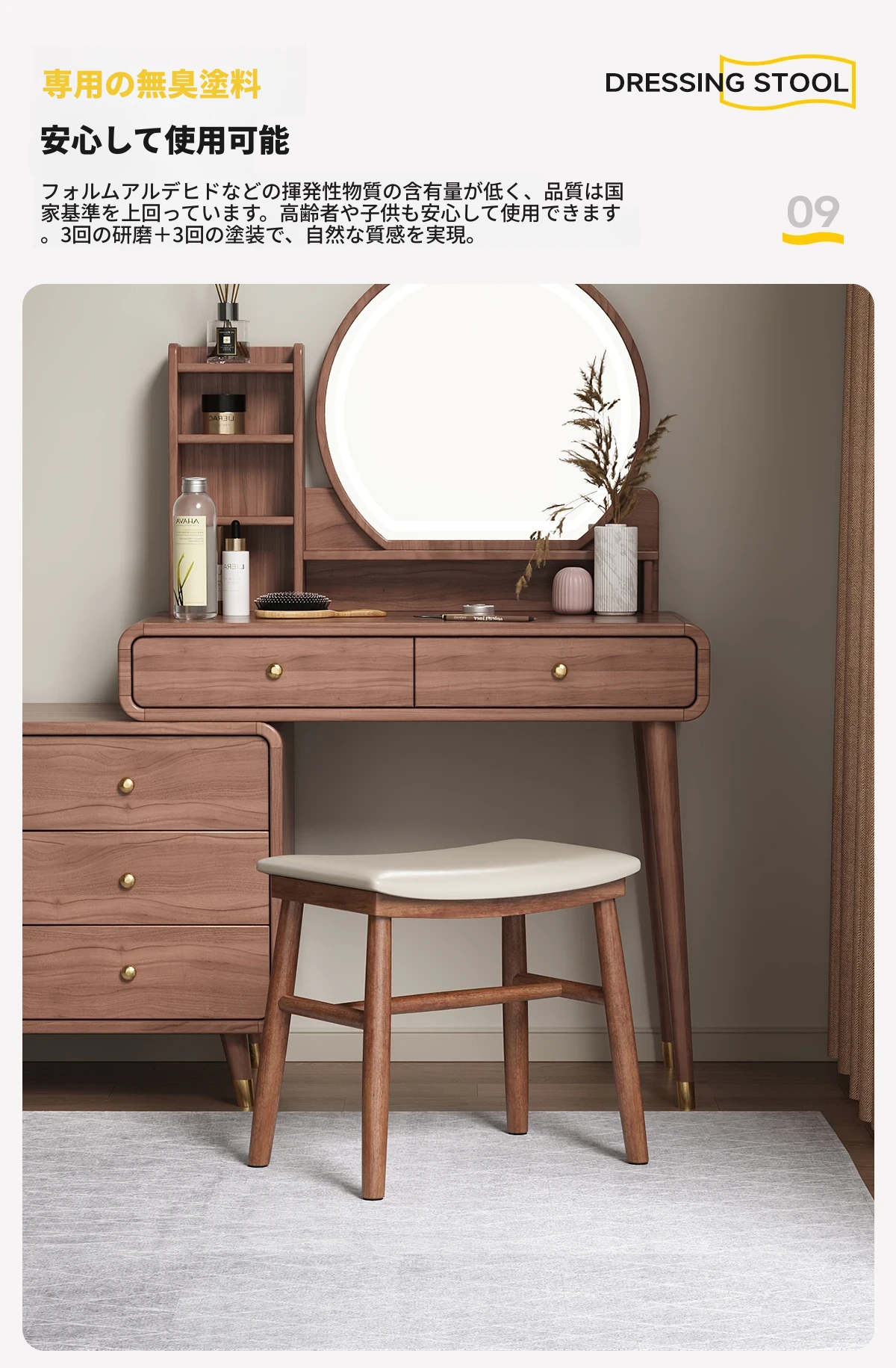 三夢の無垢材化粧スツール - 女子の寝室にぴったり!省スペース設計で、ドレッサー専用の柔らかいクッション付き化粧椅子です。おしゃれで快適なメイクタイムをお楽しみください!