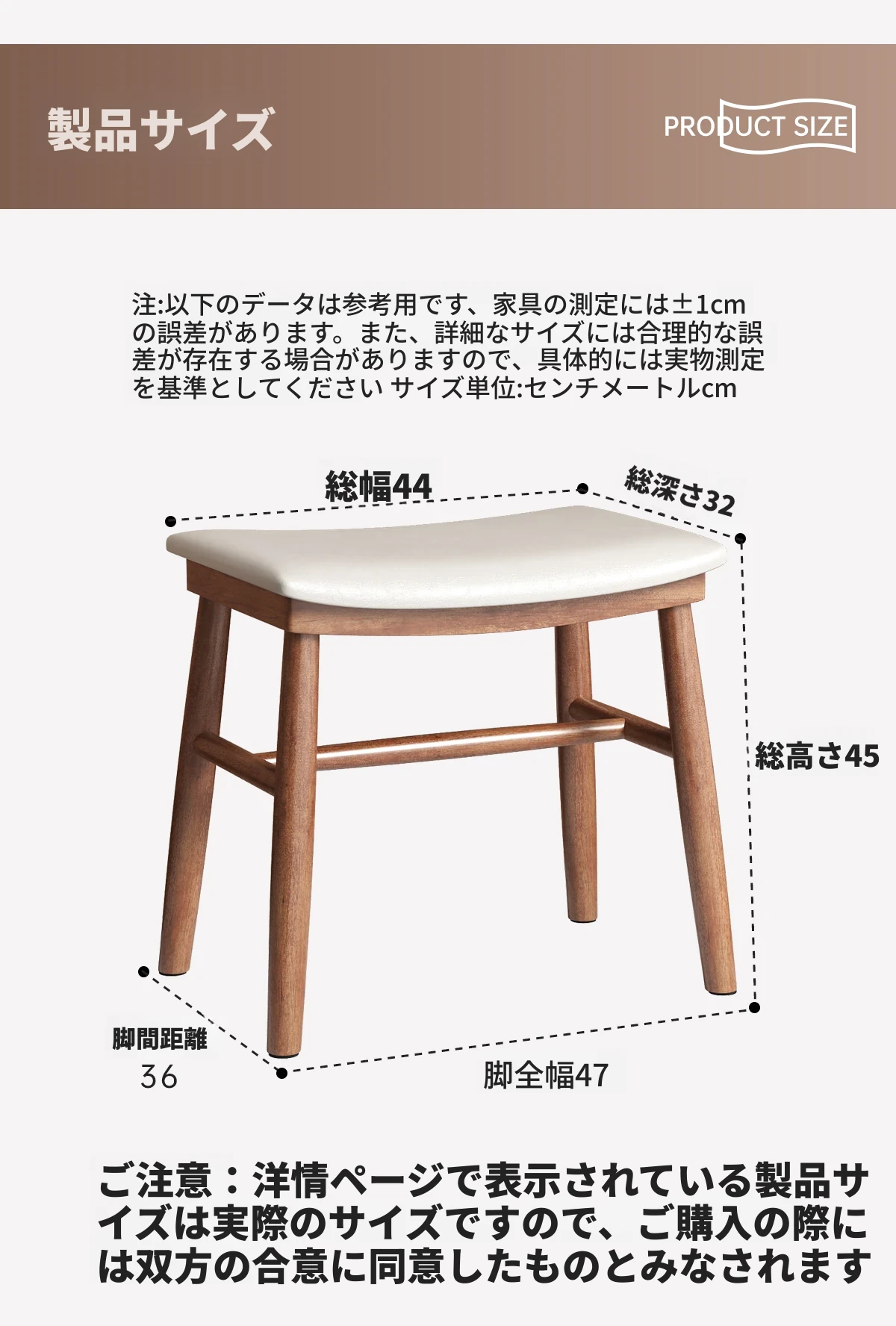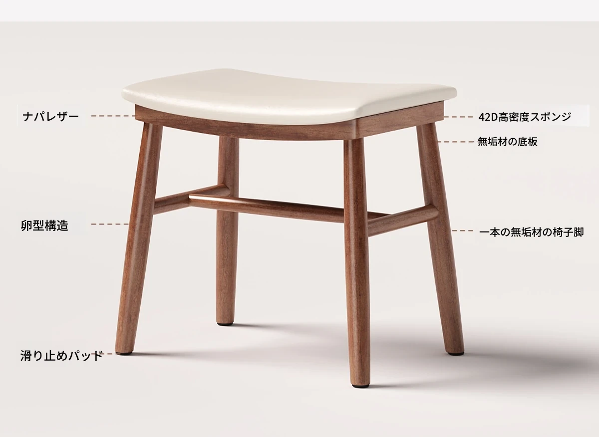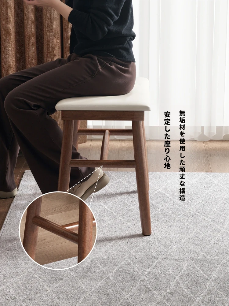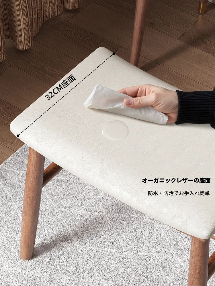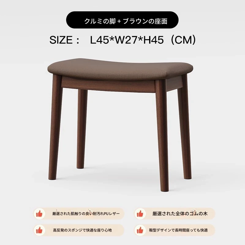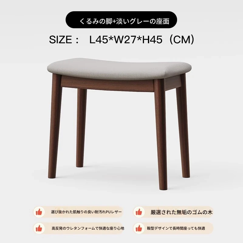 三夢の無垢材化粧スツール - 女子の寝室にぴったり!省スペース設計で、ドレッサー専用の柔らかいクッション付き化粧椅子です。おしゃれで快適なメイクタイムをお楽しみください!