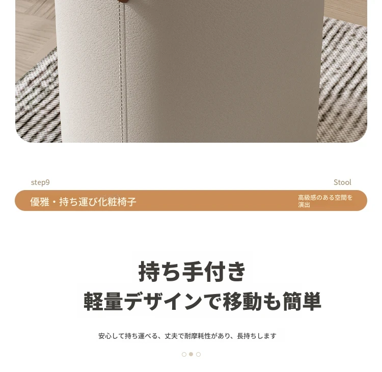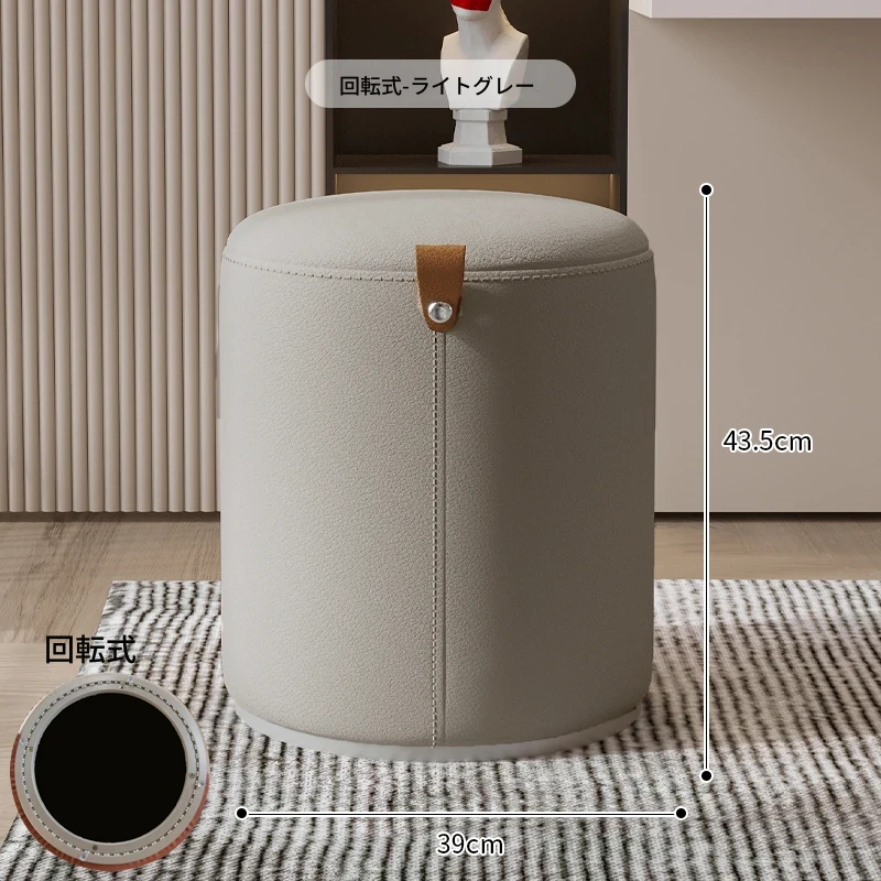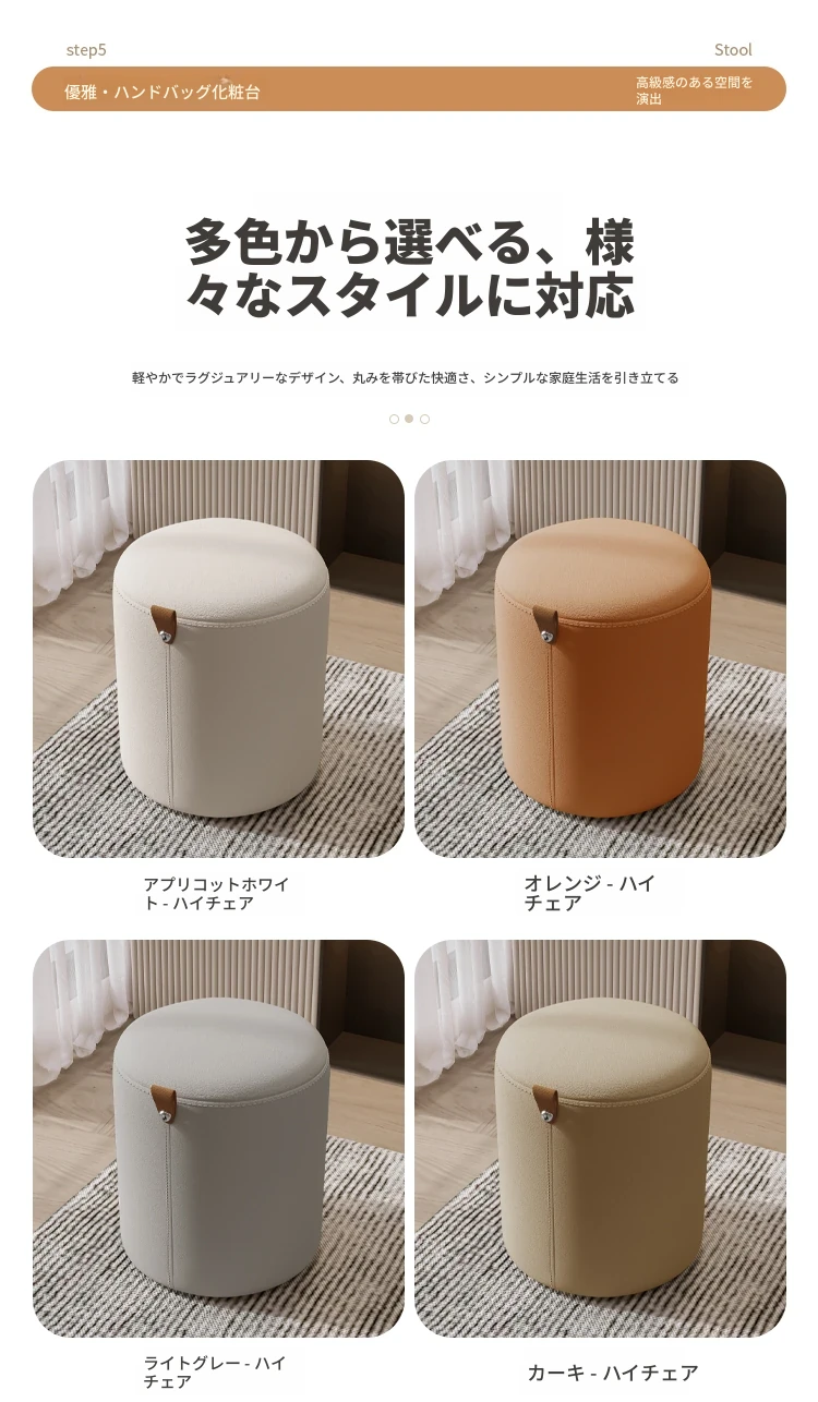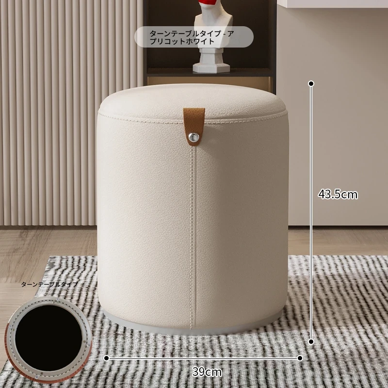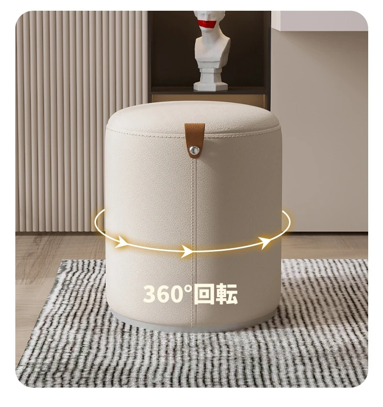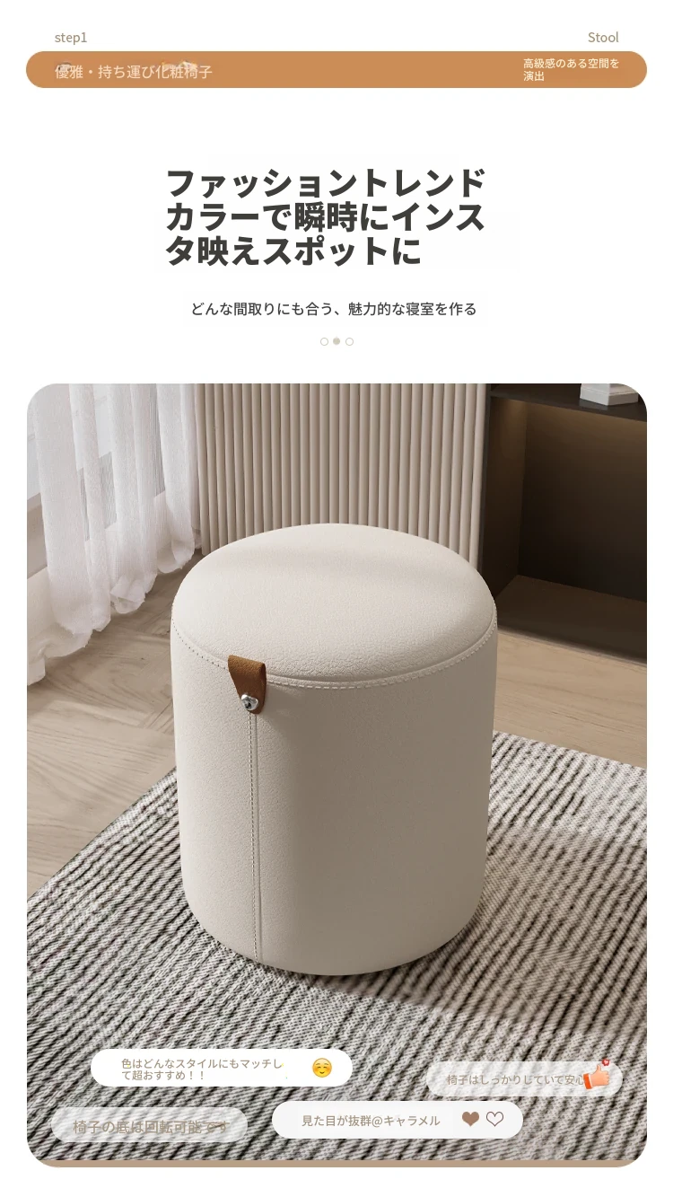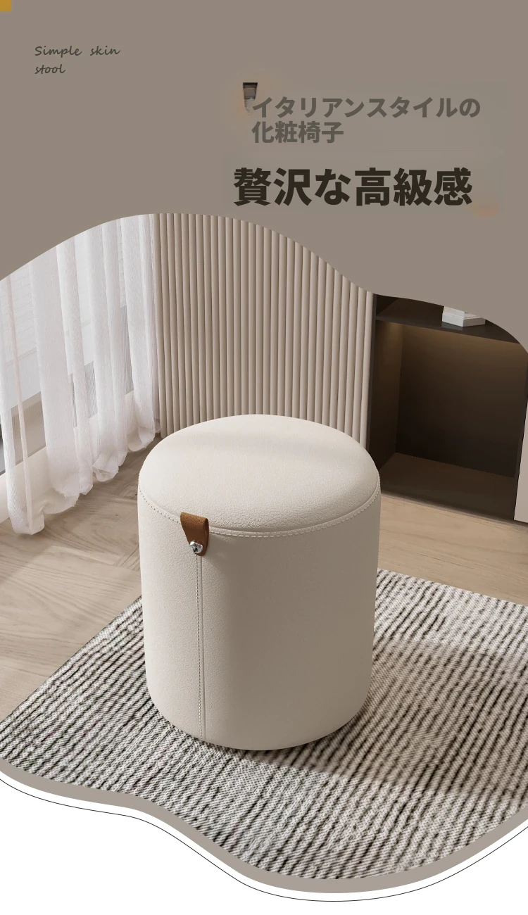 三夢クリーム風化粧台椅子|高級感溢れる2025年新作|女性の寝室にぴったり!|天然木製の丸型デザイン|靴を履く時にも最適な化粧椅子!